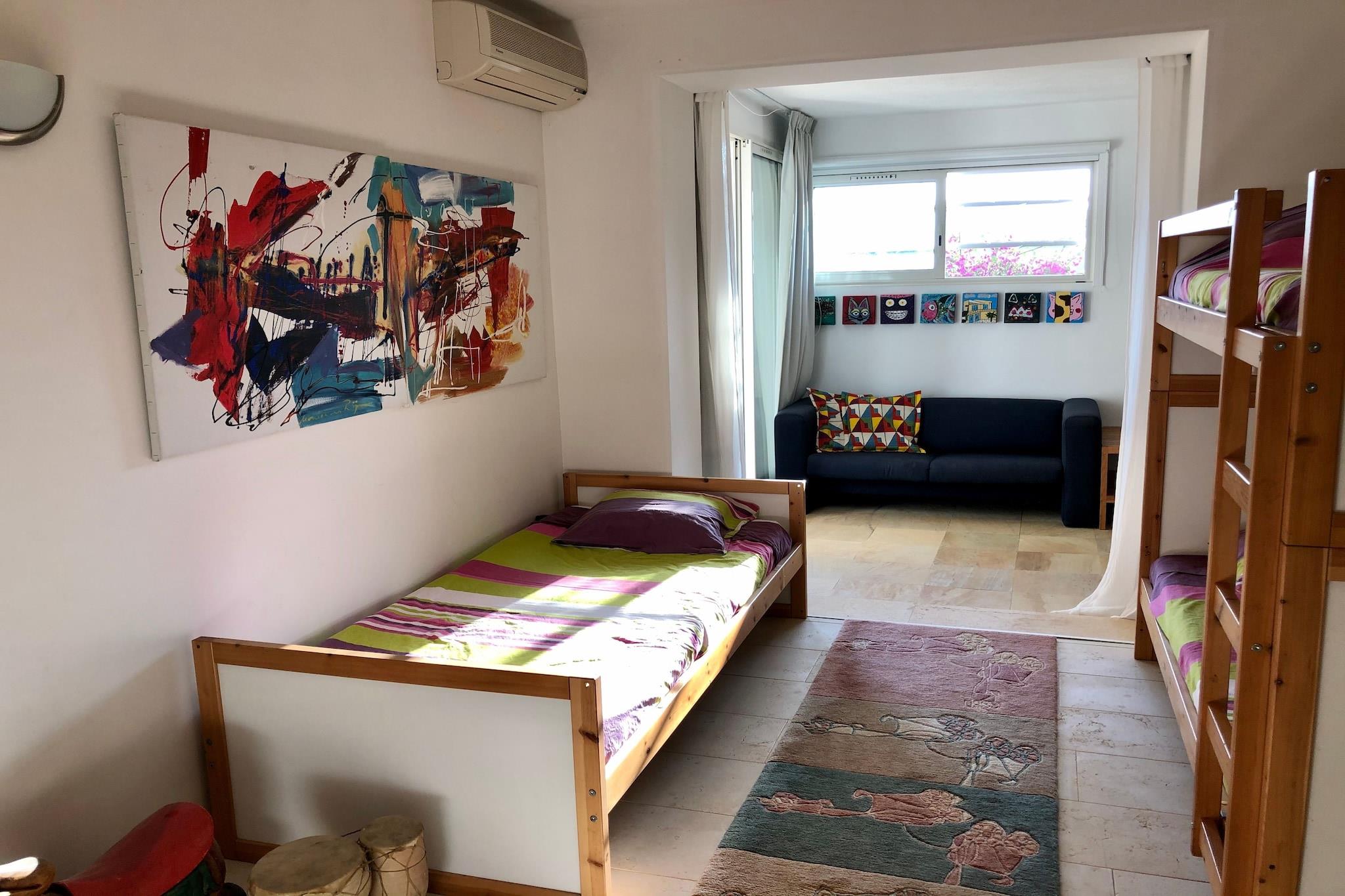 Denna lyxiga villa med 4 sovrum i La Croix-Valmer ligger i hjärtat av den franska rivieran och är perfekt för familjer eller grupper på upp till 10 gäster. Villan är omgiven av havsutsikt och pinjeskogar och har en privat pool, en inhägnad trädgård och flera terrasser på olika nivåer, som erbjuder avskildhet och fantastisk panoramautsikt över Medelhavet. Bara 5 km bort hittar du sandstränderna i Gigaro och Pampelonne, perfekta för att sola eller bada. För en smak av det lokala livet, besök den berömda söndagsmarknaden i La Croix-Valmer eller ta färska bakverk på det närliggande bageriet. Letar du efter lite glamour? En kort bilresa tar dig till ikoniska Saint-Tropez, där jetset-livsstilen väntar. Invändigt är villan snygg och modern med glas från golv till tak som fyller hemmet med naturligt ljus. Konstverk i hela huset – inomhus och utomhus – lägger till elegans och karaktär. Oavsett om du slappar i en hängmatta på takterrassen, njuter av en måltid utomhus eller ser barnen plaska i poolen, erbjuder detta hem den perfekta blandningen av stil, komfort och avkoppling för din resa till Côte d'Azur.