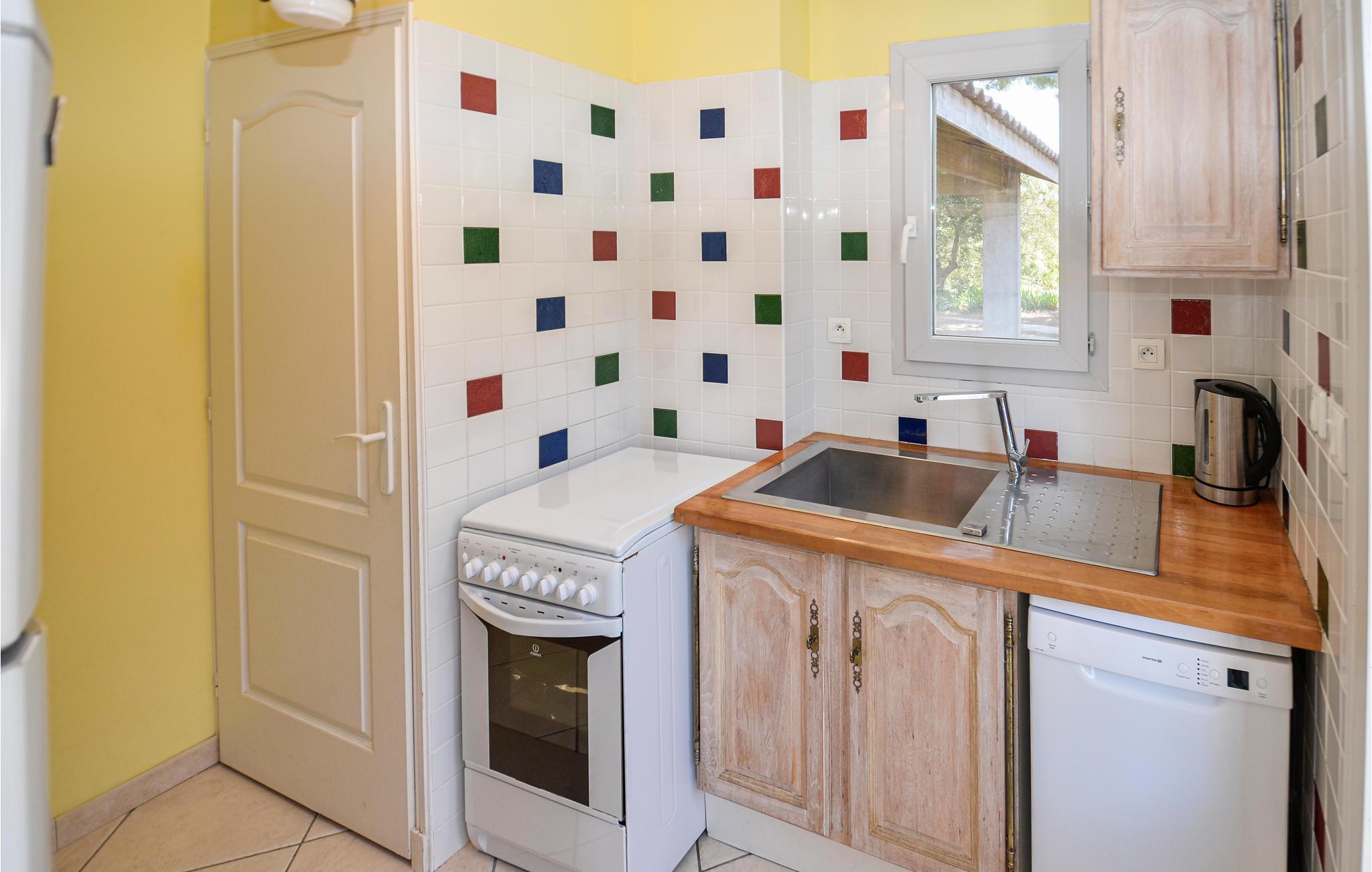 Ditt lugnt belägna semesterhus på en rymlig tomt erbjuder dig en trevlig tillflyktsort i inlandet av Côte d'Azur. Bara några kilometer från Medelhavets stränder, är huset särskilt lämpligt för familjer eller små grupper som föredrar enkelt boende med gott om utomhusutrymme. Interiören är funktionellt möblerad och har en traditionell känsla. Använd det stora vardagsrummet med flera sittplatser och en TV för att tillbringa tid tillsammans. Matbordet har plats för alla bekvämt.