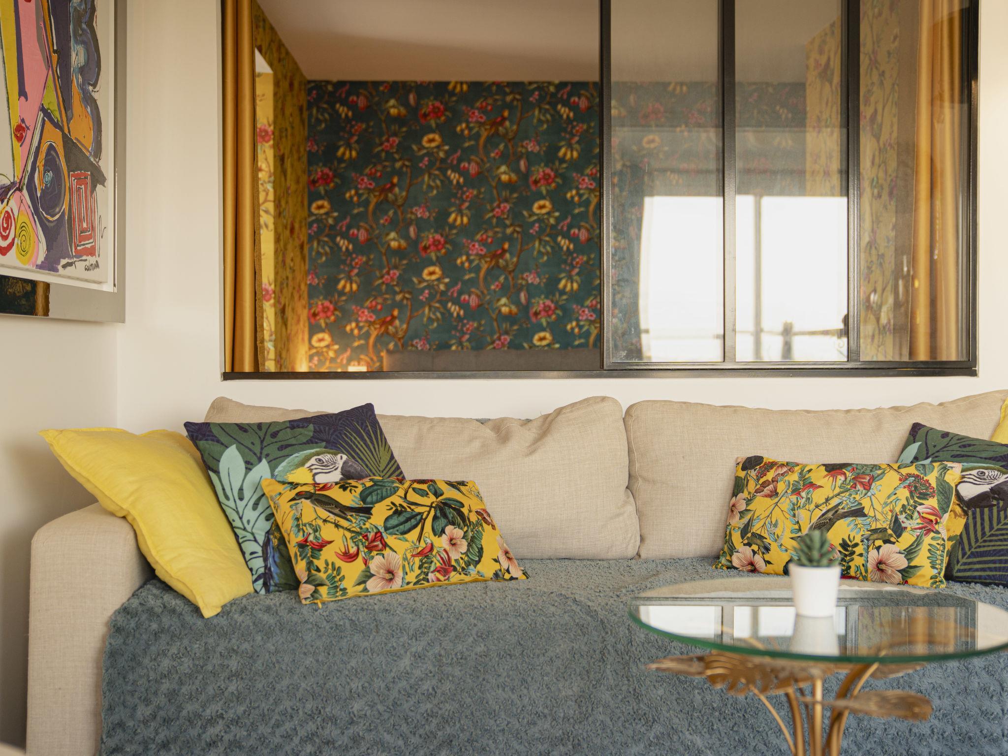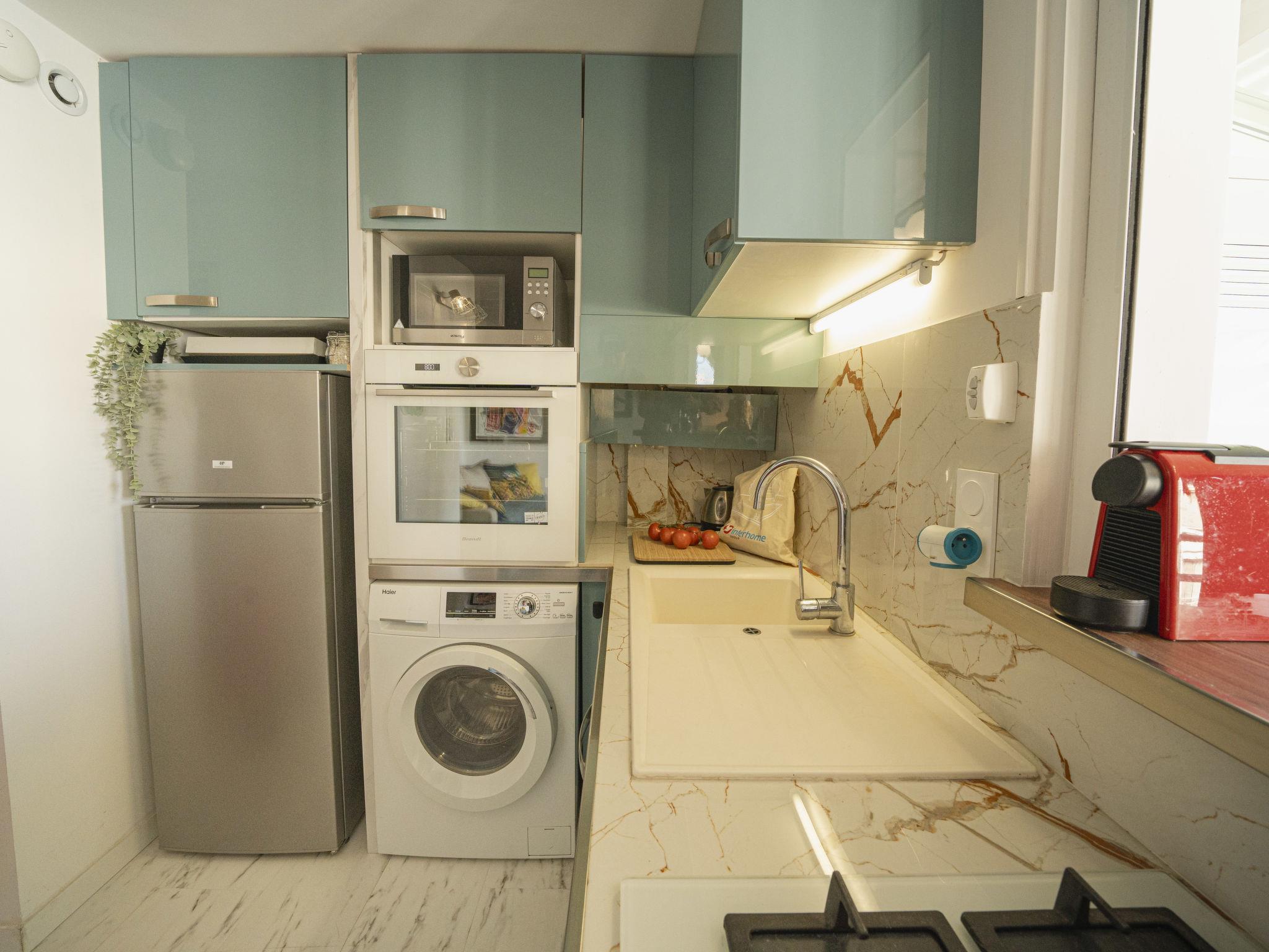 2-room apartment 45 m2 on 7th floor. Beautiful furnishings: living/dining room with TV (flat screen). 1 room, south facing position, window onto the living room with 1 french bed (1 x 140 cm, length 190 cm). Interconnecting room with 1 double sofabed (120 cm, length 190 cm). Kitchenette (oven, dishwasher, 4 gas rings, toaster, kettle, microwave, freezer, electric coffee machine, Capsules for coffee machine (NESPRESSO) extra). Shower, sep. WC. Air-conditioning, forced-air heating. Panoramic view of the sea. Facilities: washing machine. Internet (WiFi, free). Parking. Please note: smoke alarm. Offer by a private individual according to Art. 155, IV of CGI. 1630810061062