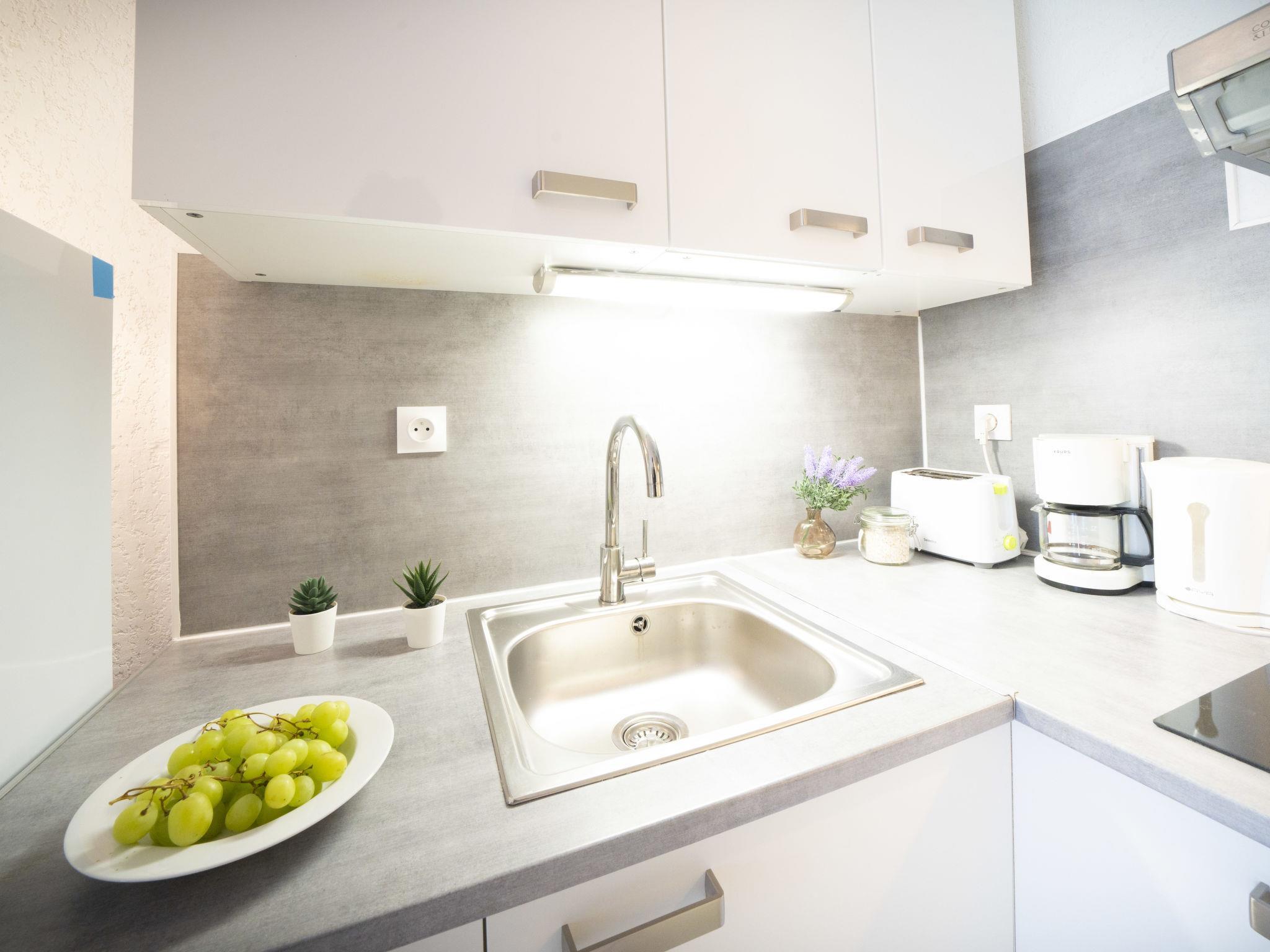 1-room studio 25 m2. Living/dining room with 1 double sofabed (140 cm, length 190 cm), TV (flat screen). Exit to the garden. Sleeping alcove with 1 x 2 bunk beds (80 cm, length 190 cm). Kitchenette (3 hot plates, oven, toaster, kettle, microwave, freezer, electric coffee machine). Shower, sep. WC. Electric heating. Patio 15 m2, south facing position. Facilities: washing machine. Internet (WiFi, extra). Parking. Please note: maximum 1 small pet/ dog allowed. Smoke alarm. Instead of an enclosed bedroom, some sleeping areas are located in an open-plan area (gallery, alcove, etc.). 04 11 659 500 455