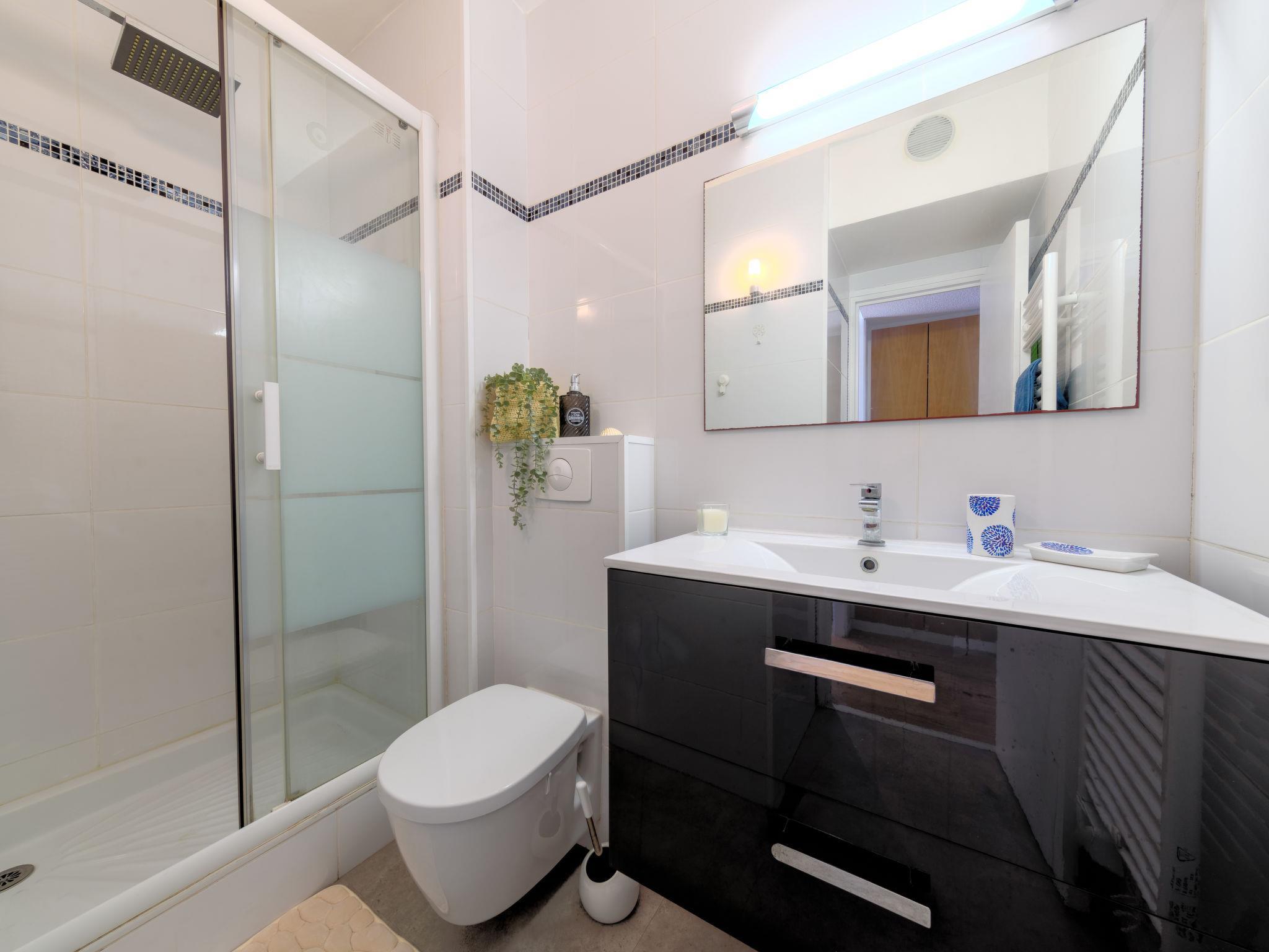 1-room studio 26 m2 on 4th floor, south facing position. Object suitable for 2 adults + 2 children. Living/dining room with 1 double sofabed (140 cm, length 190 cm), TV (flat screen), electric heater, air conditioning and electric shutters. Sleeping alcove with 1 x 2 bunk beds (80 cm, length 190 cm). Kitchenette (2 induction hot plates, toaster, kettle, microwave, freezer, electric coffee machine, Capsules for coffee machine (TASSIMO) extra). Shower/WC. Heating. Terrace 6 m2, south facing position. Terrace furniture. Beautiful view of the sea and the garden. Parking space n 48. Please note: non-smokers only. Smoke alarm. Offer by a private individual according to Art. 155, IV of CGI. 1771935130217