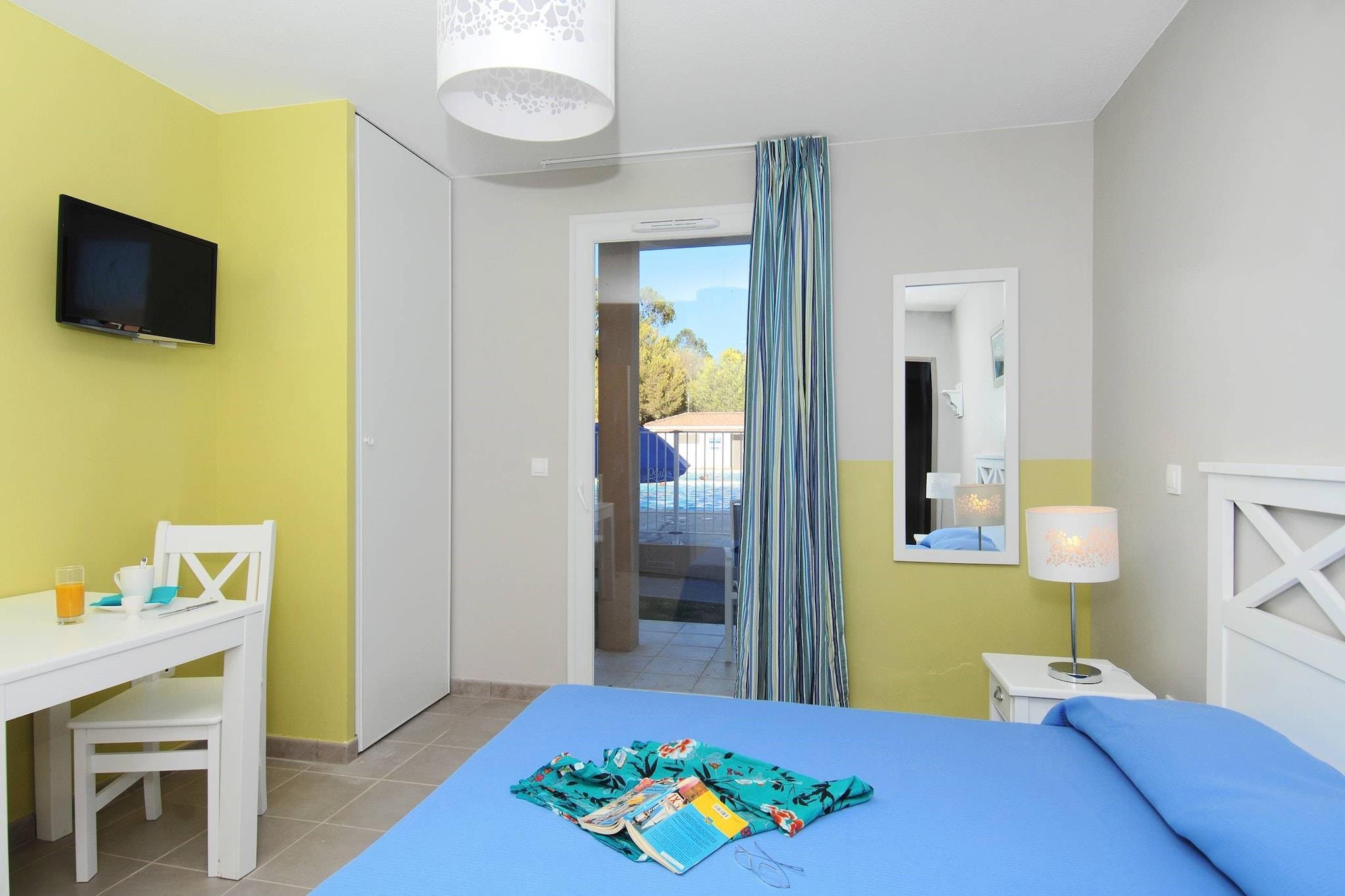 Fredliga Pines & Coastal Comfort Välkommen till Résidence Les Océanides, ett charmigt gömställe inbäddat i skuggan av pinjeträd och bara en kort promenad från det glittrande Medelhavet. Detta fridfulla komplex ligger i en mjukt kuperad terräng och har vackert inredda studiolägenheter, ett- och tvårumslägenheter designade för komfort. Njut av en privat terrass eller balkong med trädgårdsmöbler, ett fullt utrustat pentry och uppfriskande luftkonditionering i sovrummet. Den inbjudande utomhuspoolen i hjärtat av fastigheten är den perfekta platsen att varva ner efter en stranddag. Djurvänligt paradis vid havet Ta med din fyrbenta kamrat – husdjur är mer än välkomna här! Du är bara några ögonblick från husdjursvänliga Plage de l'Argentière, där hundar är tillåtna i koppel under vissa tider. Ta natursköna promenader genom de närliggande tallskogarna eller njut av lugna promenader längs Promenade de la Mer. Det omgivande området är perfekt för fridfulla picknickar, morgonjoggar och lekfulla apporter - det finns ingen brist på frisk luft och äventyr för både dig och din lurviga vän. Smaker av Provence vid din dörr La Londe-les-Maures är en pärla på Côte d'Azur, som erbjuder pittoreska restauranger och livliga kustkaféer. Ät middag med tårna i sanden på L'Hemingway eller njut av färsk fisk och skaldjur på Les Saveurs d'Ange. De lokala marknaderna är fulla av provensalska läckerheter – från lavendelhonung till rosévin.