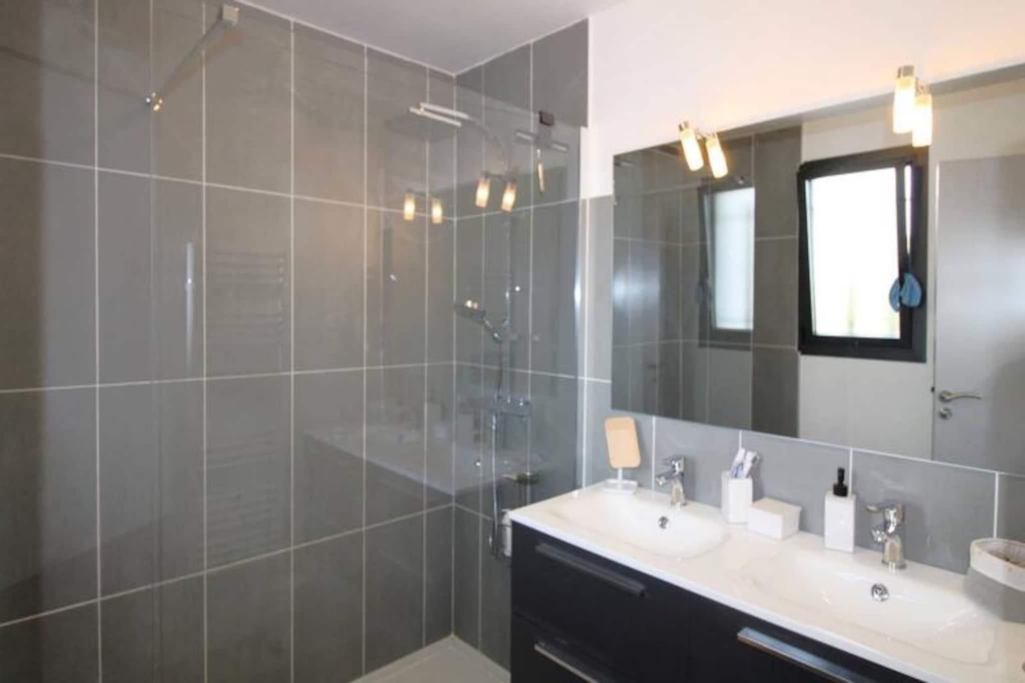 This beautifully renovated 5-room villa offers a peaceful retreat with stunning views of the hills, lake, and Valcros golf course. Accommodating up to 8 guests, it features 4 air-conditioned double bedrooms with Queensize beds and plenty of storage. The villa is not pet-friendly, and smoking is prohibited. Enjoy modern amenities including Wi-Fi, television, and air conditioning in all rooms. There is also a private parking space for up to 3 cars, secured by an electric gate with remote control, ensuring privacy and safety throughout your stay. The villa’s prime location offers easy access to beautiful beaches, including Argentière, Estagnol, Brégançon, and Pellegrin, all just a few minutes away. Explore the local charm of the area, with quick access to the pier for Porquerolles Island and the Valcros International Golf Club, only 5 minutes away. For those looking to relax or dine out, the area also boasts cafes, restaurants, and vibrant markets where you can sample local produce and delicacies. Inside, the villa features a fully equipped American kitchen, ideal for preparing meals, along with a comfortable living room opening onto a large terrace with garden furniture and a bio-climatic pergola. A private swimming pool (10x5m), secured by an alarm, provides the perfect spot for relaxation, complete with an outdoor shower, parasol, and a BBQ for al fresco dining. The villa also includes a washing machine, dishwasher, and additional conveniences for a comfortable stay.
