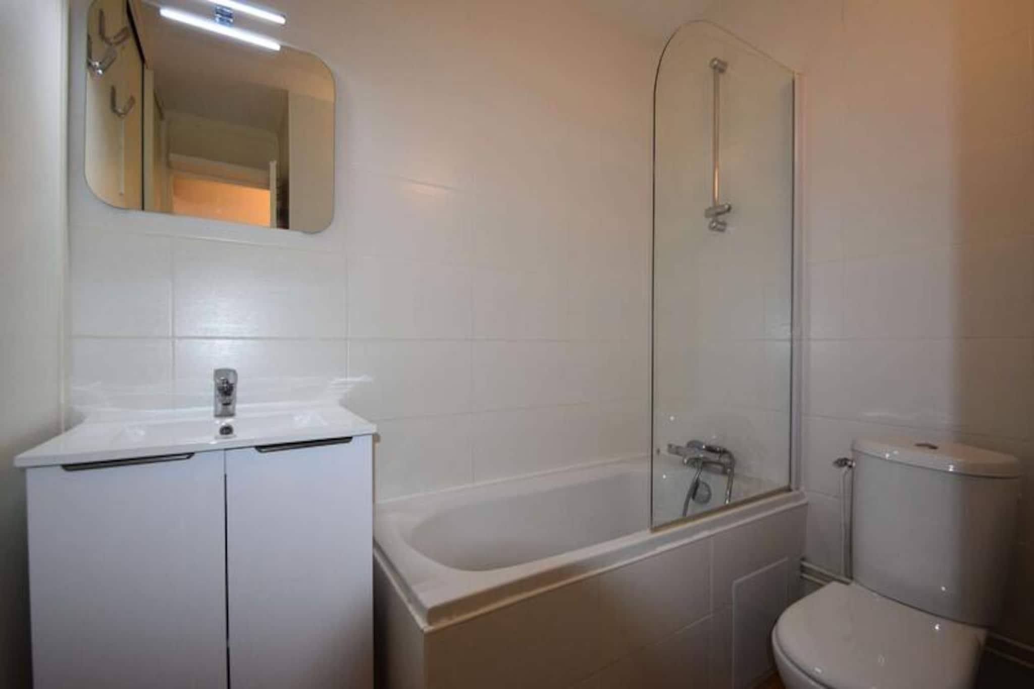 Högt ovanför La Plagnes snötäckta toppar erbjuder denna charmiga studiolägenhet en mysig tillflyktsort för både vinterentusiaster och bergsutforskare. Med sin balkong i söderläge bjuds gästerna på oavbruten utsikt över backarna, vilket skapar den perfekta bakgrunden för morgnar fyllda med frisk alpluft och kvällar som solar sig i den gyllene solnedgången. Belägen på 5:e våningen i Residence Le France kombinerar denna fastighet bekvämlighet med komfort, vilket gör den till en idealisk bas för dina äventyr i Paradiski-området. \n\nStudiolägenheten på 22 m² är omsorgsfullt utformad för att rymma upp till tre gäster. Det kompakta men funktionella köket har två elektriska spishällar, en kombiugn, kylskåp, diskmaskin och kaffebryggare, vilket säkerställer att du har allt som behövs för att laga rejäla måltider efter en dag i backarna. Vardagsrummet är utrustat med en bäddsoffa för en person och två utdragssängar, vilket erbjuder flexibla sovarrangemang. Ett modernt badrum med badkar och integrerad toalett ökar bekvämligheten, medan skidförvaringen på bottenvåningen säkerställer att din utrustning alltid är redo för action. \n\nResidence Le France ligger vid foten av backarna och är sömlöst anslutet till närliggande butiker och bekvämligheter via ett galleri, vilket gör det enkelt att komma åt allt du behöver under din vistelse. Oavsett om du är här för att åka skidor, snowboard eller bara njuta av det hisnande bergslandskapet, placerar denna fastighet dig i hjärtat av allt. \n\nPerfekt för par eller små familjer, denna studio inbjuder dig att uppleva magin i La Plagne med lätthet och komfort. Från dess utmärkta läge till dess genomtänkta bekvämligheter har varje detalj utformats för att säkerställa att din alpina resa blir inget annat än oförglömlig.