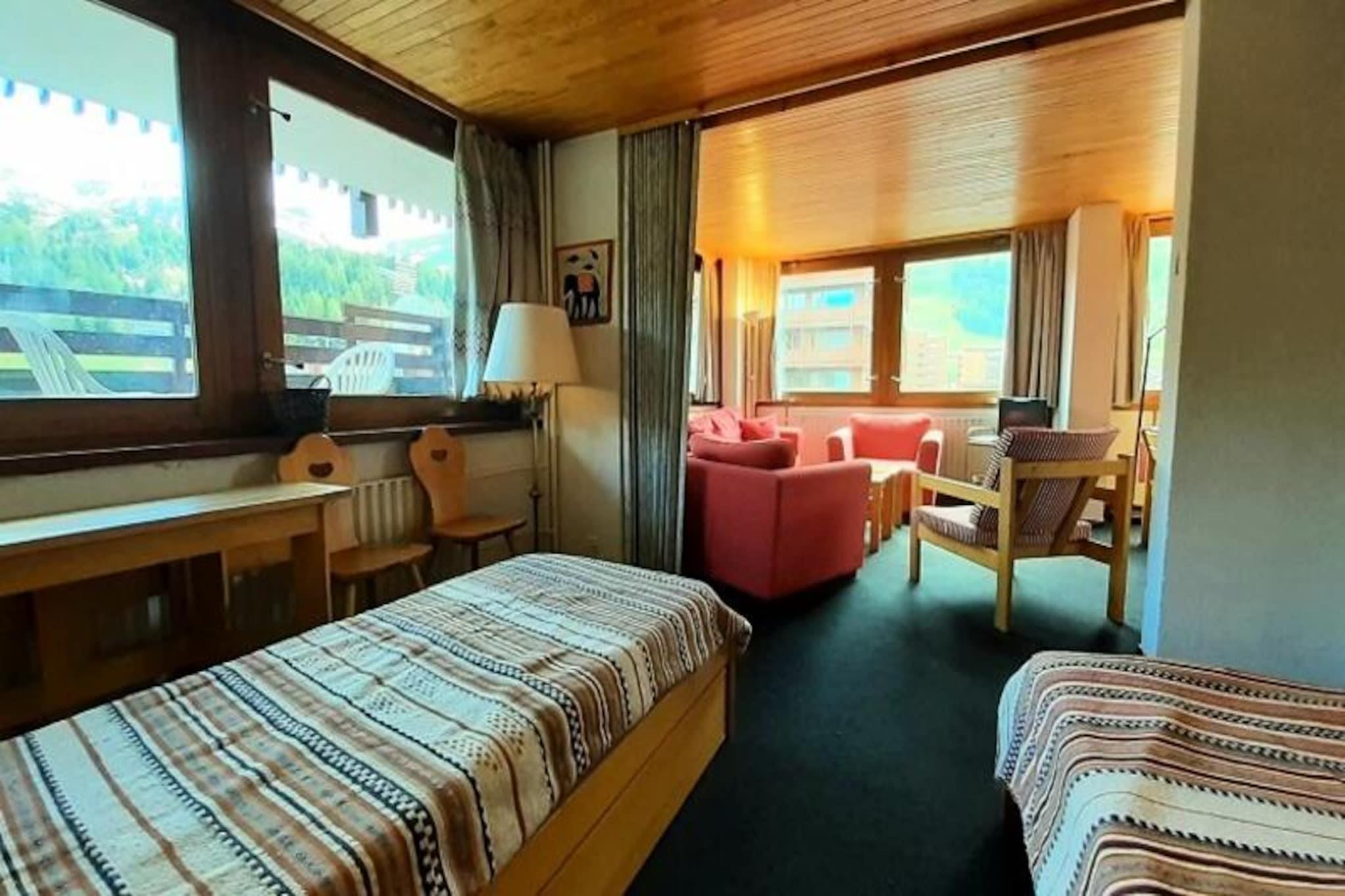 Högt ovanför Tarentaisedalen erbjuder denna charmiga lägenhet i Mont Blanc Residence en plats på första parkett med utsikt över Plagne Centres alpina underverk. Tänk dig att vakna upp till solen som strålar genom din balkong i söderläge, med hisnande utsikt över backarna och den livliga orten nedanför. På en höjd av 1970 meter är detta La Plagnes pulserande hjärta, där äventyr och avkoppling möts i perfekt harmoni. Oavsett om du är här för spänningen med skidåkning eller bergens fridfulla skönhet, är detta din port till en oförglömlig alpin flykt. Kliv in i denna rymliga 61 m² stora oas, omsorgsfullt utformad för upp till sex gäster. Det ljusa vardagsrummet inbjuder dig att varva ner med sin mysiga soffa, fåtöljer och TV, medan det separata köket är fullt utrustat med moderna apparater, inklusive diskmaskin och mikrovågsugn, vilket gör matlagningen till en barnlek. Sovrummen är både praktiska och bekväma, med ett sovrum med två enkelsängar separerade av en skjutbar skiljevägg, och ett annat med våningssängar perfekt för familjer eller grupper. Ett badrum med badkar och tvättmaskin, tillsammans med en separat toalett, garanterar bekvämlighet under hela din vistelse. Ytterligare bekvämligheter som skidförvaring och inkluderade el och drycker gör din semester ännu enklare. Bara 50 meter från backarna och 100 meter från skidliftarna, läget kunde inte vara bättre. Residenset erbjuder också direkt tillgång till ett köpcentrum där du hittar allt från restauranger till liftbiljettkontor. Plagne Centre är ett pulserande centrum som erbjuder aktiviteter, tjänster och tillgång till La Grande Rochette, en av de mest fantastiska 360°-panoramora i Alperna. Oavsett om du utforskar backarna eller njuter av afterski, finns allt inom räckhåll. Välj denna lägenhet för dess oslagbara läge, mysiga bekvämligheter och löftet om att skapa värdefulla minnen i hjärtat av de franska Alperna. Med de majestätiska topparna som bakgrund är varje ögonblick här en hyllning till bergslivet.
