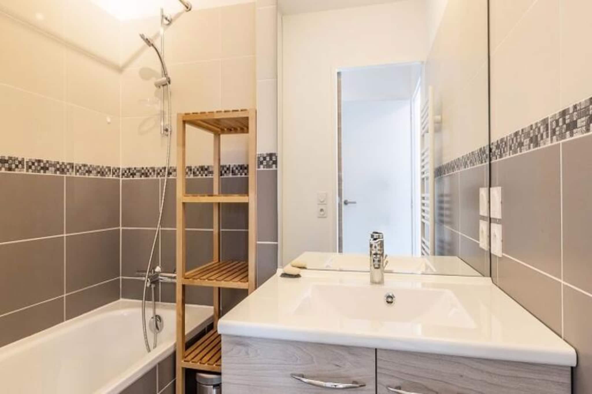 Högt ovanför de livliga dalarna erbjuder denna moderna alpina reträtt i Plagne Centre en exceptionell blandning av modern komfort och bergscharm. Från det ögonblick du kliver ut på den vidsträckta 20 m² stora terrassen i sydvästläge kommer du att fängslas av panoramautsikten över orten och de majestätiska topparna som omger den. Oavsett om du är här för att åka skidor, vandra eller bara njuta av den fridfulla alpina atmosfären, är denna bostad perfekt placerad för att göra varje ögonblick oförglömligt. Inuti har fastigheten ett ljust och rymligt vardagsrum med en stor soffa och TV, perfekt för att varva ner efter en dag av äventyr. Köket med öppen planlösning är fullt utrustat med allt du behöver, inklusive kyl/frys, diskmaskin, keramikhäll, ugn, mikrovågsugn och Nespresso-kaffebryggare, vilket gör det enkelt att laga mat och njuta av mysiga kvällar. Med två bekväma sovrum, en sovalkov med våningssängar och två moderna badrum (ett med badkar och tvättmaskin) är detta hem perfekt för familjer eller grupper av vänner som söker en avkopplande bergsflykt. Beläget bara 100 meter från backarna och bara några steg från det livliga köpcentret, har du enkel tillgång till alla bekvämligheter och aktiviteter som Plagne Centre har att erbjuda. Skidförvaring och privat garage med elanslutning ökar bekvämligheten, medan inkluderade tjänster som sängkläder, handdukar och slutstädning garanterar en problemfri vistelse. Oavsett om du beundrar den hisnande 360°-utsikten från La Grande Rochette, utforskar de oändliga skidbackarna eller njuter av den livliga afterski-scenen, placerar denna anläggning dig i hjärtat av allt. Upplev magin i de franska Alperna i en anläggning som kombinerar modern lyx med bergens tidlösa skönhet.