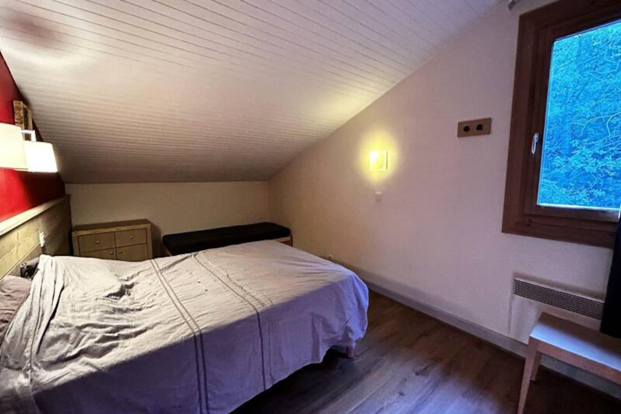 Högt ovanför de fridfulla skogarna i Plagne 1800 erbjuder denna charmiga duplexlägenhet en perfekt tillflyktsort för familjer och vänner som söker en blandning av alpint äventyr och mysig komfort. Från balkongen i söderläge kan du njuta av en oavbruten utsikt över La Plagnes majestätiska toppar, där det skiftande ljuset målar ett nytt mästerverk varje timme. Residensens arkitektur i chaletstil och varma interiör skapar en inbjudande atmosfär, perfekt för att varva ner efter en dag i backarna. Denna rymliga lägenhet är 55 m² stor och har en omsorgsfull design i två våningar. Första våningen har ett ljust vardagsrum med två bäddsoffor, en TV och en matplats centrerad kring ett stort bord. Det angränsande öppna köket är fullt utrustat med moderna apparater, inklusive keramikhäll, diskmaskin och ugn, vilket gör att du enkelt kan laga rejäla måltider. På övervåningen erbjuder sovrummet en lugn oas med en dubbelsäng, medan barnrummet och mezzaninen ger gott om sovplats. Två badrum, ett med badkar och ett med dusch, gör det bekvämt för större grupper. Ett skidförvaringsskåp och en täckt parkeringsplats i närheten kompletterar de praktiska bekvämligheterna. Residenset SAINBOIS, beläget på toppen av Plagne 1800, erbjuder enkel tillgång till lokala butiker och en uppvärmd utomhuspool, perfekt för avkoppling efter en aktiv dag. Anläggningen i sig är en familjevänlig oas, omgiven av frodiga skogar och ansluten till Plagne centrum med en bekväm busslinje som går till sent på natten. Oavsett om du är här för att åka skidor, vandra eller bara andas in den friska bergsluften, erbjuder denna lägenhet den perfekta basen för oförglömliga alpina minnen.