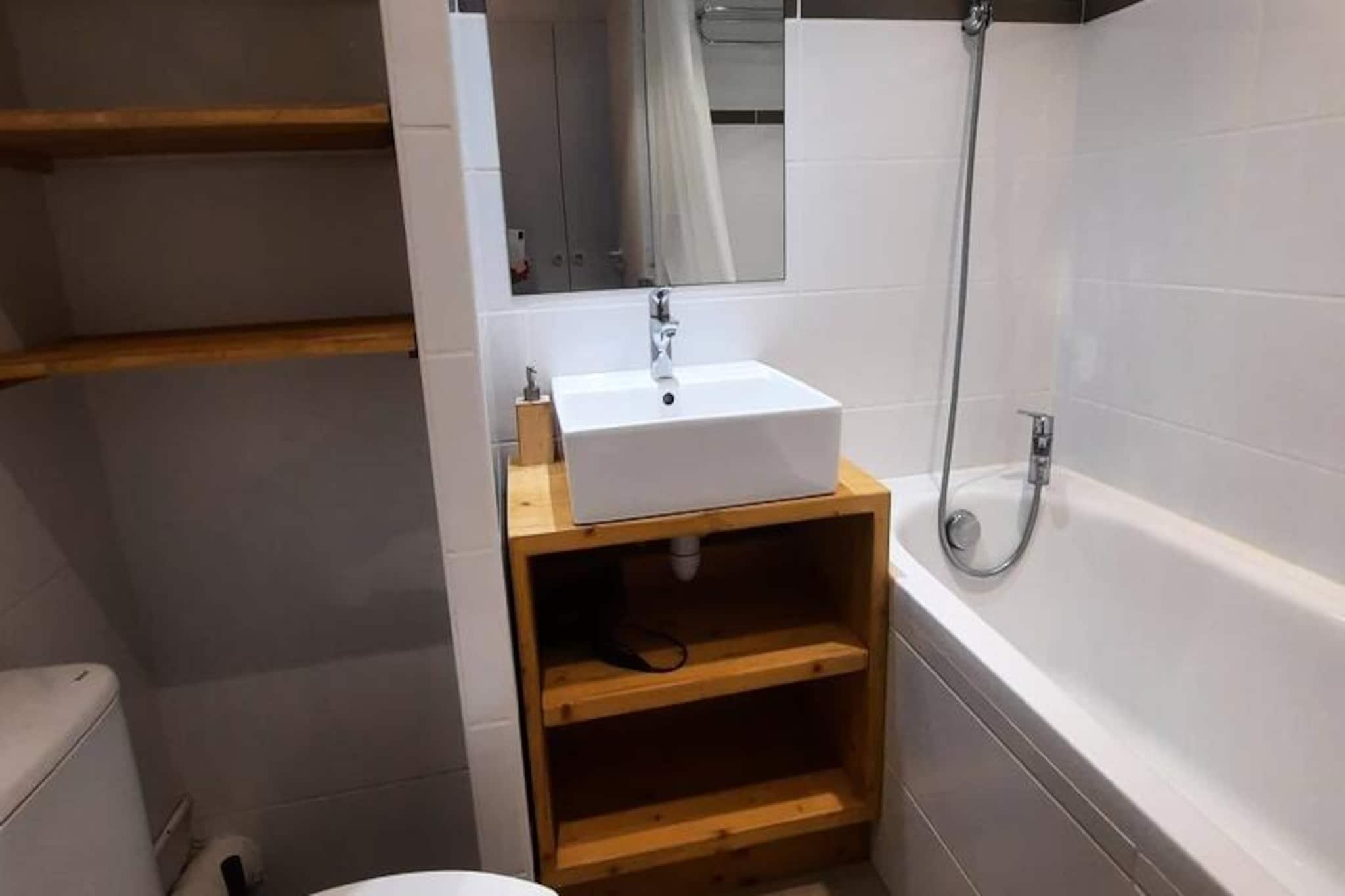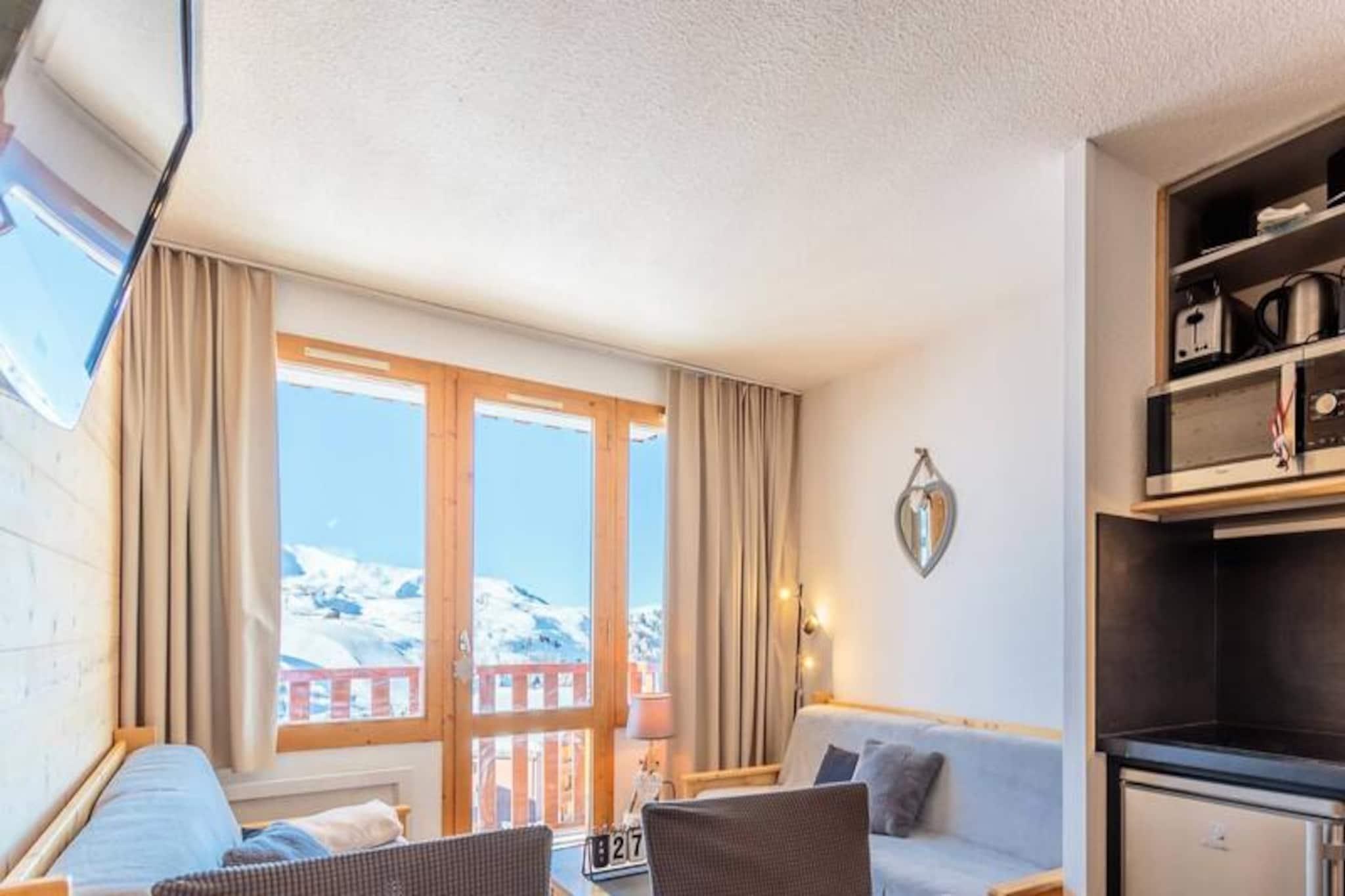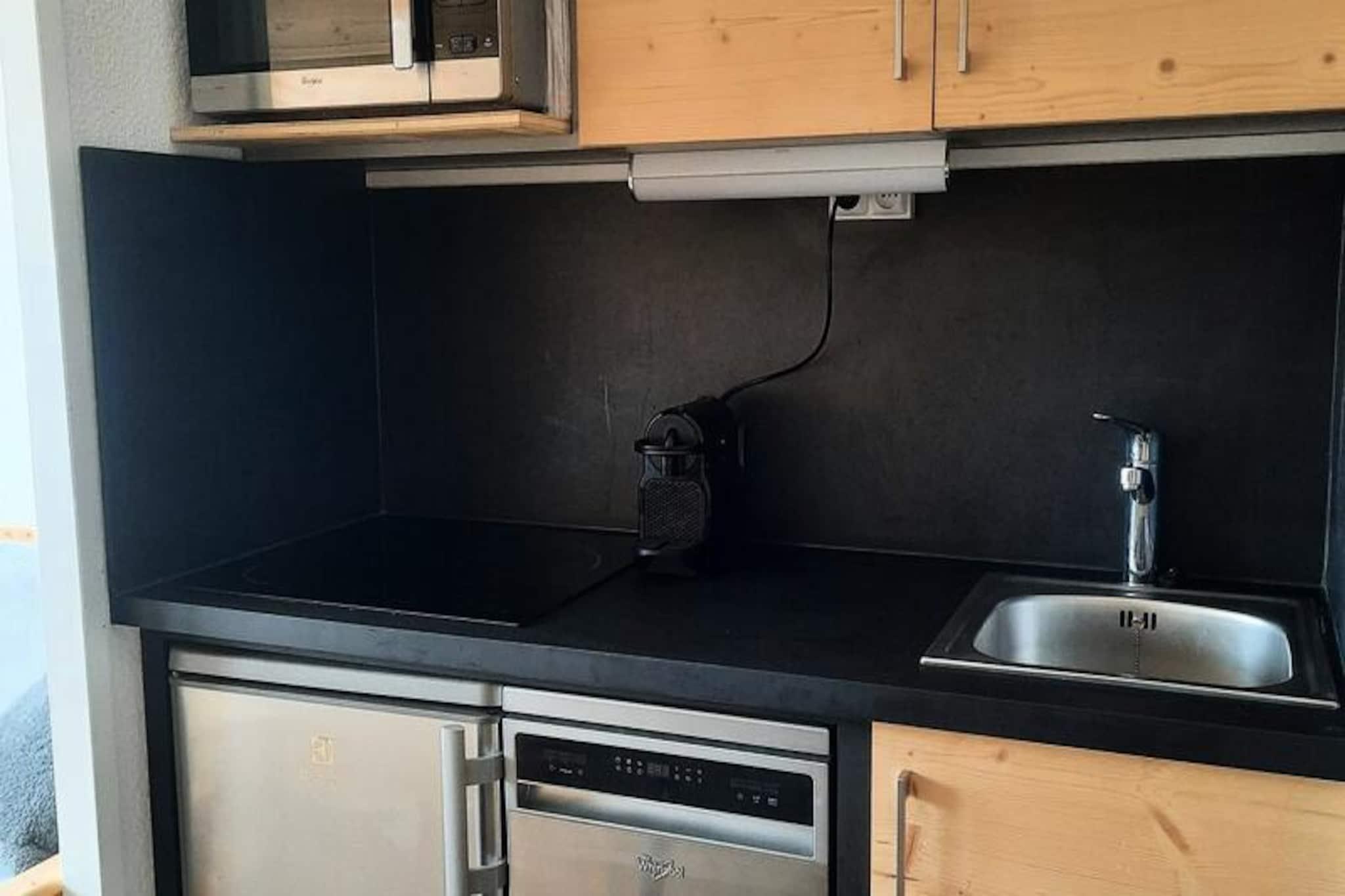 Högt ovanför Tarentaisedalen erbjuder denna charmiga enrumslägenhet i Andromède Residence en perfekt alpin tillflyktsort i Belle Plagne. Med sin sydvästvända balkong kan du njuta av den hisnande utsikten över bergen medan du solar dig i solskenet, vilket skapar en lugn och pittoresk atmosfär för din semester. Belle Plagne, belägen på 2 050 meters höjd, är en gåvänlig semesterort känd för sin traditionella bergsarkitektur och direkta ski-in/ski-out-tillgång till backarna, vilket gör den till en fristad för både vintersportentusiaster och naturälskare. Lägenheten är omsorgsfullt utformad för upp till fyra gäster och har ett mysigt vardagsrum med två enkelsängar och en TV, samt ett separat sovrum med en bekväm dubbelsäng. Köket med öppen planlösning är fullt utrustat med moderna apparater, inklusive keramikhäll, kylskåp, diskmaskin och kaffebryggare, vilket säkerställer att du har allt som behövs för att laga läckra måltider efter en dag i backarna. Badrummet har badkar och toalett, vilket ger bekvämlighet och komfort under din vistelse. Ytterligare bekvämligheter som ett skidförvaringsskåp och täckt parkeringsplats gör din alpina semester ännu enklare. Bara några steg bort hittar du ESF-skidliftarna, ett pulkaområde och en minilivs, medan ortens centrum med dess butiker och restauranger nås inom några minuter via trappor eller hiss. En linbana till Plagne-Bellecôte är öppen fram till sent på kvällen och erbjuder smidig tillgång till mer av Paradiski-området. Oavsett om du åker skidor på vintern eller utforskar de fantastiska bergslederna på sommaren, lovar Belle Plagne en oförglömlig upplevelse. Välj denna lägenhet för dess oslagbara läge, mysiga atmosfär och möjligheten att fördjupa dig i de franska Alpernas skönhet. Från spännande utomhusäventyr till fridfulla stunder på balkongen är detta den perfekta basen för att skapa värdefulla minnen i bergen.