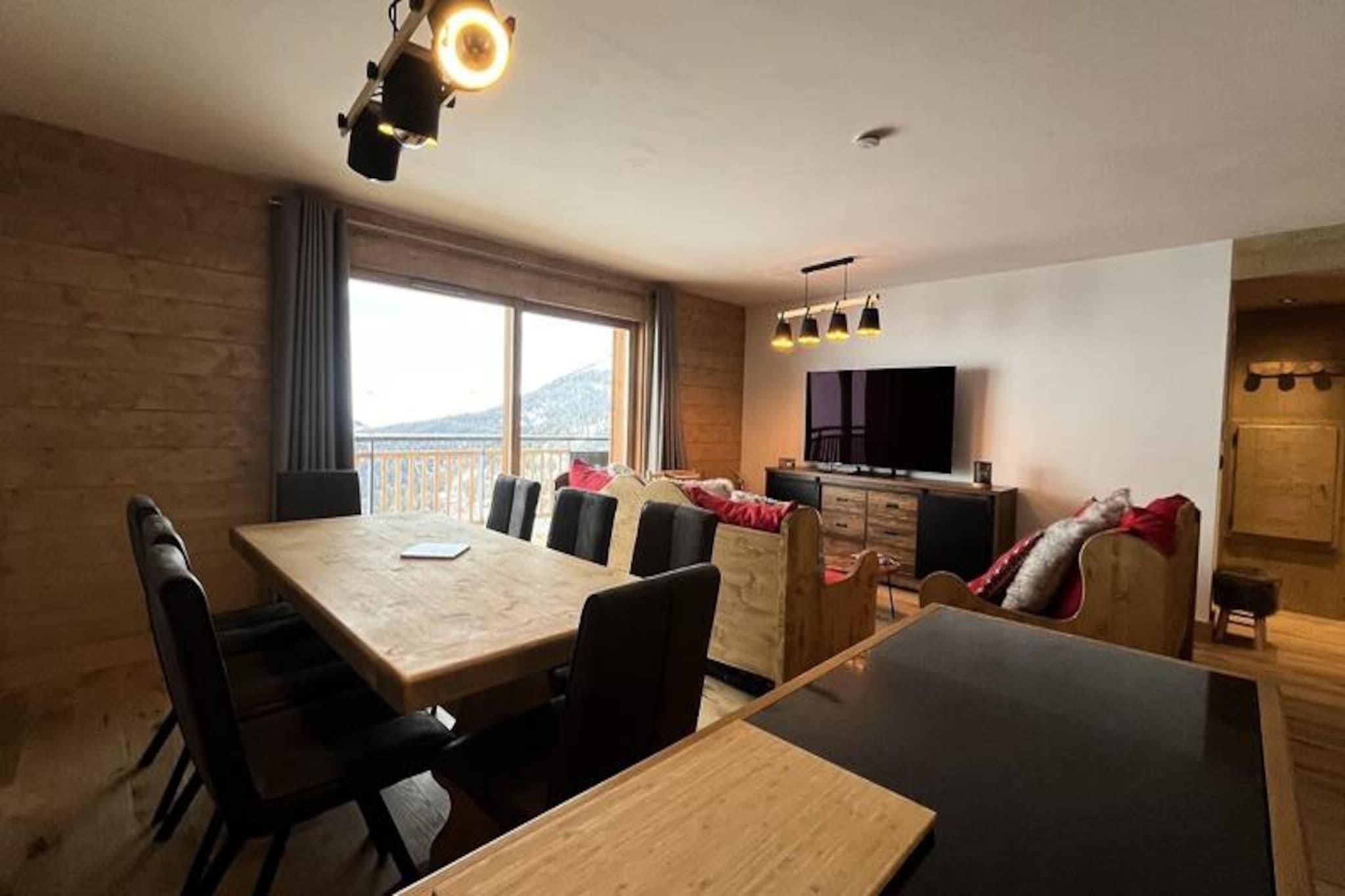 Högt ovanför de pittoreska sluttningarna i La Plagne Centre erbjuder denna lyxiga lägenhet i det exklusiva MANAKA-residenset en oöverträffad alpin reträtt. Med hisnande utsikt över Mont Blanc från din privata balkong, genomsyras varje ögonblick här av magin i de franska Alperna. Oavsett om du smuttar på kaffe i soluppgången eller varvar ner efter en dag i backarna, är detta en plats där komfort möter naturlig skönhet. Lägenheten är 84 m² stor och är utformad för att rymma upp till sex gäster med stil. Det rymliga vardagsrummet, med två mjuka soffor och en platt-TV, öppnar upp mot en balkong som ramar in den majestätiska bergsutsikten. Köket med öppen planlösning är fullt utrustat med moderna apparater, inklusive kylskåp, keramikhäll, mikrovågsugn, ugn och diskmaskin, vilket gör det perfekt för att laga rejäla måltider efter en dag av äventyr. Sovrummen inkluderar en master suite med eget duschrum och toalett, ett mysigt barnrum med två enkelsängar och ett mångsidigt tredje sovrum där enkelsängarna kan kombineras. Ytterligare bekvämligheter som tvättmaskin/torktumlare, separat toalett och Wi-Fi säkerställer en smidig vistelse. Belägen vid foten av backarna erbjuder denna lägenhet direkt tillgång till ski-in/ski-out, vilket gör den till en dröm för vintersportsentusiaster. Två privata parkeringsplatser och ett skidförvaring bidrar till bekvämligheten. Även om residensens pool inte ingår, ligger den pulserande byn La Plagne Centre precis utanför dörren och erbjuder butiker, restauranger och afterski-aktiviteter. På sommaren förvandlas området till en fristad för vandrare och mountainbikecyklister, med stigar som leder till fantastiska alpina landskap. Med sina förstklassiga bekvämligheter, sitt utmärkta läge och sin oförglömliga utsikt är denna lägenhet det perfekta valet för familjer eller vänner som söker en sofistikerad bergsflykt. Låt charmen i Mont Blanc och La Plagnes lockelse skapa minnen som varar livet ut.