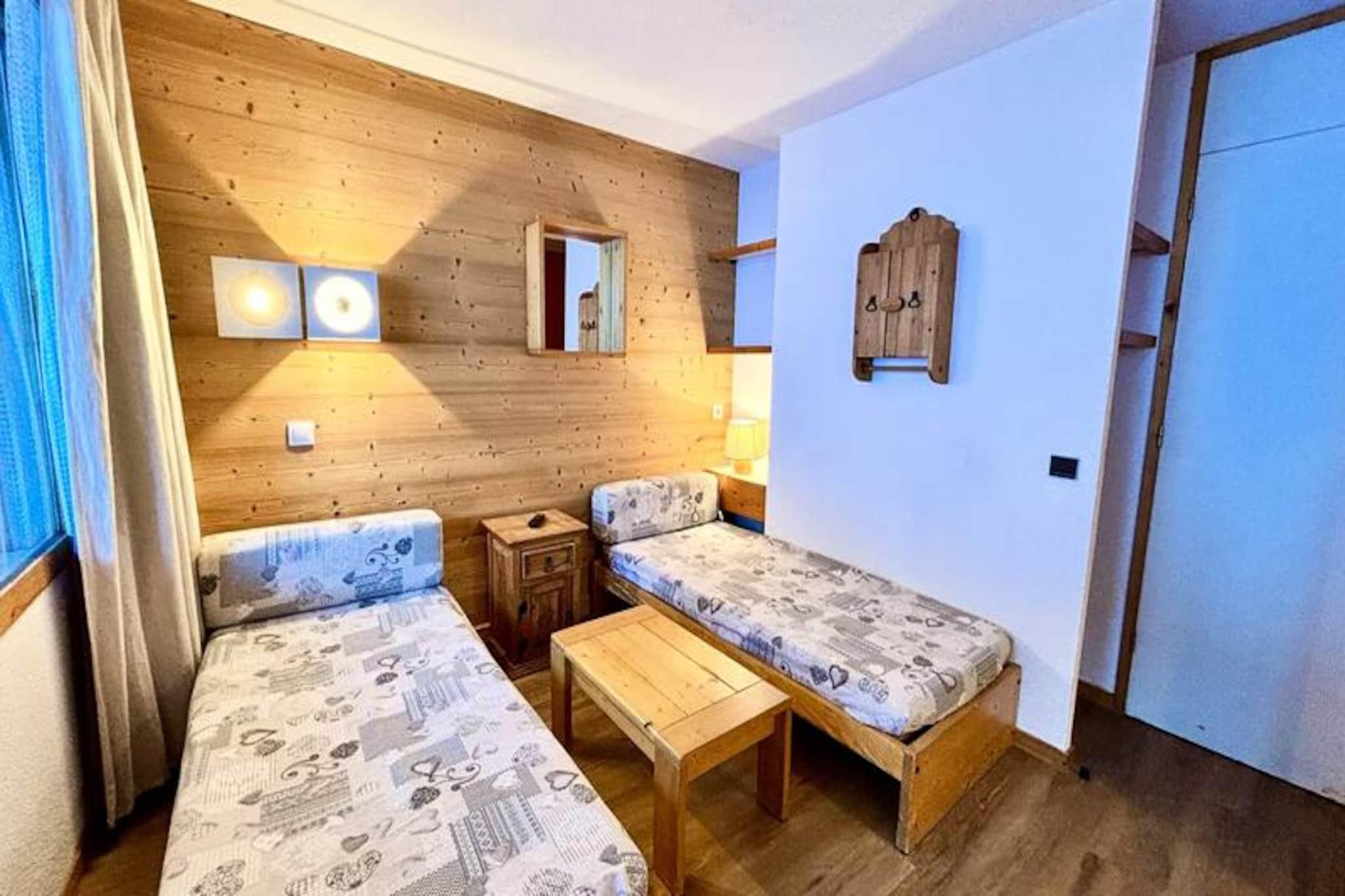 Mitt i Les Coches lugna skönhet erbjuder denna charmiga studio på 27 m² en mysig alpin tillflyktsort för upp till fyra gäster. Med sitt läge på bottenvåningen och en terrass i söderläge med utsikt över de förtrollande granarna är det den perfekta platsen att varva ner efter en dag av bergsäventyr. Studions smarta design inkluderar en flyttbar skiljevägg för att skapa ett flexibelt boendeutrymme, vilket garanterar både komfort och avskildhet under din vistelse. \n\nInuti hittar du ett välutrustat pentry med mikrovågsugn, diskmaskin, keramikhäll, kylskåp, elektrisk kaffebryggare, brödrost och till och med ett racletteset för en sann smak av Alperna. Vardagsrummet har fyra enkelsängar och en TV, medan badrummet och den separata toaletten ökar bekvämligheten. Lägenheten är rökfri, husdjursfri och har mysiga täcken för en god natts sömn. Ett skidförvaring finns i bostaden för enkel åtkomst till backarna.\n\nSjälva bostaden är en blandning av traditionell trä- och stenarkitektur, sömlöst ansluten till närliggande byggnader för extra bekvämlighet. Beläget i hjärtat av Les Coches, bara några steg från butiker, restauranger och det livliga Place du Carreau, där säsongsbetonade aktiviteter ger liv åt byn. Familjer kommer att uppskatta närheten till daghemmet och ESF-skidskolan, medan parkering under jord garanterar problemfri ankomst.\n\nOavsett om du är här för att vandra genom Paradiskis backar eller utforska sommarspåren, erbjuder denna studio en välkomnande bas för din alpina flykt. Boka nu och fördjupa dig i charmen och äventyret i de franska Alperna.