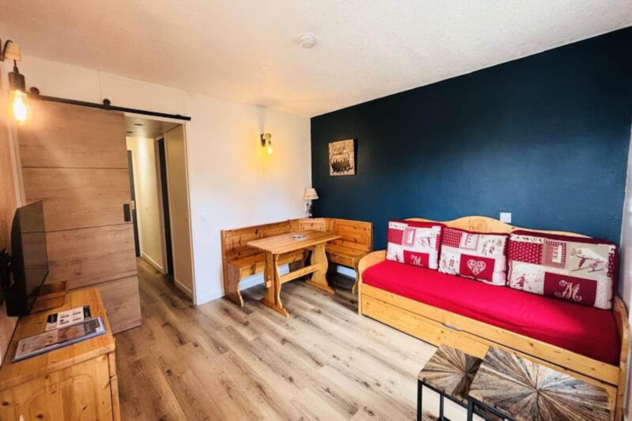 Tänk dig att vakna upp till Mont Blancs majestätiska silhuett som möter dig från din privata terrass. Denna mysiga studio på 20 m², belägen på bottenvåningen i den charmiga residensen La Boussole, är en härlig tillflyktsort för två. Studion är designad med komfort och enkelhet i åtanke och har ett vardagsrum med en bäddsoffa för en enda person och en utdragbar säng, ett välutrustat pentry med moderna apparater inklusive ugn, mikrovågsugn och diskmaskin, samt ett badrum med toalett. Den norrvända terrassen erbjuder hisnande utsikt över det ikoniska Mont Blanc, vilket skapar den perfekta platsen för en morgonkaffe eller en kväll med lugn reflektion. Observera att lägenheten är rökfri och husdjur är välkomna mot en liten avgift. Även om det inte finns WiFi är studion utrustad med täcken för en mysig vistelse. Residensen La Boussole, med sin rustika träbeklädnad och synliga sten, är idealiskt belägen mindre än 300 meter från hjärtat av Les Coches skidort. Här hittar du butiker, restauranger och den berömda franska skidskolan (ESF). För skidentusiaster ligger backarna bara några steg bort, och ett skidförvaring finns bekvämt beläget i residensen. Allmän parkering finns i närheten, vilket garanterar enkel åtkomst under hela din vistelse. Observatoire-distriktet, känt som det lugnaste området i Les Coches, erbjuder panoramautsikt över dalen och Mont Blanc. En kort gångstig förbinder dig med det livliga centrumet på under fem minuter. Oavsett om du är här för att åka skidor, utforska de alpina spåren eller bara varva ner i den fridfulla bergsmiljön, erbjuder denna studio en idealisk bas för dina äventyr. Med sitt oslagbara läge och charmiga atmosfär är det det perfekta valet för en minnesvärd alpin semester.