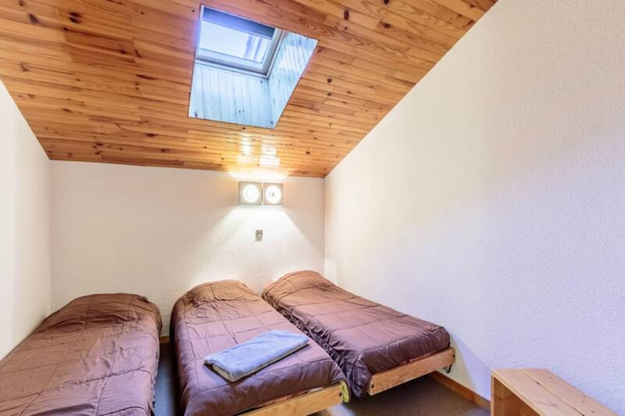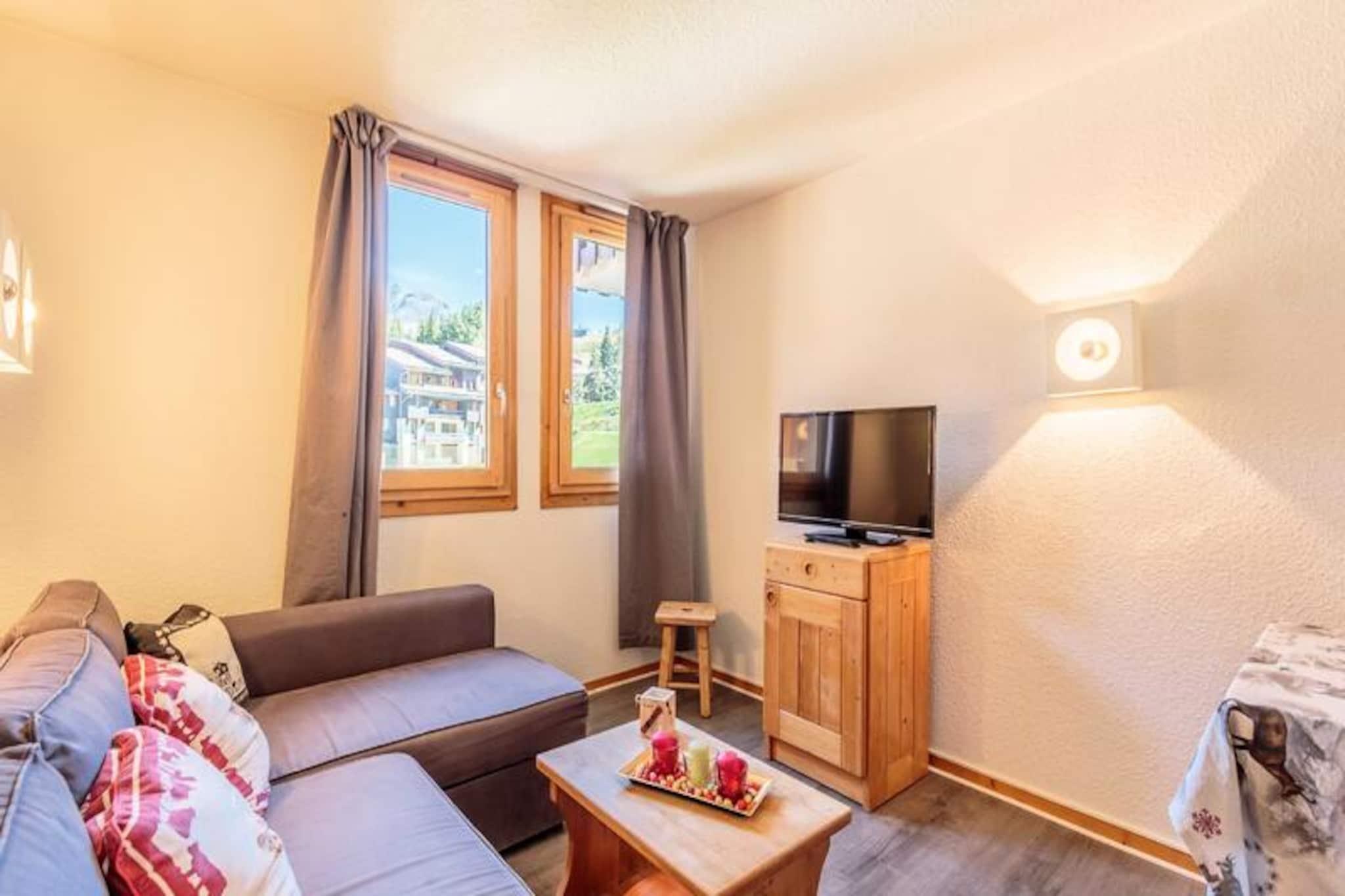 Där Les Coches pulserande charm möter Alpernas fridfulla skönhet erbjuder denna mysiga duplexlägenhet en härlig tillflyktsort för upp till fem gäster. Belägen på fjärde våningen med utsikt över Place du Carreau, vilket gör att du kan njuta av den livliga atmosfären i orten medan du njuter av fridfulla morgnar med soluppgången över de östra sluttningarna. Oavsett om du är här för vinterskidåkning eller sommaräventyr i bergen, placerar detta boende dig mitt i allt. \n\nInuti är lägenheten noggrant utformad för att kombinera komfort och praktiskhet. Vindsovrummet på övervåningen har tre enkelsängar, perfekt för familjer eller små grupper, tillsammans med ett badrum och separat toalett för bekvämlighet. På bottenvåningen inbjuder vardagsrummet dig att varva ner med en bäddsoffa, TV och DVD-spelare, medan pentryt är utrustat med moderna bekvämligheter inklusive en kombiugn, diskmaskin, keramikhäll och till och med ett racletteset för mysiga alpina kvällar. Med täcken och ett skidförvaring i byggnaden är varje detalj skräddarsydd för att garantera en problemfri vistelse. \n\nStig ut och du befinner dig i Les Coches livliga centrum, med butiker, restauranger och ESF-skidskolan bara några minuter bort. Place du Carreau är värd för en mängd olika aktiviteter, vilket skapar en livlig atmosfär som kompletterar bekvämligheten med ski-in/ski-out-åtkomst. På sommaren förvandlas området till ett nav för vandring, cykling och utforskande av de hisnande landskapen i Tarentaise-dalen. \n\nOavsett om du söker spännande backar, lugna stigar eller bara en mysig bas för att koppla av, erbjuder denna lägenhet den perfekta blandningen av läge, komfort och alpin charm. Gör din vistelse oförglömlig i hjärtat av Les Coches.