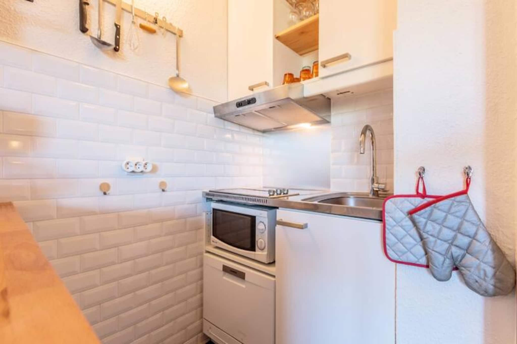 I utkanten av den charmiga byn Les Coches erbjuder denna mysiga lägenhet en härlig alpin tillflyktsort med fantastisk utsikt över Mont Blanc från sin balkong i norrläge. Perfekt belägen i hjärtat av orten, med enkel tillgång till backarna och den livliga Place des Commerces, där lokala butiker, restauranger och aktiviteter skapar en livlig atmosfär för besökare året runt. Oavsett om du söker spännande skidäventyr eller lugna bergsresor, sätter denna fastighet scenen för oförglömliga stunder i de franska Alperna. \n\nLägenheten, som ligger på andra våningen i en stor residens, är omsorgsfullt utformad för att rymma upp till fyra gäster. Den har ett bekvämt sovrum med våningssängar, ett vardagsrum med bäddsoffa, TV och radio, samt ett välutrustat kök med ugn, diskmaskin, mikrovågsugn, keramikhäll, kylskåp och viktiga apparater som kaffebryggare och brödrost. Ett separat badrum och toalett garanterar bekvämlighet, medan skidförvaringen i byggnaden gör det praktiskt för vintersportsentusiaster. Residenset erbjuder också underjordisk parkering, som kan reserveras i förväg för extra bekvämlighet. Les Coches är en pärla i Paradiski-området och erbjuder direkt tillgång till skidbackar i världsklass och en mängd olika aktiviteter för alla åldrar. ESF:s skidskola och daghem ligger bara några steg bort, vilket gör detta till ett idealiskt val för familjer. På sommaren förvandlas området till en fristad för vandrare och cyklister, med stigar som leder till hisnande panoramautsikt och fridfulla alpina ängar. Det livliga Place du Carreau anordnar evenemang och aktiviteter som för samman samhället och garanterar underhållning och avkoppling under hela din vistelse. Oavsett om du dras till spänningen med skidåkning eller lugnet i bergslandskap, kombinerar denna lägenhet komfort, bekvämlighet och charm, vilket gör den till den perfekta basen för dina alpina äventyr.