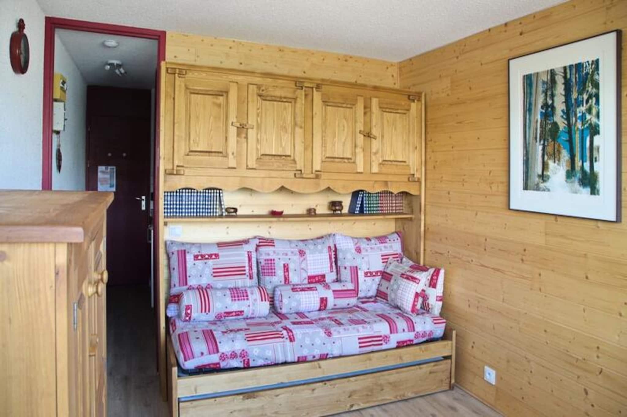 Högt ovanför Tarentaisedalen erbjuder denna charmiga studio en mysig tillflyktsort för två i det fridfulla Observatoire-distriktet Les Coches. Från din privata balkong kan du njuta av den hisnande utsikten över Mont Blanc och det omgivande alpina landskapet medan solen går ner över den nordvästra horisonten. Perfekt för par eller ensamresenärer, detta gömställe på översta våningen är en fridfull flykt från vardagens stress. Studioen på 17 m² är omsorgsfullt utformad för att maximera komfort och funktionalitet. Vardagsrummet har en bäddsoffa för en enda person med en utdragbar säng, perfekt för vilsamma nätter efter en dag av äventyr. Det kompakta köket är utrustat med moderna bekvämligheter, inklusive en kombinerad ugn, keramikhäll, kylskåp och en Nespresso-maskin, vilket gör att du enkelt kan laga mat. Badrummet har en toalett och allt du behöver för en uppfriskande start på dagen. Observera att lägenheten är rökfri, husdjursfri och inte inkluderar Wi-Fi. Residenset L'Équerre ligger bara 100 meter från skidbackarna och 300 meter från semesterortens centrum och erbjuder oöverträffad bekvämlighet. Allmän parkering finns precis utanför, och skidförvaringen säkerställer att din utrustning alltid är redo för nästa åktur. Observatoire-distriktet är känt för sitt lugn och sin fantastiska utsikt, med gångvägar som förbinder dig med butiker, restauranger och det pulserande hjärtat av Les Coches på under fem minuter. Oavsett om du är här för att snubbla genom snön på vintern eller utforska de frodiga bergslederna på sommaren, erbjuder denna studio den perfekta basen för att skapa oförglömliga alpina minnen. Med Mont Blanc som bakgrund och backarna precis utanför dörren väntar ditt bergsäventyr.
