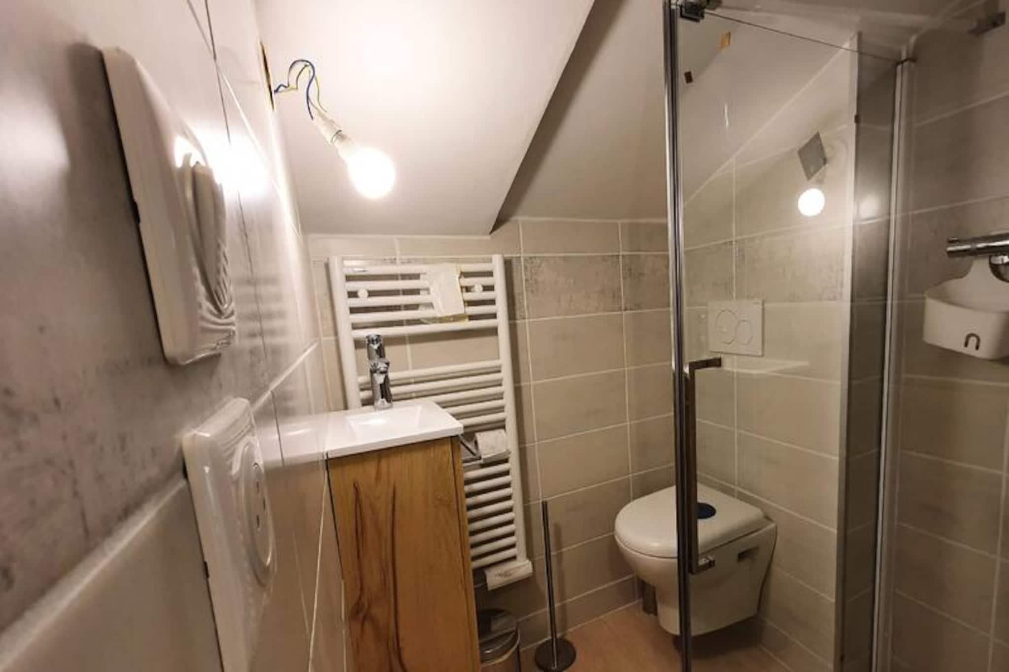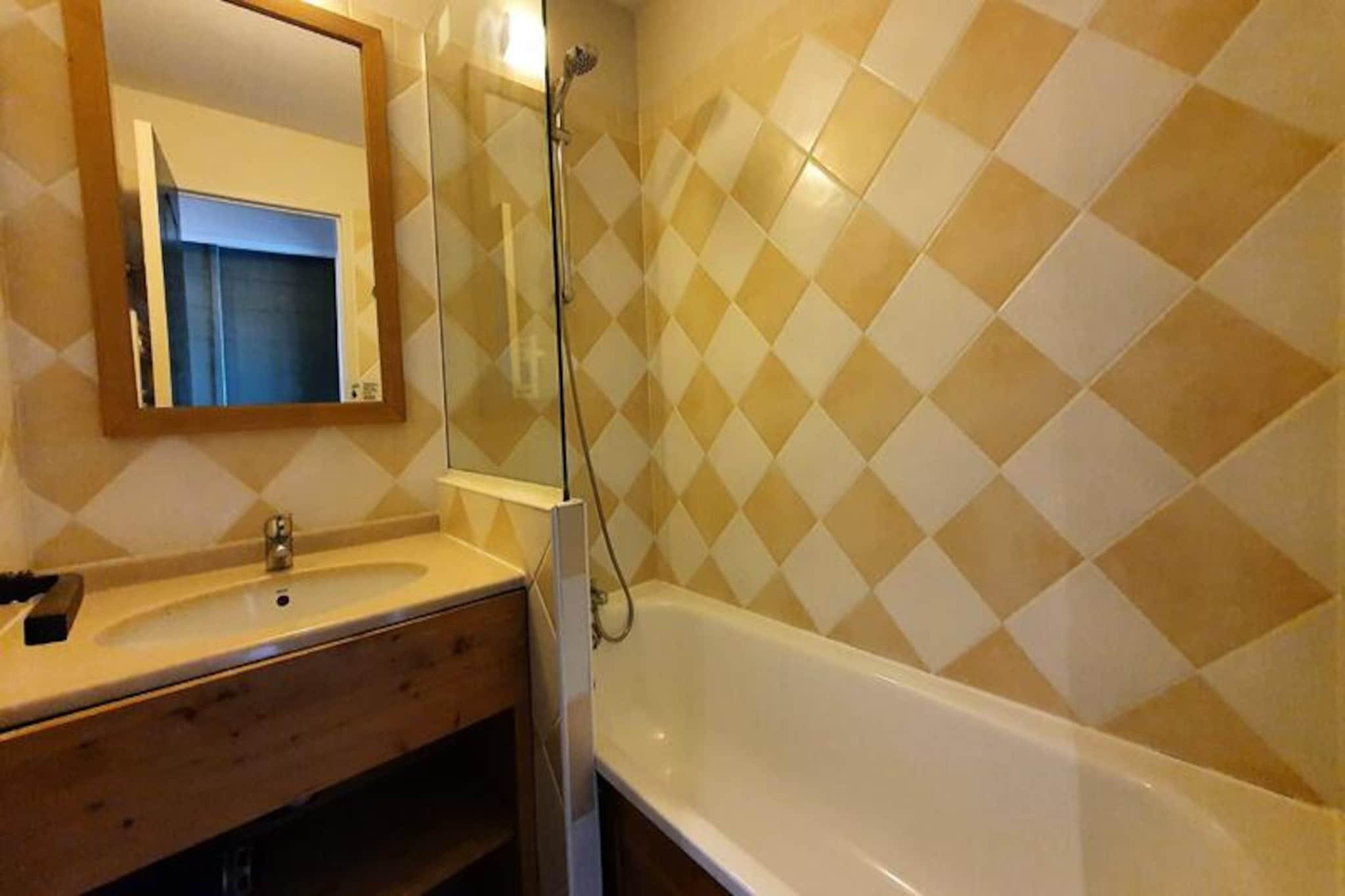 I utkanten av en lugn alpskog erbjuder denna charmiga lägenhet en fridfull tillflyktsort med hisnande utsikt över Mont Blanc från sin balkong i norrläge. Perfekt beläget för skidentusiaster, erbjuder residenset ski-in/ski-out till Montchavins backar, vilket garanterar enkla dagar i de puderiga spåren. Oavsett om du söker äventyr eller avkoppling, inbjuder denna fastighet dig att fördjupa dig i de franska Alpernas naturliga skönhet. \n\nDenna 2-stjärniga lägenhet är 65 m² stor och rymmer upp till åtta gäster med sin noggrant utformade planlösning. På övervåningen hittar du ett mezzanin med två enkelsängar, ett mysigt fönsterlöst sovrum med två enkelsängar och ett kompakt duschrum. På bottenvåningen finns ett dubbelrum med TV, ett annat sovrum med två enkelsängar och ett rymligt vardagsrum med TV och ett fullt utrustat kök med öppen planlösning. Köket har moderna apparater som kyl/frys, diskmaskin, mikrovågsugn, keramikhäll och en Senseo-kaffebryggare. Ytterligare bekvämligheter inkluderar tvättmaskin, torktumlare och skidförvaring, vilket garanterar en bekväm och praktisk vistelse. \n\nSjälva residenset ligger inbäddat nära backen som leder till Montchavin, med en busshållplats bekvämt belägen för enkel åtkomst till ortens centrum. Dess traditionella arkitektur, med en blandning av trä, sten och skiffer, kompletterar den pittoreska omgivningen. Förutom skidåkning kan gästerna utforska närliggande leder, njuta av lugnet i skogen eller helt enkelt beundra den panoramautsikt över dalen. \n\nOavsett om du besöker detta ställe för en vinterskidsemester eller en sommarresa, erbjuder denna lägenhet den perfekta basen för att skapa oförglömliga minnen i hjärtat av Alperna. Med sin blandning av komfort, bekvämlighet och fantastiska landskap är det ett idealiskt val för både familjer och grupper.
