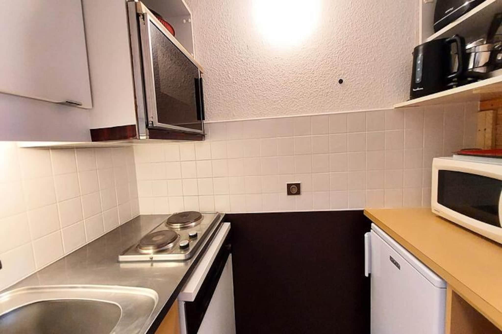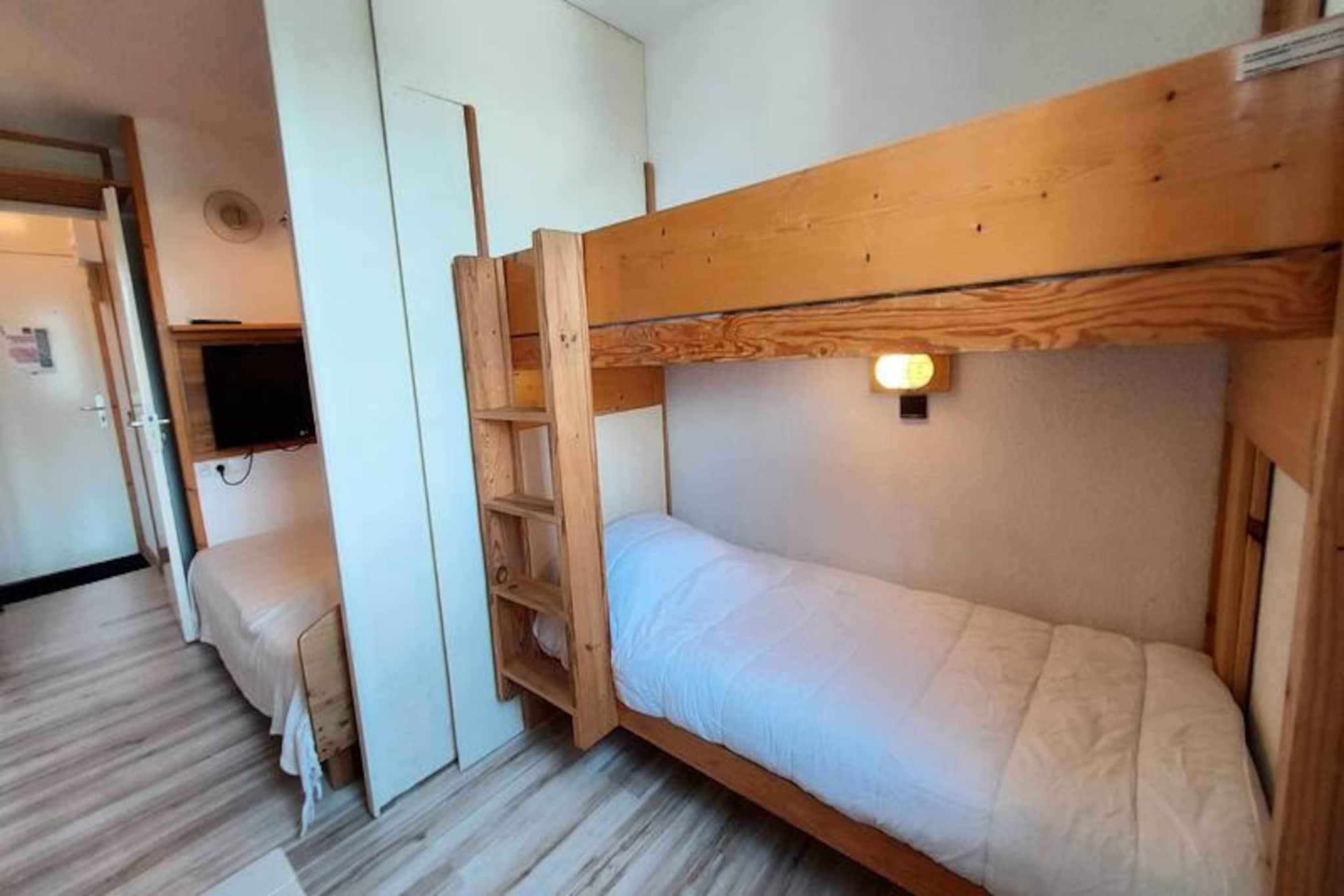 Där det majestätiska Mont Blanc pryder horisonten erbjuder denna charmiga studio i Les Coches en mysig alpin tillflyktsort för upp till fyra gäster. Belägen på tredje våningen i en centralt belägen bostad, erbjuder denna 27 m² stora yta en inbjudande atmosfär för både äventyrslystna och de som längtar efter en lugn bergsflykt. Den norrläge balkongen erbjuder hisnande utsikt över Mont Blanc, vilket gör den till den perfekta platsen att smutta på ditt morgonkaffe eller varva ner efter en dag i backarna. \n\nInuti är studion noggrant utformad med ett vardagsrum med en bekväm dubbelsäng, TV och radio. En separat sovplats med våningssängar garanterar avskildhet och bekvämlighet för familjer eller små grupper. Pentryt är fullt utrustat med moderna apparater, inklusive ugn, diskmaskin, mikrovågsugn och brödrost, så att du enkelt kan laga rejäla måltider. Ett badrum och en separat toalett kompletterar planlösningen, medan lägenheten är utrustad med mysiga täcken för en god natts sömn. \n\nBostaden i sig är idealiskt belägen i hjärtat av Les Coches, bara några steg från butiker, restauranger och det livliga Place du Carreau. Skidentusiaster kommer att uppskatta direkt tillgång till skidbacken, liksom närheten till ESF:s skidskola och daghem. Underjordisk parkering finns tillgänglig för extra bekvämlighet, och den livliga atmosfären på anläggningen säkerställer att det alltid finns något att njuta av, från afterski-aktiviteter till familjevänliga evenemang. \n\nOavsett om du är här för att ta dig fram genom Paradiskis orörda backar eller bara njuta av den fridfulla alpina skönheten, erbjuder denna studio en oförglömlig bas för dina bergsäventyr. Med sitt utmärkta läge och fantastiska utsikt är det en plats där värdefulla minnen skapas.