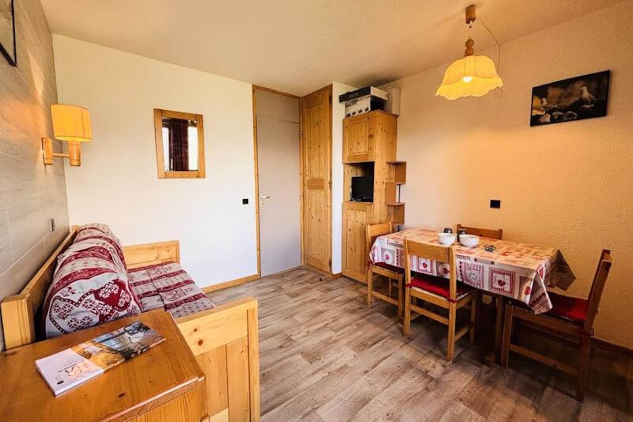 Högt ovanför Tarentaisedalen erbjuder denna charmiga alpina lägenhet en mysig tillflyktsort med hisnande utsikt över Mont Blanc. Belägen på fjärde våningen i La Pendule-residenset är det den perfekta platsen för dig som söker en lugn bergsflykt med enkel tillgång till backarna och det pulserande hjärtat av Les Coches. Tänk dig att vakna upp till Alpernas fridfulla skönhet, smutta på ditt morgonkaffe på den norrvända balkongen och planera din dag med äventyr i skidområdet Paradiski. Lägenheten på 27 m² rymmer bekvämt upp till fem gäster, vilket gör den idealisk för familjer eller små grupper. Vardagsrummet har en enkelsäng, en utdragssäng och en TV, medan det separata sovrummet har våningssängar och en extra utdragssäng. Pentryt är fullt utrustat med moderna apparater, inklusive mikrovågsugn, ugn, keramikhäll och till och med en raclettegrill för en äkta savoyardsk matupplevelse. Ett badrum, separat toalett och skidförvaring bidrar till bekvämligheten, medan täcken och mysiga möbler säkerställer en varm och inbjudande atmosfär. Observera att lägenheten är rökfri och husdjur är välkomna mot en liten avgift. La Pendule Residence har ett perfekt läge, bara 100 meter från skidbackarna och 250 meter från butikerna och bekvämligheterna i semesterorten. Observatoire-området, känt för sin fridfulla atmosfär, erbjuder fantastisk panoramautsikt över Mont Blanc och den omgivande dalen. En kort gångstig förbinder dig med det livliga semesterortscentrumet på mindre än fem minuter, där du hittar allt från skiduthyrning till afterski-upplevelser. Oavsett om du är här för att karva dig genom orörd snö på vintern eller utforska natursköna vandringsleder på sommaren, erbjuder denna lägenhet den perfekta basen för dina alpina äventyr. Med sitt oslagbara läge, charmiga inslag och imponerande utsikt är det en plats där oförglömliga minnen skapas.