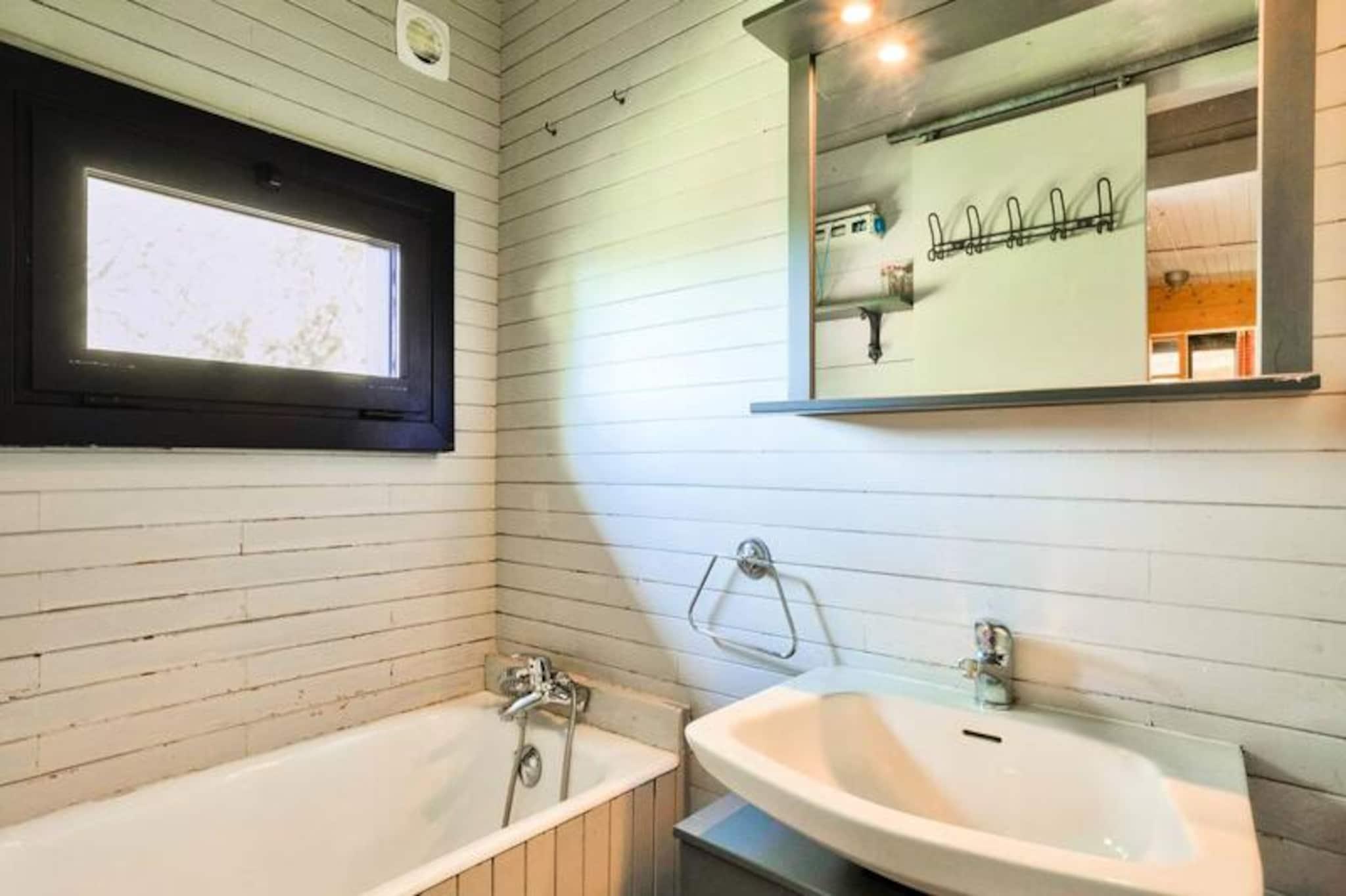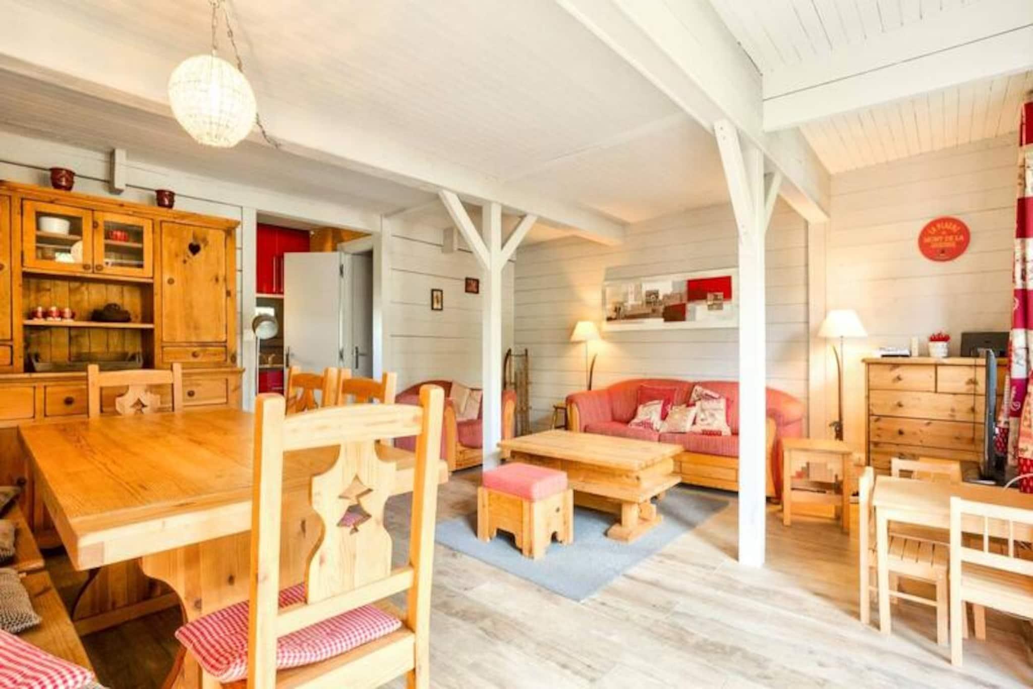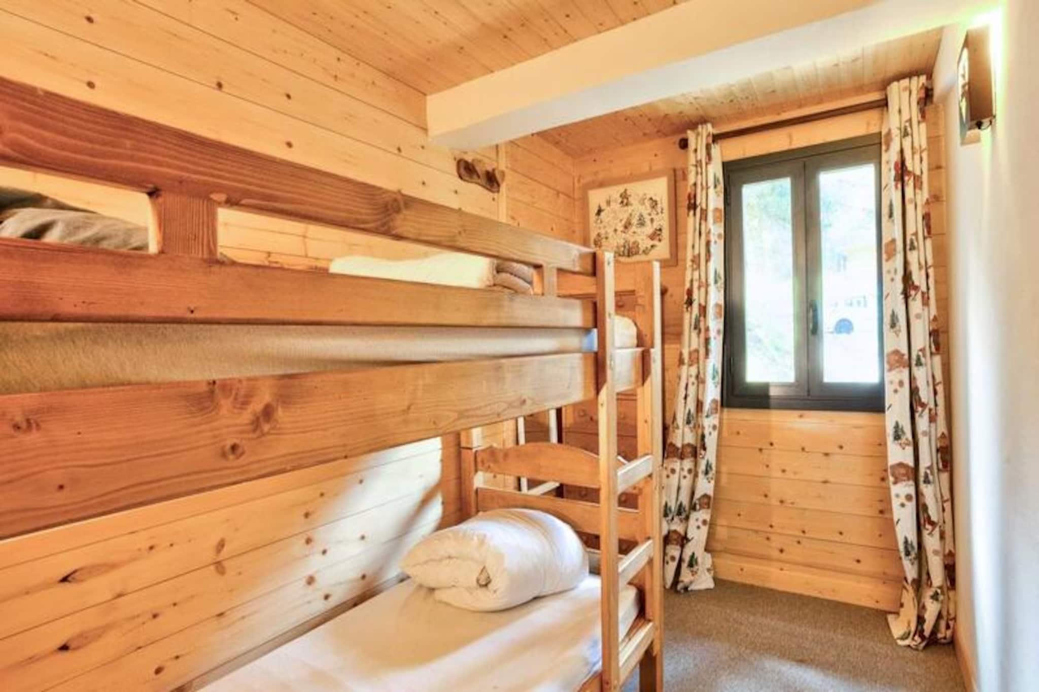 Mitt i en fridfull lärkskog erbjuder denna förtjusande stuga en lugn oas i bergen, bara 5 minuters promenad eller ski-out till Funiplagne-linbanan, som förbinder dig med den hisnande Grande Rochette-toppen och det pulserande hjärtat av Plagne Centre. Här hittar du en mängd olika butiker, restauranger och den berömda ESF-skidskolan, vilket säkerställer att allt du behöver finns inom räckhåll samtidigt som du njuter av naturens lugn. Stugans idylliska läge ger den perfekta balansen mellan avskildhet och tillgänglighet för en oförglömlig alpin semester. \n\nVackert renoverad och designad för komfort, rymmer denna fristående stuga upp till sex gäster fördelade på två våningar. Den varma och inbjudande interiören ståtar med en bergsinspirerad atmosfär, med ett rymligt vardagsrum med matplats, ett mysigt vardagsrum med storbilds-TV och ett fullt utrustat kök komplett med moderna apparater som induktionshäll, ugn, mikrovågsugn, diskmaskin och till och med en tvättmaskin med torktumlarfunktion. De tre charmiga sovrummen inkluderar ett dubbelrum, ett tvåbäddsrum och ett våningssängrum, vilket gör det idealiskt för familjer eller grupper av vänner. Två separata badrum och två toaletter garanterar bekvämlighet, medan balkongen i söder-/västläge inbjuder dig att njuta av solen och beundra den fantastiska alpina utsikten. \n\nEfter en dag med skidåkning eller utforskande av den pittoreska omgivningen kan du varva ner i stugans bekväma vardagsrum eller utnyttja de närliggande bekvämligheterna. Skidskåp och pjäxtork gör det enkelt att förbereda sig för backarna, medan gratis utomhusparkering och enkel vägåtkomst bidrar till bekvämligheten. Oavsett om du är här för skidåkning i världsklass, natursköna vandringsleder eller bara för att koppla av i den friska bergsluften, erbjuder denna stuga en exceptionell bas för dina äventyr. \n\nVälj denna charmiga tillflyktsort för dess oslagbara läge, mysiga atmosfär och moderna bekvämligheter, och skapa värdefulla minnen i hjärtat av de franska Alperna.