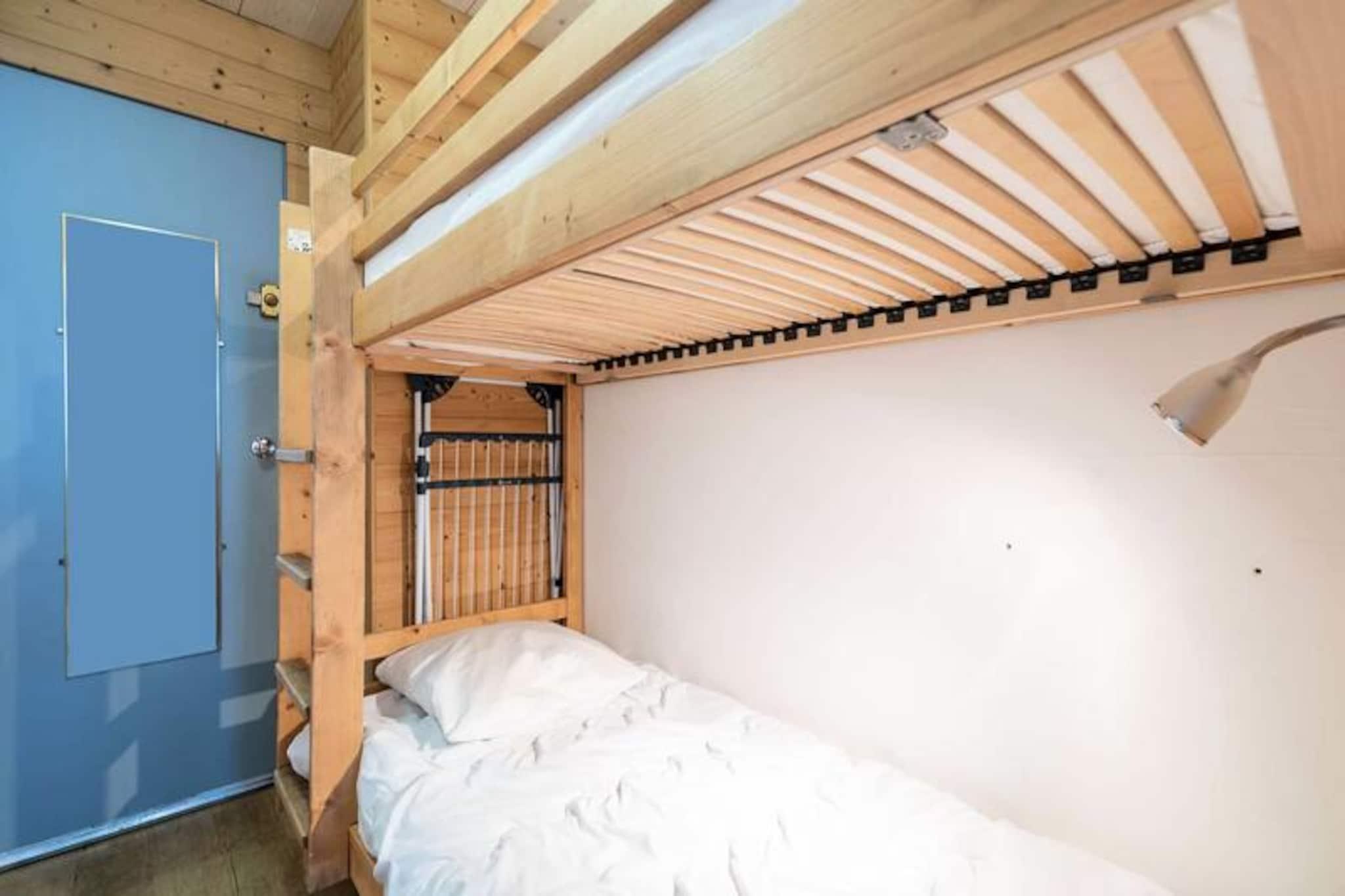 Vakna upp till den hisnande utsikten över de franska Alperna i denna mysiga studiostuga, perfekt belägen i hjärtat av Plagne Centre. Med sitt söderläge och direkta tillgång till backen är denna charmiga oas en fristad för skidentusiaster. Tänk dig att kliva ut genom din dörr och ut på de orörda backarna, med den pulserande shoppingarkaden och bekvämligheterna bara några minuter bort. Oavsett om du söker äventyr eller avkoppling erbjuder denna fastighet det bästa av två världar. \n\nStudion, betygsatt med 2 stjärnor och 4 Paradiski-kristaller, är designad för upp till 4 gäster. Dess smarta planlösning inkluderar ett vardagsrum med matplats, TV och två utdragbara sängar, samt ett stugområde med våningssängar. Det öppna köket är utrustat med keramikhäll, kylskåp, kombinationsugn och diskmaskin, vilket säkerställer att du har allt du behöver för en bekväm vistelse. Badrummet har dusch och toalett, medan de ljusa interiörerna och vinylgolvet skapar en välkomnande atmosfär. Observera att lägenheten är rökfri och husdjursfri, vilket garanterar en ren och lugn miljö.\n\nBelägen på 4:e våningen (nås via hiss) erbjuder boendet ett skidförvaringsskåp och direkt tillgång till backarna, vilket gör det till en idealisk bas för vintersportälskare. Dessutom ligger den livliga shoppinggallerian bara några steg bort, vilket ger bekväm tillgång till restauranger, butiker och afterski-aktiviteter. Under sommarmånaderna förvandlas området till ett paradis för vandrare och mountainbikecyklister, med fantastiska alpina spår och hisnande vyer.\n\nOavsett om du är här för att karva genom snön eller utforska Alpernas naturliga skönhet, lovar denna studiostuga i La Meije Residence en oförglömlig alpin flykt. Boka din vistelse idag och fördjupa dig i bergens magi.