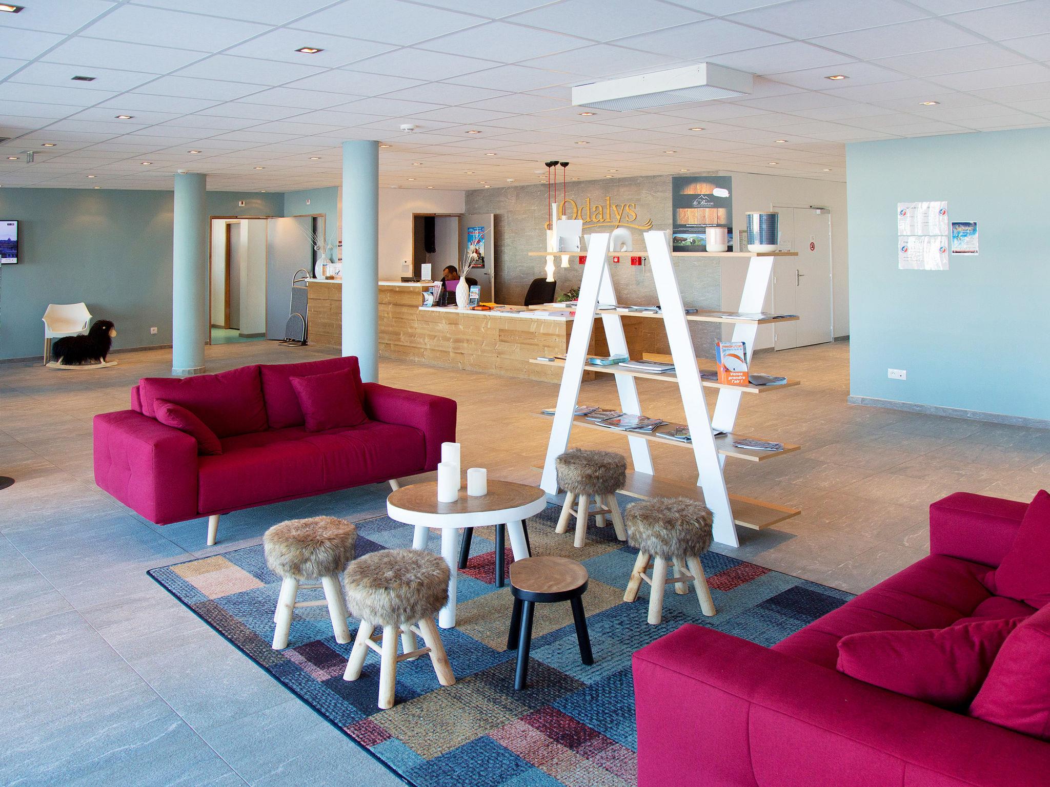 "Odalys Référence Front de Neige", 3-room apartment 54 m2. Modern and tasteful furnishings: living/sleeping room 20 m2 with 2 sleeping facilities, dining table, kitchen corner and satellite TV. 1 room with (2 pers.), 2 sleeping facilities. 1 room with 2 sleeping facilities, kitchen corner and shower. Exit to the balcony. Small, open kitchen (dishwasher, 4 ceramic glass hob hotplates, toaster, kettle, microwave, electric coffee machine). Sep. WC, bath or shower, bath/WC or shower/WC. Electric heating. Balcony or terrace. Facilities: Internet (WiFi, free). Maximum 1 pet/ dog allowed.