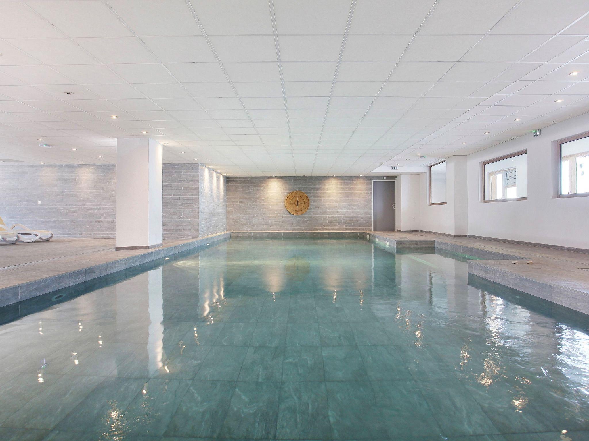 Beautiful, rustic, comfortable residence "Odalys - Front de Neige". 220 apartments in the residence. Below Plagne Villages 1 km from the centre of Plagne Centre, 33 km from the centre of Moûtiers, 60 km from the centre of Albertville, in a sunny position, directly by the skiing area. For shared use: indoor pool heated (15 x 5 m, seasonal availability: 01.Jul. - 31.Aug.). In the complex: reception, lounge, massage (extra). Hot tub, hamam, lift, storage room for skis, central heating system. Bread roll service. Communal covered parking (extra). Dimension: height 230 cm. Shop, grocery, restaurant 100 m, bus stop "Maladière P+R" 10 km. Walking paths from the house, mountain railway, ski lift, slopes, ski rental, ski school 100 m. Well-known ski regions can easily be reached: La Grande-Plagne. Please note: In case of good snow conditions, the house is accessible on skis. The photograph shows a typical example. The holiday properties may differ in living space, floorplan, equipment and furnishing.