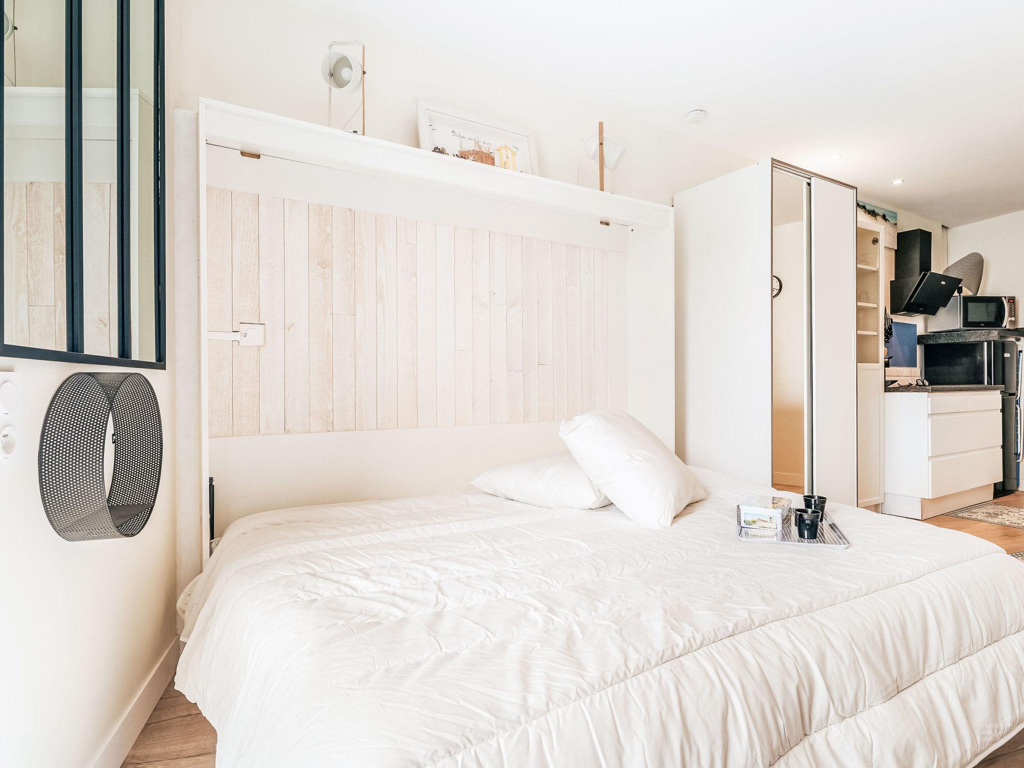 "AZUR ET MER", 1-room studio 23 m2. Comfortable and beautiful furnishings: living/sleeping room with 1 french bed (160 cm, length 190 cm), TV (flat screen). Kitchen (oven, 2 induction hot plates, toaster, kettle, freezer, electric coffee machine). Shower/WC. Electric heating. Facilities: Internet (WiFi, extra). Please note: non-smokers only. Smoke alarm. Offer by a private individual according to Art. 155, IV of CGI.