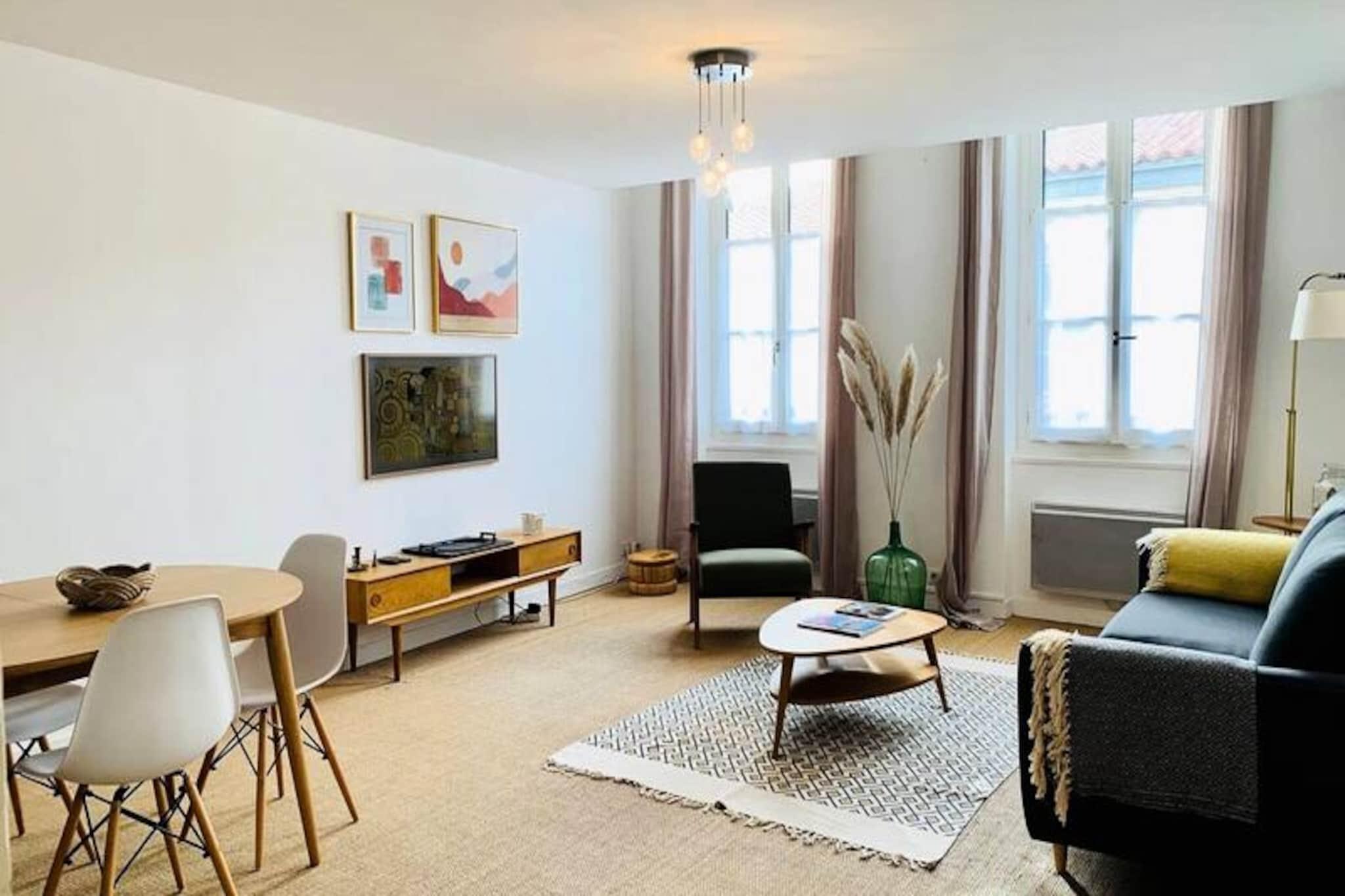 I hjärtat av La Rochelle, där kullerstensgator möter Atlantkustens charm, erbjuder denna rymliga lägenhet på 70 m² en lugn tillflyktsort för familjer eller vänner. Bara några steg från den livliga La Rochelles täckta marknad, kommer du att befinna dig i den livliga rytmen i denna historiska stad, men ändå undangömd i en lugn miljö som garanterar vilsamma nätter och lugna morgnar. Lägenhetens centrala läge gör den till den perfekta basen för att utforska stadens skatter, från den ikoniska Vieux Port till den gyllene sanden på Concurrence Beach. Inuti är lägenheten utformad med både komfort och praktiskhet i åtanke. Två generöst tilltagna sovrum, separerade av ett badrum med badkar och en separat toalett, ger avskildhet och avkoppling för upp till fyra gäster. Vardagsrummet med öppen planlösning har en mysig soffa, TV och Wi-Fi, sömlöst anslutet till ett fullt utrustat kök med moderna apparater som kylskåp, ugn, mikrovågsugn och diskmaskin. Oavsett om du förbereder en färsk fisk- och skaldjursfest eller njuter av en lugn kväll med ett glas vin, är detta utrymme perfekt för att skapa minnesvärda stunder. Ytterligare bekvämligheter inkluderar en tvättmaskin, vilket garanterar en stressfri vistelse. När du går ut är du bara en kort promenad från La Rochelles mest älskade sevärdheter. Promenera till Mercato Centrale på två minuter för att prova lokala delikatesser, eller vandra till Vieux Port och La Rochelle Parks, båda bara tio minuter bort. För strandälskare ligger Concurrence Beach en lugn 15-minuterspromenad, medan det berömda akvariet och tågstationen ligger inom 20 minuter. För de som vågar sig längre ligger den pittoreska Ile de Ré bara 20 minuters bilresa bort. Parkeringsmöjligheter, både avgiftsbelagda och gratis, finns bekvämt belägna inom gångavstånd. Med sitt oslagbara läge, omtänksamma bekvämligheter och det engagerade stödet från Aloha Concierge-teamet, lovar denna lägenhet en oförglömlig vistelse i hjärtat av La Rochelle. Oavsett om du är här för att utforska, koppla av eller njuta av stadens kulinariska läckerheter, är detta ditt perfekta hem hemifrån.
