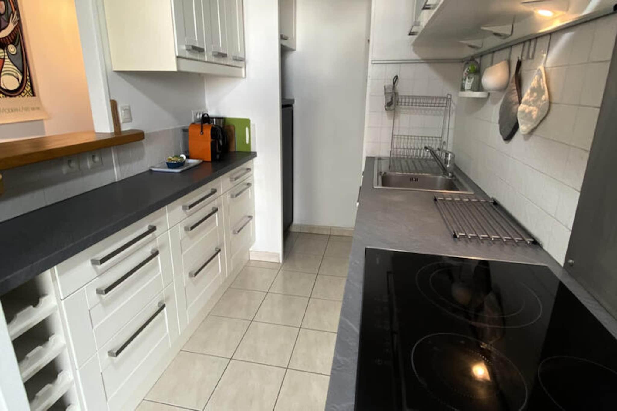 Kliv in i en lugn kustnära oas i hjärtat av La Rochelle, där denna charmiga lägenhet erbjuder en perfekt blandning av modern komfort och lugn vid havet. Med sina ljusa interiörer och utsikt över trädgården inbjuder detta 68 m² stora boende dig att varva ner och njuta av den avslappnade livsstilen vid Atlantkusten. Oavsett om du planerar en familjesemester eller en fridfull flykt med vänner, lovar denna fastighet en minnesvärd vistelse för upp till fem gäster. Lägenheten har två mysiga sovrum och ett omsorgsfullt utformat kök med öppen planlösning utrustat med allt du behöver, från kylskåp och diskmaskin till kaffebryggare och brödrost. Boytan förstärks av moderna bekvämligheter som Wi-Fi, TV och DVD-spelare, vilket garanterar både komfort och underhållning. Gå ut på terrassen för att njuta av den friska havsbrisen, eller dra nytta av trädgårdsmöblerna för en lugn stund utomhus. Ytterligare bekvämligheter som tvättmaskin, strykjärn och garage gör detta hem hemifrån lika praktiskt som det är inbjudande. Idealiskt beläget bara 1 km från en sandstrand och en naturpark, är lägenheten perfekt för dig som älskar att utforska naturen. Den pulserande stadskärnan, med sina charmiga gator och livliga marknader, ligger bara 2 km bort, medan närliggande restauranger och stormarknader säkerställer att du har allt du behöver inom räckhåll. För de som anländer med tåg ligger stationen bekvämt belägen bara 2 km från boendet. Oavsett om du promenerar längs den pittoreska kusten, njuter av färska skaldjur på en lokal restaurang eller bara kopplar av på terrassen med en god bok, erbjuder denna lägenhet i La Rochelle en idyllisk miljö för ditt nästa kustäventyr. Boka din vistelse idag och upplev charmen hos denna familjevänliga kustdestination.