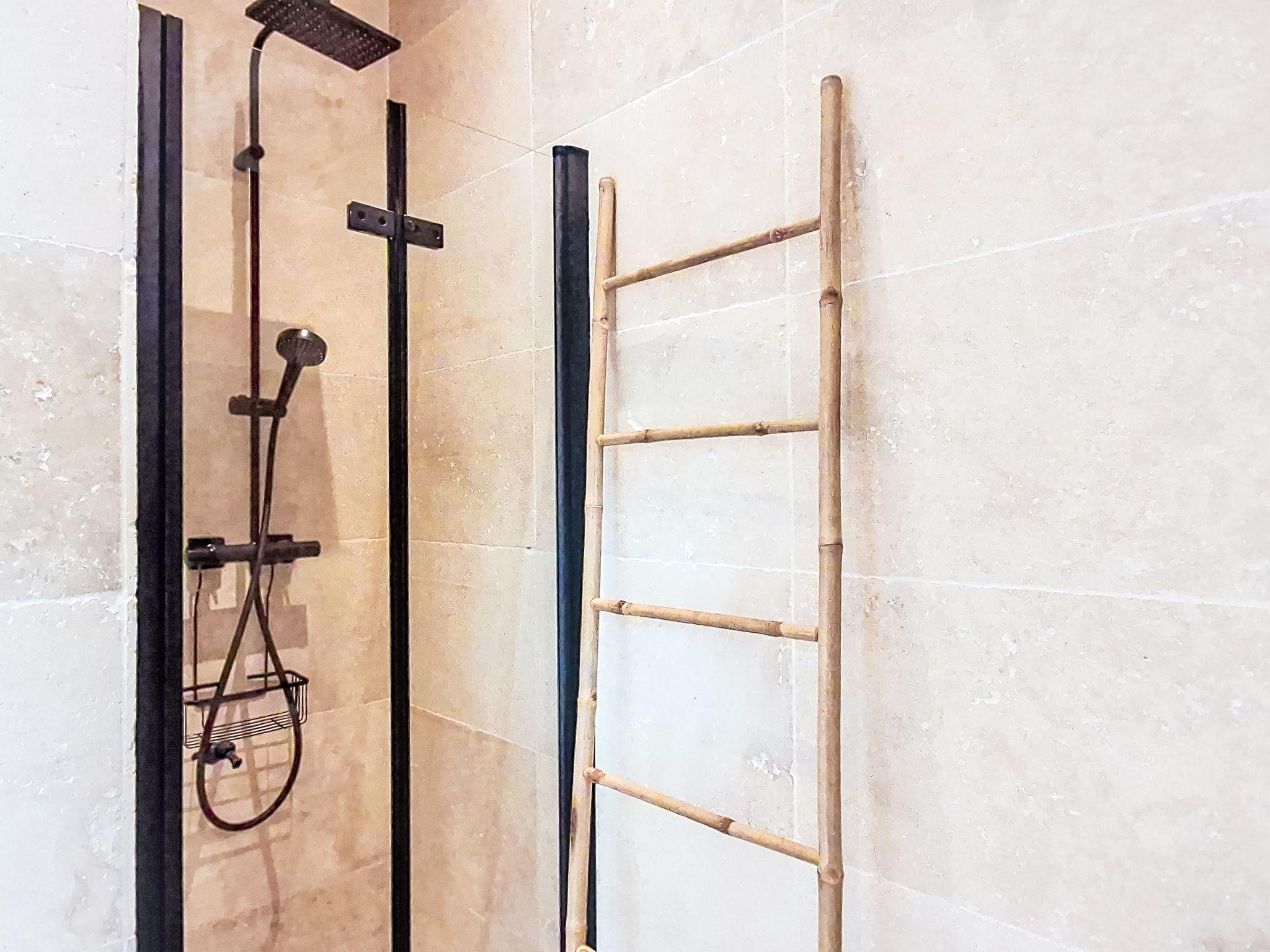 2-room apartment 30 m2, on the ground floor. Comfortable and modern furnishings: living/dining room with TV (flat screen). Exit to the garden. 1 room with 1 french bed (140 cm, length 190 cm). Kitchen (oven, dishwasher, 1 induction hot plates, 4 gas rings, toaster, kettle, microwave, freezer, electric coffee machine, Capsules for coffee machine (NESPRESSO) extra) with dining nook. Shower/WC. Electric heating. Large terrace 70 m2, south facing position and west facing position, small patio 60 m2. Terrace furniture. Facilities: washing machine. Internet (WiFi, extra). Parking (2 cars). Please note: TV only FR. Smoke alarm. Offer by a private individual according to Art. 155, IV of CGI.
