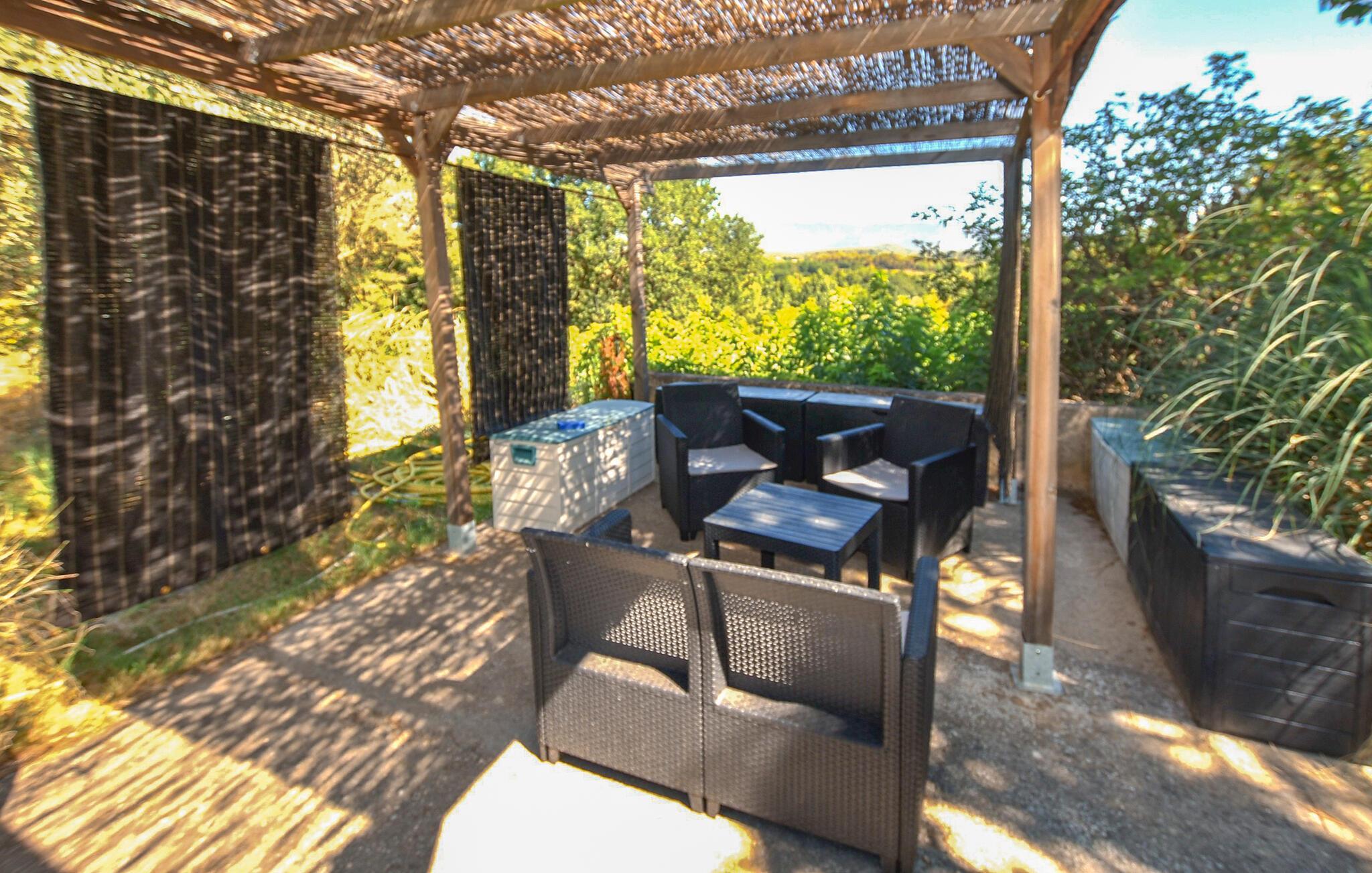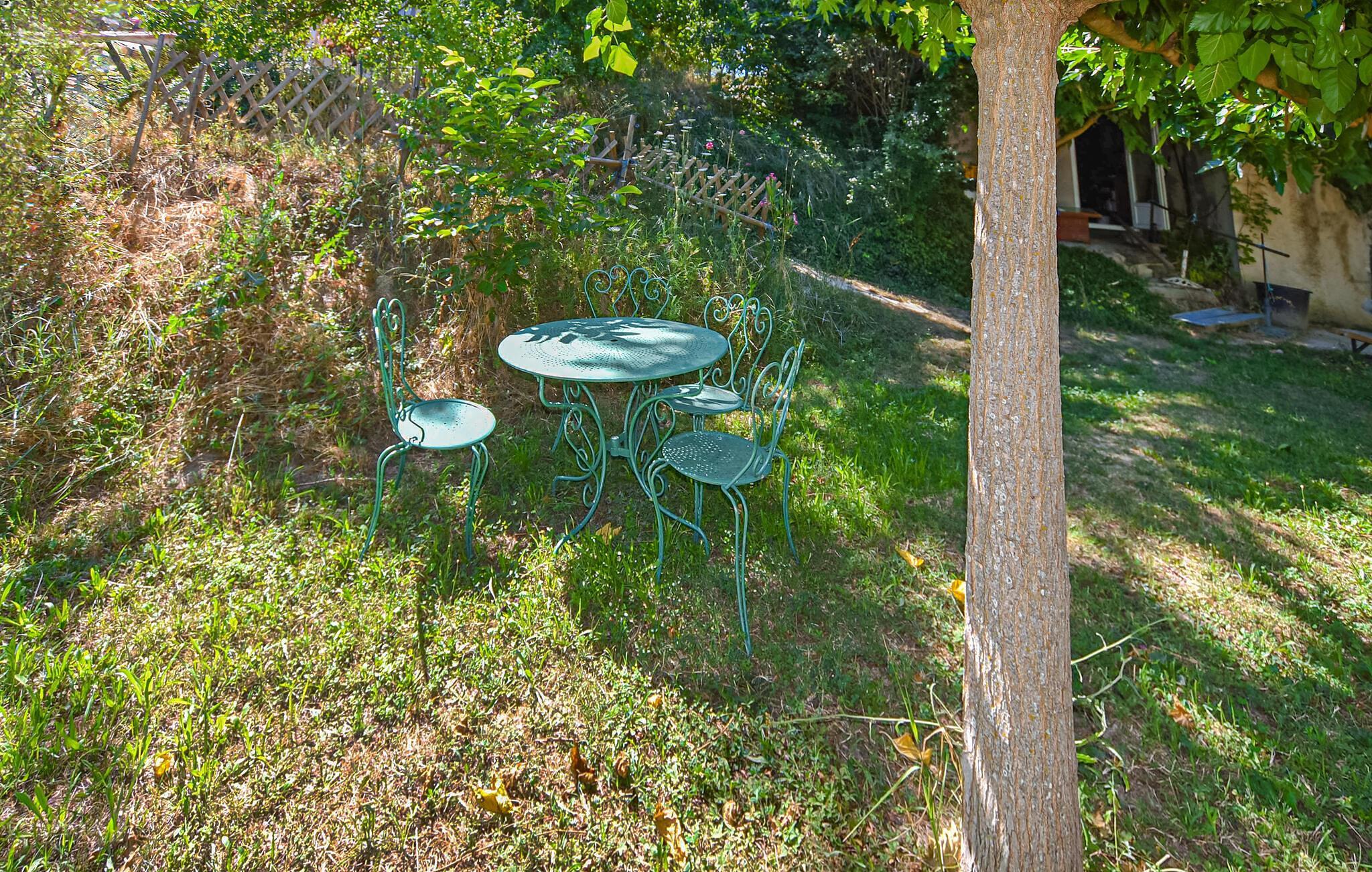 Den inhägnade trädgården erbjuder mysiga platser för middagar, samtal och avkoppling i skuggan. Du kan svalka dig i den vackra gemensamma poolen, umgås på boulebanan och se fram emot stämningsfulla kvällar runt grillen.
