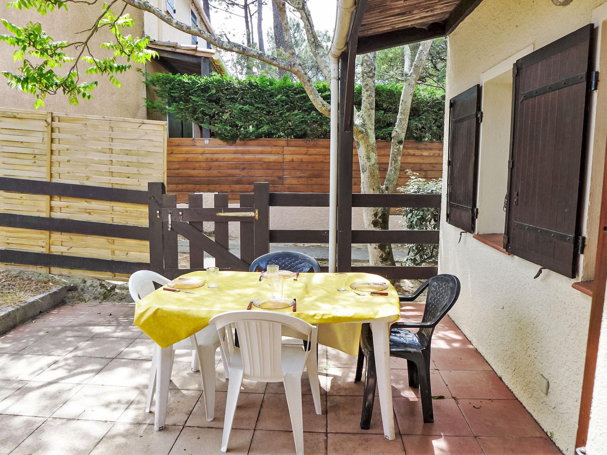 Residence "Les Palombes". On the outskirts, 2 km from the centre, 2 km from the sea, 2 km from the beach, in the woods. For shared use: swimming pool (12 x 8 m, depth 100 - 180 cm, seasonal availability: 15.Jun. - 15.Sep.). Shop 2 km, supermarket 2 km, bus stop "Marie Curie" 850 m. Golf course (18 hole) 3 km, tennis 1 km, riding stable 15 km.