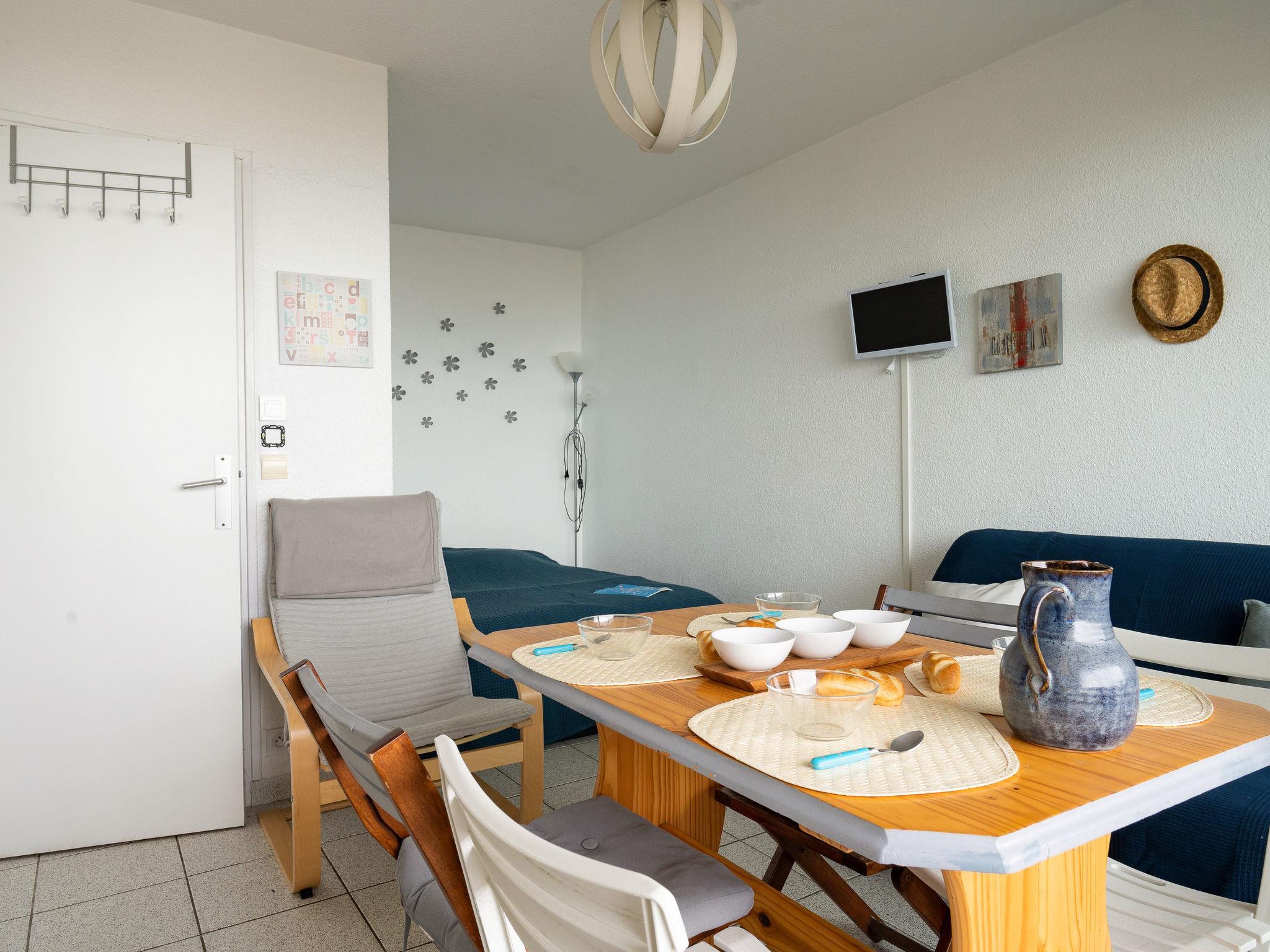 1-room studio 20 m2 on 1st floor. Living/dining room with TV (flat screen). Exit to the balcony. Alcove with 1 french bed (140 cm, length 190 cm). Kitchen (4 hot plates, oven, toaster, kettle, microwave, electric coffee machine, Capsules for coffee machine (Senseo)). Shower/WC. Heating. Balcony 3 m2, west facing position. Balcony furniture, deck chairs (1). Marvellous view of the ocean. Facilities: washing machine. Internet (WiFi, extra). Parking space n 71. Please note: non-smokers only. Smoke alarm. Instead of an enclosed bedroom, some sleeping areas are located in an open-plan area (gallery, alcove, etc.). Offer by a private individual according to Art. 155, IV of CGI.