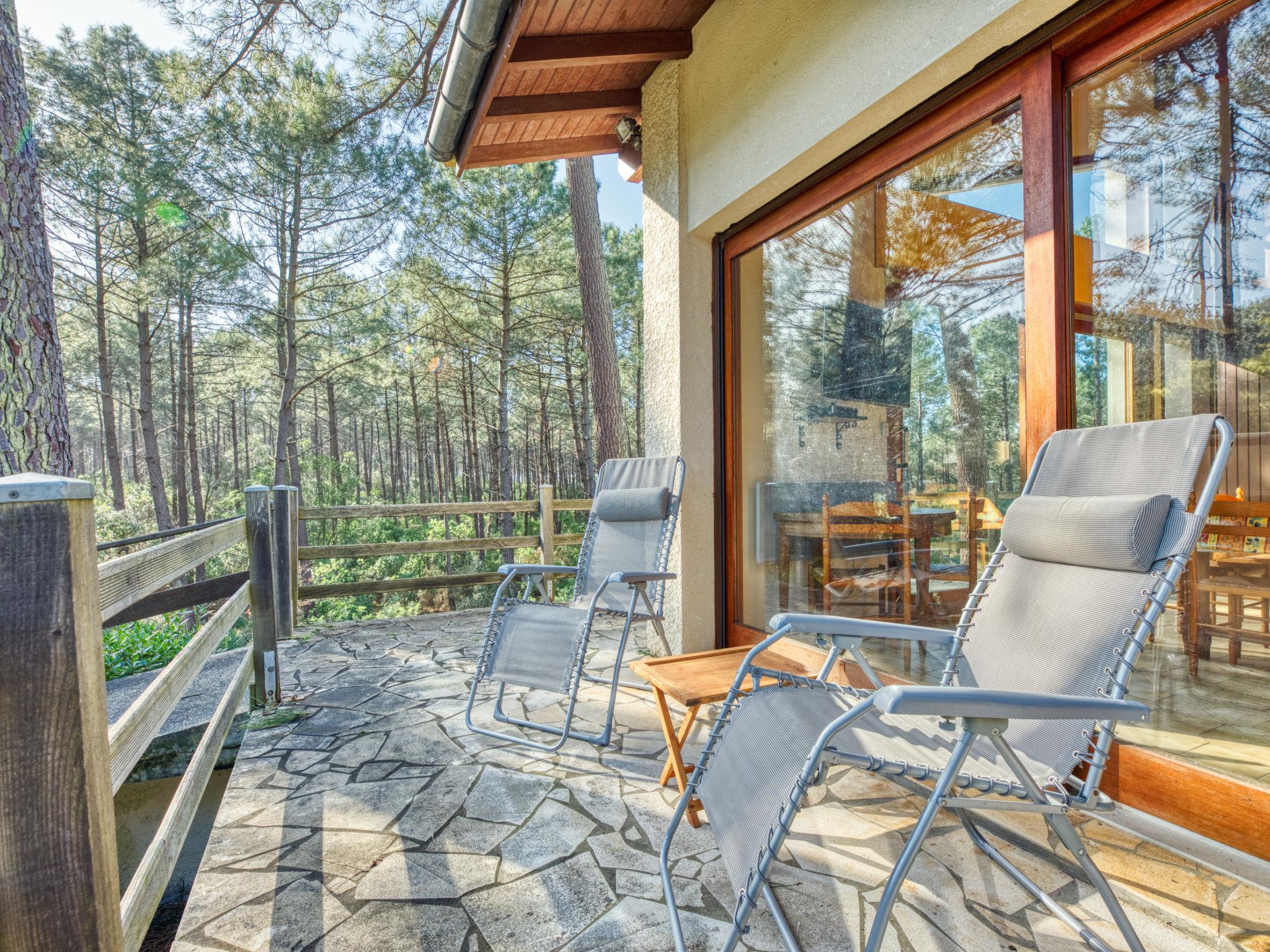 Single-family house "Le Hameau du Point du Jour". 8 km from the centre of Lacanau-Océan, 9.5 km from the centre of Lacanau-Ville, 55 km from the centre of Bordeaux, 8 km from the sea, 1.2 km from the lake, 8 km from the beach, in a cul-de-sac. Private: natural state property 1'000 m2 (fenced) with trees, parking at the house on the premises, single garage. Shop 2.5 km, supermarket 9.5 km, restaurant 2.5 km, bus stop "le Moutchic" 2.5 km, sandy beach "Lacanau-Océan" 8 km, bathing lake "Étang de Lacanau" 1.2 km. Golf course (18 hole) 5 km, tennis 5.5 km.