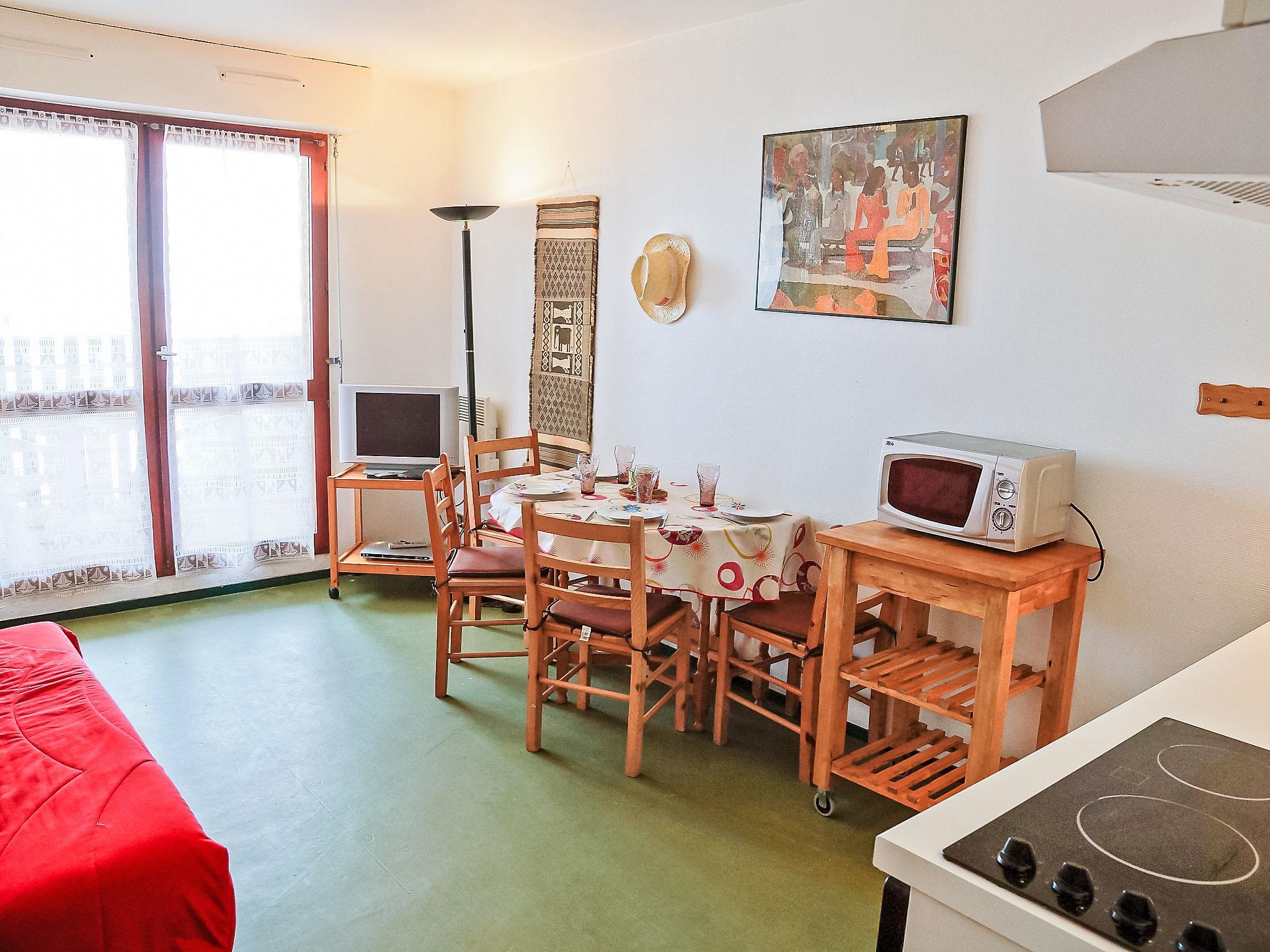 2-room apartment 30 m2 on 1st floor. Living/dining room with 1 double sofabed (140 cm), TV. 1 room with 1 pull-out bed (2 pers.). Kitchenette (oven, 4 ceramic glass hob hotplates, microwave). Bathroom, sep. WC. Heating. Balcony, north-west facing position. Terrace furniture. View of the sea. Facilities: Internet (WiFi, extra). Parking space n 16. Please note: non-smokers only. Maximum 1 pet/ dog allowed. Smoke alarm.