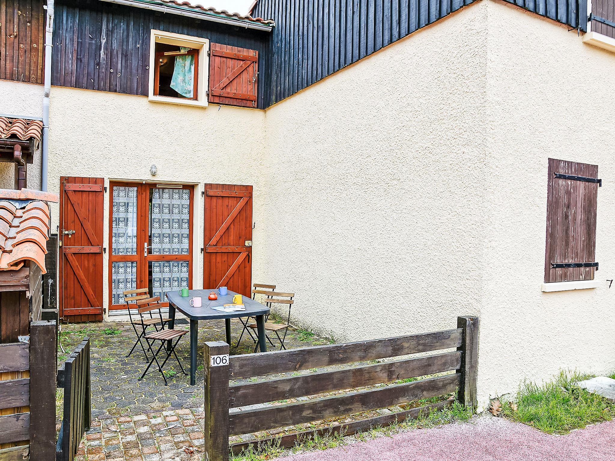 3-room terraced house 40 m2 on 2 levels. Beautiful furnishings: living/dining room with 1 double sofabed and TV (flat screen). Exit to the terrace. Kitchen (2 hot plates, oven, dishwasher, kettle, electric coffee machine). Upper floor: 1 room with 1 x 1 bunk beds (90 cm, length 190 cm), 1 double bed (140 cm, length 190 cm). 1 room with 1 french bed (140 cm, length 190 cm). Shower/WC. Electric heating. Terrace 25 m2. Terrace furniture. Facilities: washing machine. Internet (WiFi, extra). Parking. Please note: non-smokers only. Smoke alarm.