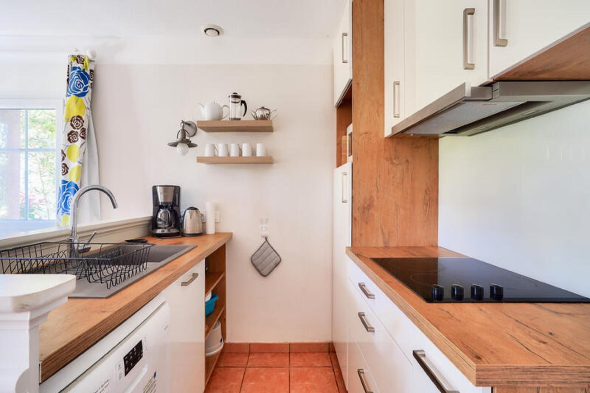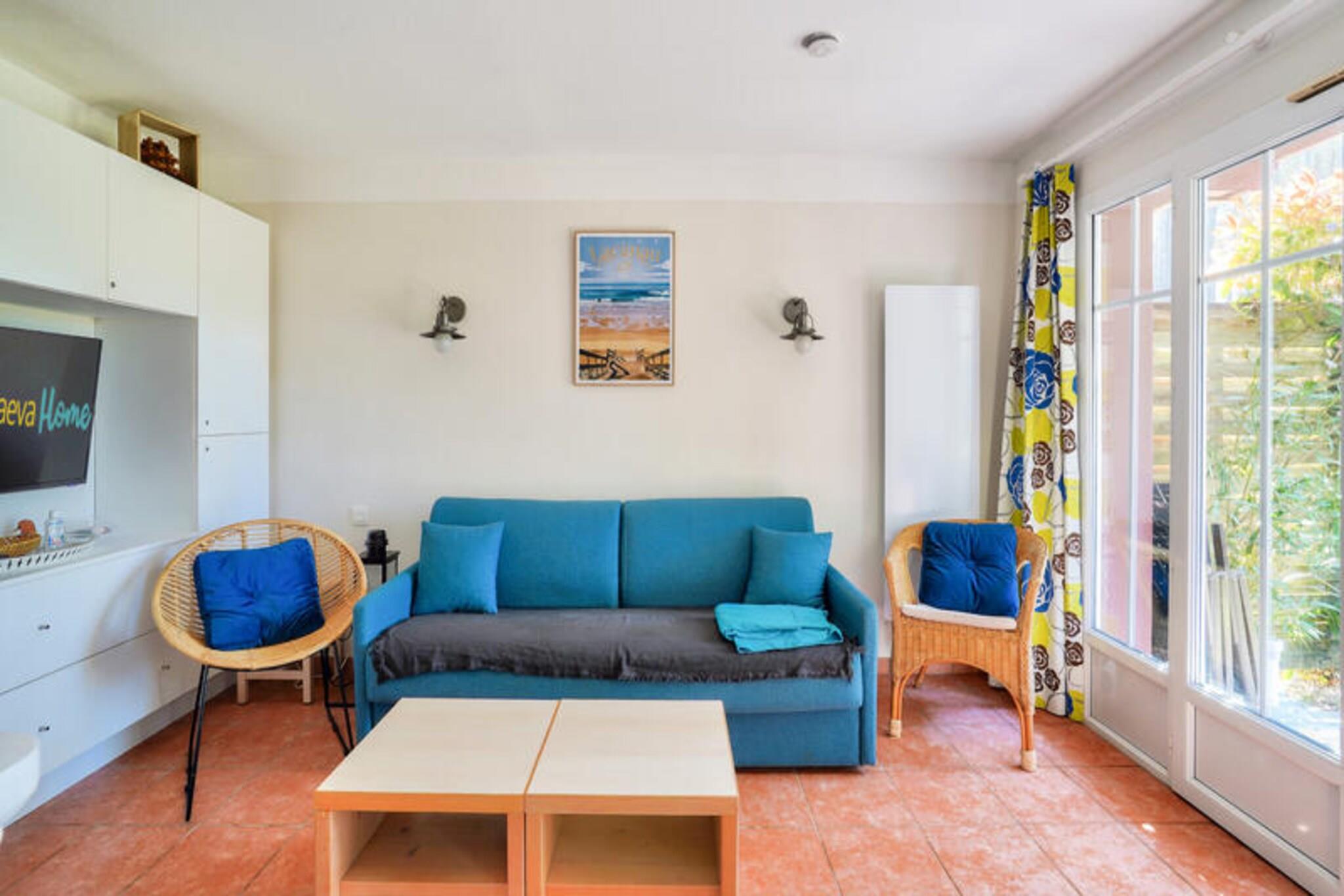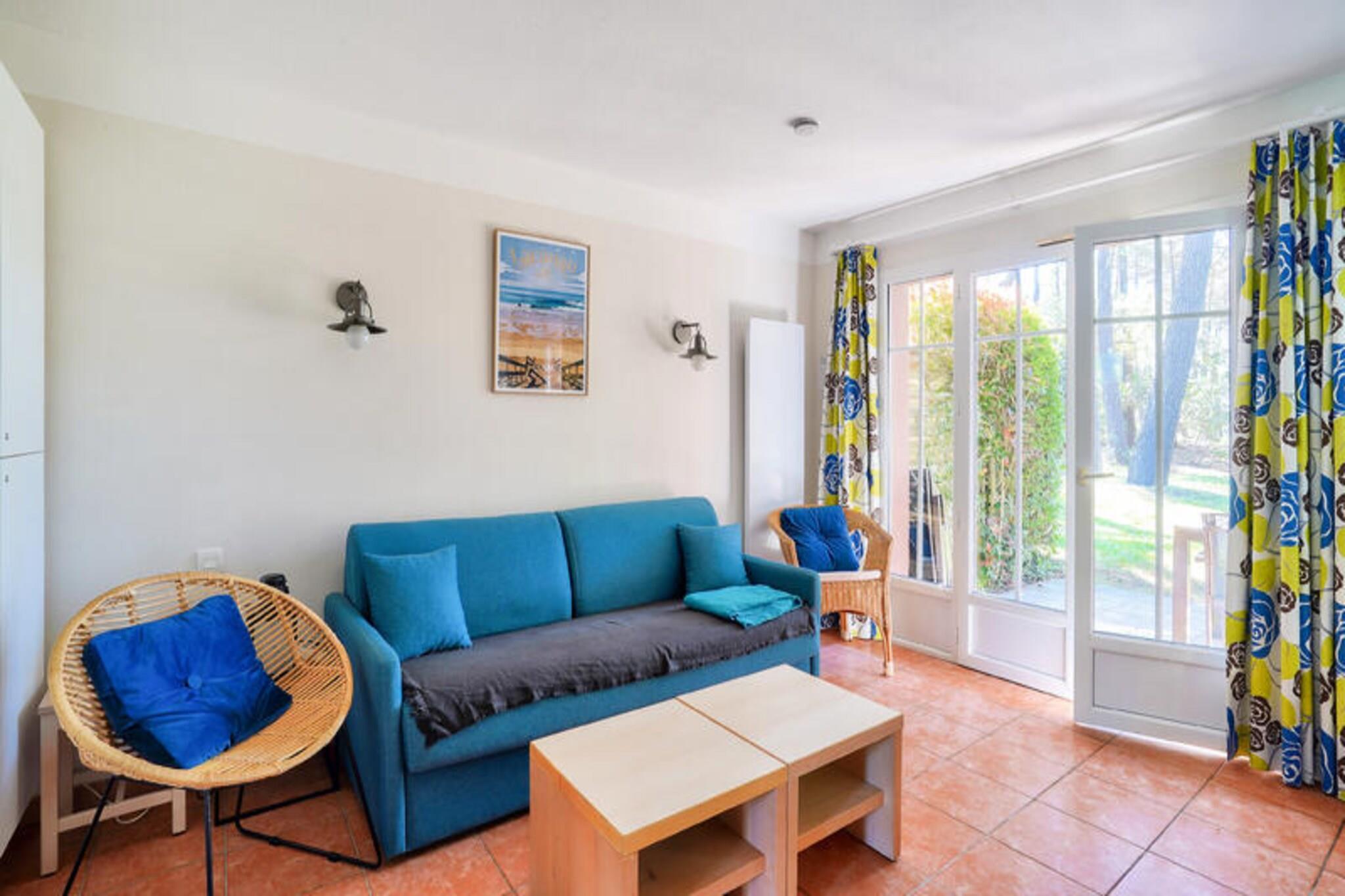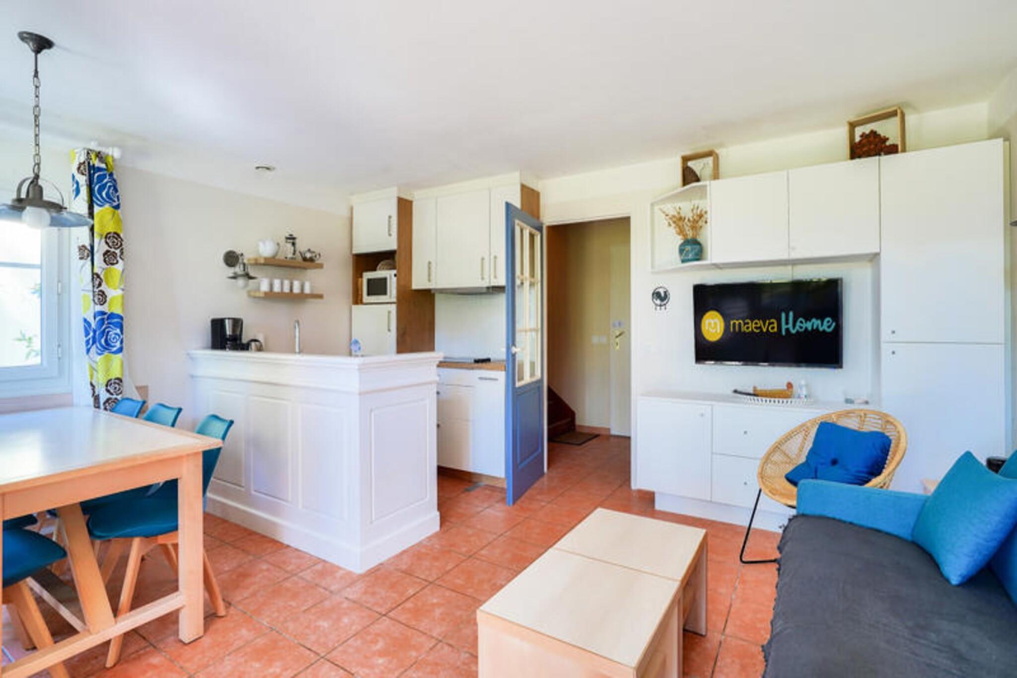 Detta rymliga semesterhus rymmer upp till 6 personer och har ett vardagsrum med en bäddsoffa för 2 personer, en fåtölj och en matplats med bord och 6 stolar. De två sovrummen inkluderar ett med dubbelsäng och det andra med två enkelsängar. Dessutom ger en kabindel med två enkla våningssängar extra sovutrymme. Fastigheten är husdjursvänlig och tillåter husdjur med förhandsgodkännande. Huset har två badrum, ett med dusch och toalett och ett med badkar och separat toalett. Detta semesterhus ligger i en 4,6 hektar stor tallskog, bara 2 km från stränderna och omges av två golfbanor. Det är den perfekta platsen att njuta av regionens naturliga skönhet samtidigt som du är nära lokala attraktioner. Gästerna kan dra nytta av fri tillgång till byklubbens pool och njuta av utomhusaktiviteter som beachvolleyboll, multisportbanor och boule. Området är också perfekt för cykling, med cykeluthyrning via Bicy'cool, och olika klasser inklusive yoga och simning erbjuds i närheten. Boendet har ett kök i öppen planlösning med modern utrustning, inklusive spis, kylskåp och mikrovågsugn. Huset är designat med en trädgård och en privat terrass, och erbjuder en avkopplande uteplats med ett bord, 6 stolar och 2 solstolar. Gästerna kan också njuta av fri tillgång till utomhusparkering inom residenset. Huset erbjuder en lugn oas med enkel tillgång till alla bekvämligheter och aktiviteter inom området.
