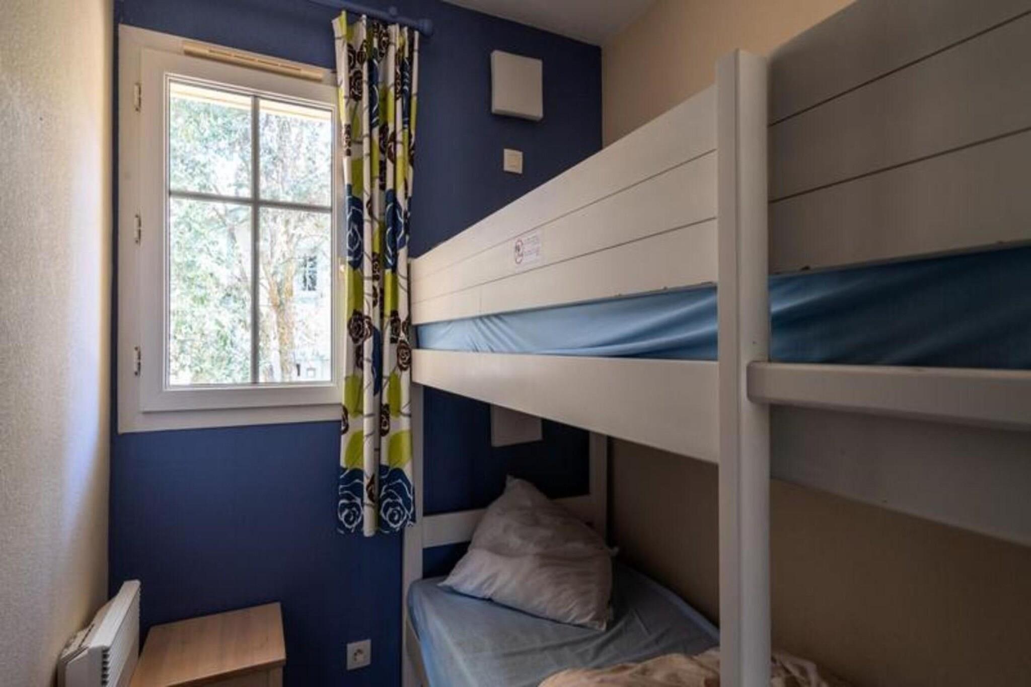 Dessa privata fritidshus, inbäddade i den fridfulla tallskogen La Résidence Lacanau Les Pins, erbjuder en charmig tillflyktsort för familjer eller små grupper. De 54 m² stora husen är designade i typisk Landes-stil med färgglada pastelltoner och rymmer bekvämt upp till 6 gäster. Bottenvåningen har ett vardagsrum med en bäddsoffa, ett halvöppet kök och en matplats med plats för 6 personer. På övervåningen finns två sovrum – ett med dubbelsäng och det andra med två enkelsängar – plus en stuga område med våningssängar, vilket gör den idealisk för barn. Boendet är inte husdjursvänligt, vilket garanterar en lugn vistelse för alla gäster. Ett separat badrum med badkar-dusch, ett andra duschrum med WC och en extra separat toalett garanterar bekvämlighet för alla. Denna plats ligger bara 2 kilometer från stranden och erbjuder utomhusaktiviteter för alla åldrar, inklusive två golfbanor, en pool, volleyboll, multisport och boulebanor. Cykelvägar längs kusten och Lacanaus surfstränder finns i närheten. Gästerna kan också hyra cyklar eller delta i yoga- och simlektioner. Detta hus har ett fullt utrustat halvöppet kök, en vardagsrumsdel och en privat trädgård med terrass. Gratis utomhusparkering finns tillgänglig, med ytterligare bekvämligheter som Wi-Fi, sängkläder, handdukar och slutstädning mot en extra kostnad. Gästerna har också fri tillgång till vattenområdet och rabatter på det närliggande spaet Vital Parc.