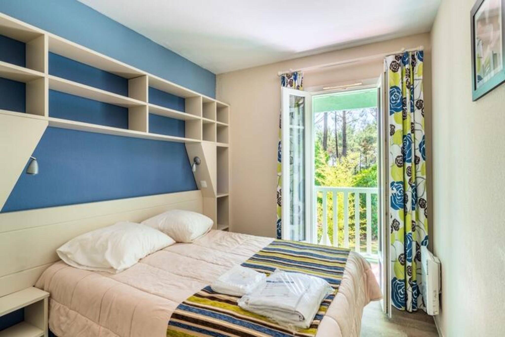 Detta semesterhus på 50 m² ligger i en lugn skogsmiljö och erbjuder två sovrum, en stuga och två badrum, vilket gör det perfekt för upp till sex gäster. Det första sovrummet har en dubbelsäng, det andra har två enkelsängar och kabinen har två våningssängar. En bäddsoffa i vardagsrummet ger extra sovutrymme. Fastigheten är husdjursfri, vilket garanterar en lugn miljö och erbjuder en privat terrass och trädgård i sydvästläge, perfekt för att njuta av de fridfulla omgivningarna. Gratis utomhusparkering finns tillgänglig, och du har tillgång till poolen i boendet. Beläget bara 2 km från stranden, är semesterhuset omgivet av lummiga tallskogar och två golfbanor. Området är perfekt för att cykla längs stranden eller utforska de närliggande sanddynerna. Gästerna kan njuta av en mängd olika utomhusaktiviteter, inklusive vattensporter på resortens nautiska bas, samt yoga- och simlektioner. Den livliga stadskärnan, med sina butiker och restauranger, ligger bara en kort bit bort, och den berömda Puy du Fou Park ligger inom 1,5 timmes bilresa för en dagsutflykt. Boendet har ett kök i amerikansk stil, fullt utrustat för självhushåll, och ett rymligt vardagsrum med ett matbord. Huset har också två badrum och en separat toalett för bekvämlighet. Gästerna kan njuta av poolen, som är tillgänglig från juni till september, och den närliggande multisportbanan, beachvolleyplanen och lekplatsen för barn.
