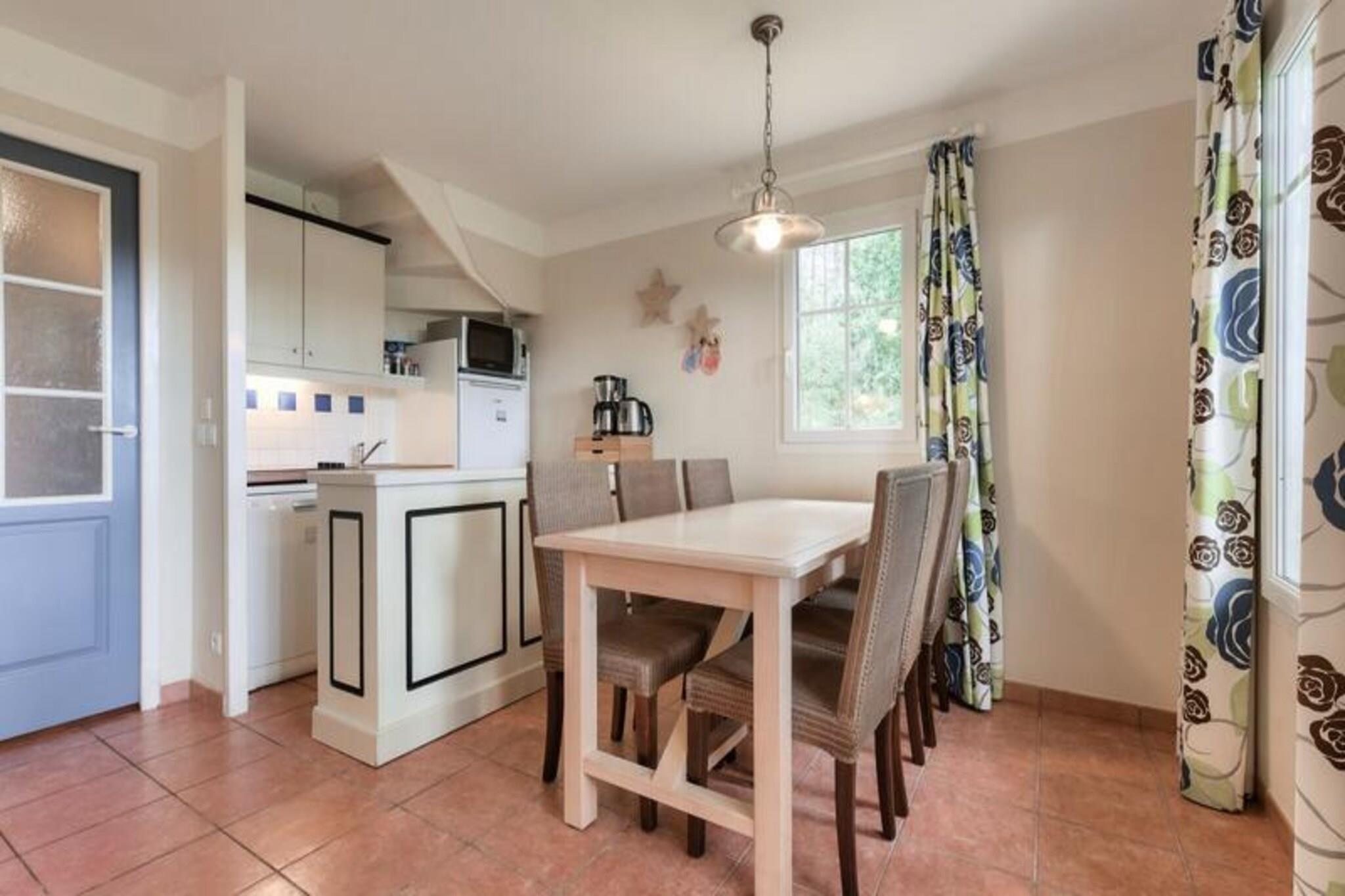 Detta rymliga semesterhus, beläget i en pittoresk 5 hektar stor tallskog, är perfekt för en familjesemester. Med en kapacitet för upp till 8 personer, erbjuder den två bekväma sovrum, en stuga med våningssängar och två badrum. Det stora sovrummet har en dubbelsäng, medan det andra sovrummet har två enkelsängar. Vardagsrummet har en bäddsoffa, och huset har även en privat trädgård, terrass med utsikt över golfbanan och gratis utomhusparkering. Denna fastighet ligger bara 2 km från stranden och är ett paradis för friluftsentusiaster. Det omgivande området erbjuder olika aktiviteter som cykling, surfing och vattensporter. Den närliggande naturbasen François Léotard är perfekt för naturvandringar, och det finns två golfbanor i närheten för golfälskare. En rad tilläggstjänster, inklusive cykeluthyrning och yogaklasser, är tillgängliga, vilket gör den idealisk för en mängd olika intressen. Huset är utrustat med ett fullt fungerande amerikanskt kök, ett rymligt vardagsrum och två välskötta badrum - ett med badkar och det andra med dusch. För avkoppling kan gästerna njuta av den stora poolen och plaskpoolen, som är öppen från maj till september. Andra bekvämligheter inkluderar en terrass med sittplatser, en trädgård och enkel tillgång till olika lokala attraktioner.