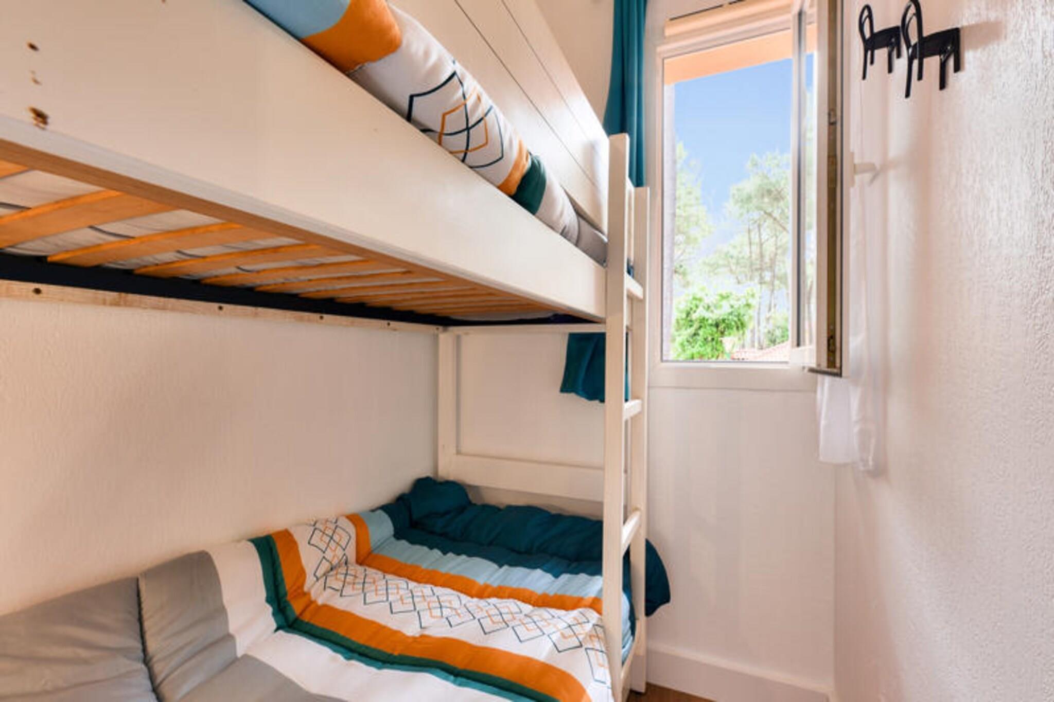 Denna charmiga l?genhet, bel?gen i hj?rtat av en 5 hektar stor tallskog, ?r perfekt f?r familjer eller grupper, med plats f?r upp till 4 personer. Fastigheten erbjuder ett mysigt sovrum med dubbels?ng, en hyttdel med v?ningss?ngar och ett vardagsrum med b?ddsoffa. Husdjur ?r till?tna mot en extra avgift, och gratis utomhusparkering finns tillg?nglig. S?ngkl?der och handdukar finns tillg?ngliga mot en extra kostnad, och Wi-Fi erbjuds mot en avgift. En obligatorisk avgift f?r slutst?dning kr?vs ocks?. G?sterna kan njuta av en m?ngd olika aktiviteter, med stranden bara 2 km bort och tv? golfbanor i n?rheten. Omr?det ?r ett paradis f?r cykelentusiaster, med l?nga str?nder och m?nga stigar. Njut av bekv?mligheterna p? plats, inklusive en 400 m² stor pool, plaskdamm, multisportf?lt och tennisbanor. F?r extra avkoppling kan du dra nytta av rabatter p? ett lokalt spa. Det omgivande omr?det erbjuder ocks? restauranger, kaf?er och cykelv?gar, perfekta f?r att utforska regionens naturliga sk?nhet. L?genheten ?r utrustad med ett halv?ppet k?k, ett rymligt badrum med dusch och en separat toalett. En terrass med utsikt ?ver skogen erbjuder en lugn milj?, och boendet har ?ven en elektrisk handdukstork och en h?rtork. Residenset erbjuder en m?ngd olika rekreationsfaciliteter, vilket g?r det till en idealisk plats f?r en avkopplande semester.
