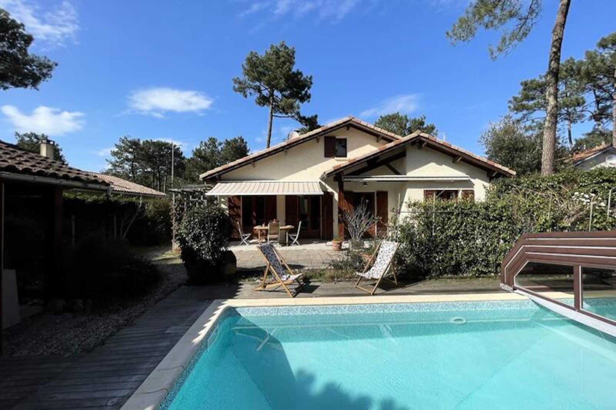 I det lugna södra distriktet Lacanau Océan erbjuder denna vackert renoverade villa en fridfull tillflykt omgiven av frodiga landskap och kustlivets mjuka rytm. Med sin privata pool som glittrar i solen och en terrass i söderläge som är perfekt för avkoppling, inbjuder denna fastighet dig att omfamna avkoppling och utomhusliv i en av Frankrikes mest eftertraktade kustdestinationer. Oavsett om du smuttar på kaffe under de elektriska markiserna eller tar ett uppfriskande dopp i poolen, känns varje ögonblick här som en reträtt i lugnet. \n\nInuti kombinerar villan modern komfort med tidlös charm. Vardagsrummet och matsalen i öppen planlösning, badande i naturligt ljus, ansluter sömlöst till terrassen och trädgården genom eleganta franska dörrar. Det separata köket är fullt utrustat för att tillaga lokala delikatesser. Tre omsorgsfullt utformade sovrum garanterar vilsamma nätter: en master suite med en queen size-säng, eget duschrum och egen toalett; ett sovrum på övervåningen med en queen size-säng, eget badrum och toalett; och ett mysigt tredje sovrum med en dubbelsäng och eget badrum. Med parkering tillgänglig och husdjursvänligt boende tillgodoser denna villa alla dina behov. \n\nBara 500 meter från stranden och surfskolor, och 600 meter från butiker och restauranger, är läget idealiskt för att utforska Lacanaus pulserande kustkultur. Golfentusiaster kommer att uppskatta den närliggande banan bara 3 km bort, medan den fridfulla Lacanau-sjön, perfekt för vattensporter eller picknick, ligger bara 6 km bort. Oavsett om du söker äventyr eller avkoppling, placerar denna villa dig i hjärtat av allt. \n\nSkapa oförglömliga minnen i denna idylliska kustparadis, där vågor, tallskogar och gyllene sand möts för att erbjuda en oöverträffad semesterupplevelse.