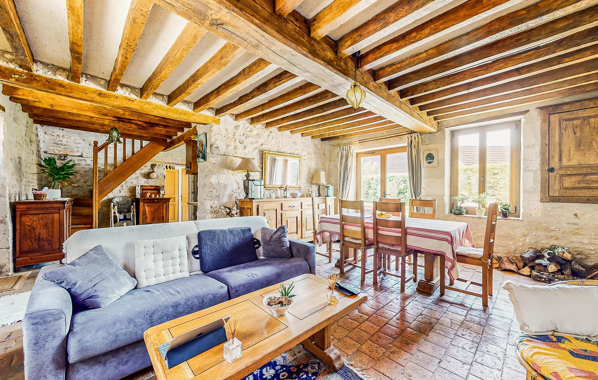 För en avkopplande vistelse i en lugn och avkopplande atmosfär på landsbygden i Puisaye-regionen är detta idylliska semesterhus väl värt en rekommendation. Vackert beläget mellan välkända städer som Orléans, Dijon och Bourges, erbjuder ditt semesterhus en idealisk blandning av avkoppling och spännande aktiviteter. Börja dagen med frukost på den soliga terrassen eller vid matbordet i den mysiga interiören i ditt semesterhus. Vardagsrummet imponerar med sin rustika charm. Koppla av i den bekväma soffan, medan träbjälkarna och stenväggarna skapar en mysig atmosfär.