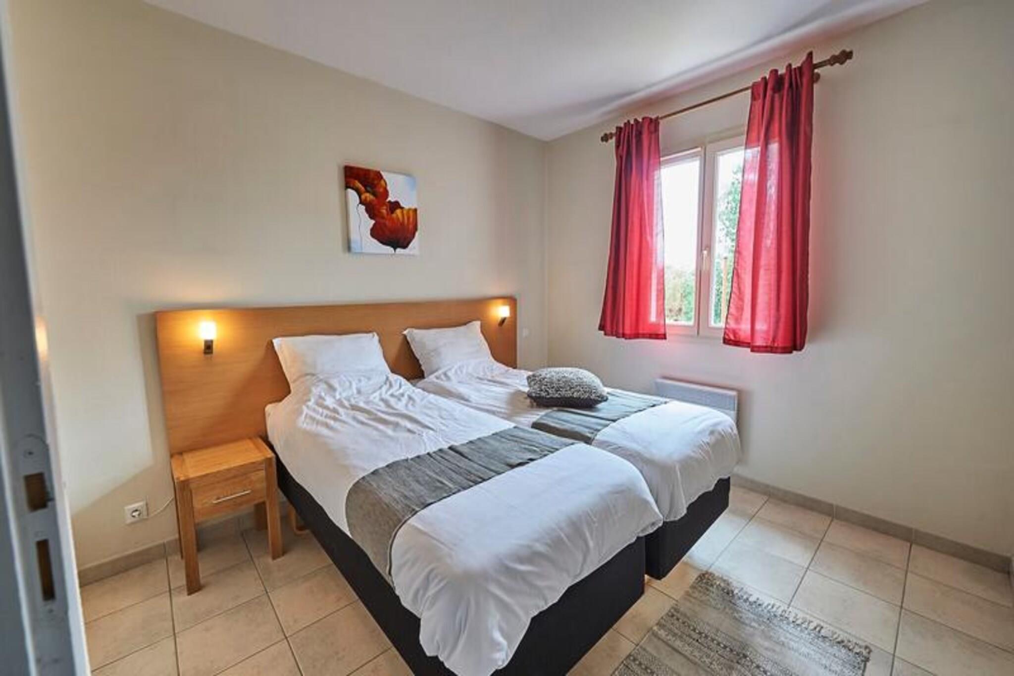 Omgiven av den franska landsbygdens fridfulla skönhet erbjuder denna rymliga villa en lugn tillflyktsort för familjer, par eller grupper av vänner som söker avkoppling och komfort. Oavsett om du njuter av de varma sommarkvällarna eller den friska vinterluften, erbjuder villans bubbelpool året runt njutning, vilket gör varje ögonblick speciellt. Den täckta terrassen är perfekt för att varva ner medan du tittar på barnen som leker eller bara njuter av den fridfulla atmosfären. Med sin närhet till lokala sevärdheter och bekvämligheter är denna villa en idealisk bas för att utforska regionens charm och kultur. \n\nStig in och upptäck ett omsorgsfullt utformat utrymme som kombinerar modern bekvämlighet med mysig elegans. Villan är 115 m² stor och rymmer bekvämt upp till sex gäster. Vardagsrummet har en mysig sittgrupp och en digital-TV för underhållning, medan det fullt utrustade köket inbjuder till kulinarisk kreativitet med integrerade apparater som en Nespresso-maskin, induktionshäll och diskmaskin. Villan har tre sovrum, alla med bekväma enkelsängar med resårmadrasser, och två badrum - ett med badkar och dusch, och ett annat med dusch och handfat. En separat toalett ökar bekvämligheten, och sängarna är bäddade vid ankomst för en problemfri start på din vistelse. \n\nUtanför villan kan gästerna njuta av närliggande pooler, tennisbanor och lekplatser, vilket garanterar nöje för alla åldrar. De lugna omgivningarna erbjuder en perfekt tillflyktsort, medan villans läge ger enkel tillgång till lokala höjdpunkter, från charmiga byar till natursköna stigar. Oavsett om du utforskar eller bara kopplar av, erbjuder denna villa det bästa av två världar. \n\nVälj denna förtjusande fastighet för din nästa semester och skapa bestående minnen i hjärtat av Frankrike. Med sin blandning av komfort, stil och tillgänglighet är det det perfekta valet för en semester som tillgodoser alla behov.