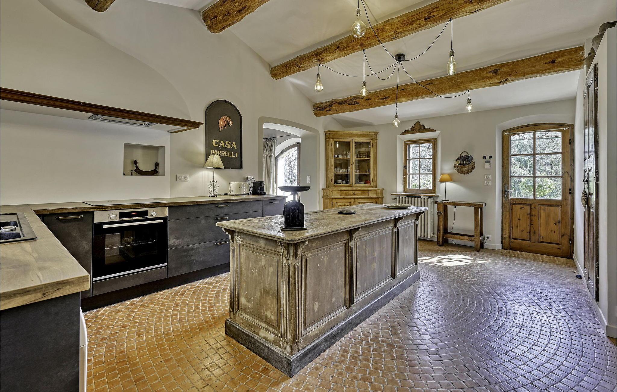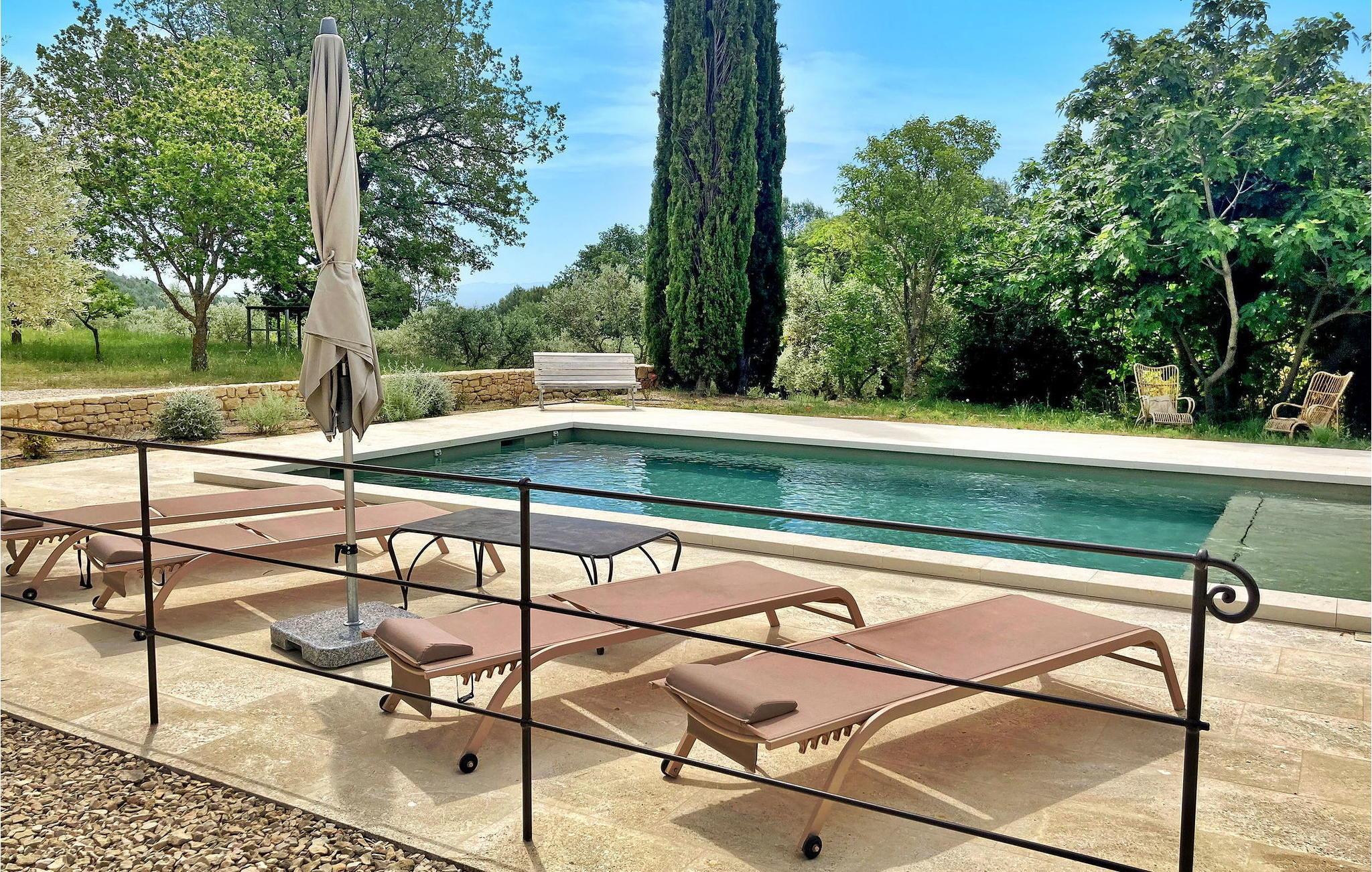 Poolen (8m x 4,5m) är säkrad med en rullgardin och har solstolar för avkoppling. Huset ligger mitt i ett skogsområde med direkt tillgång till Luberons promenad- och vandringsleder.