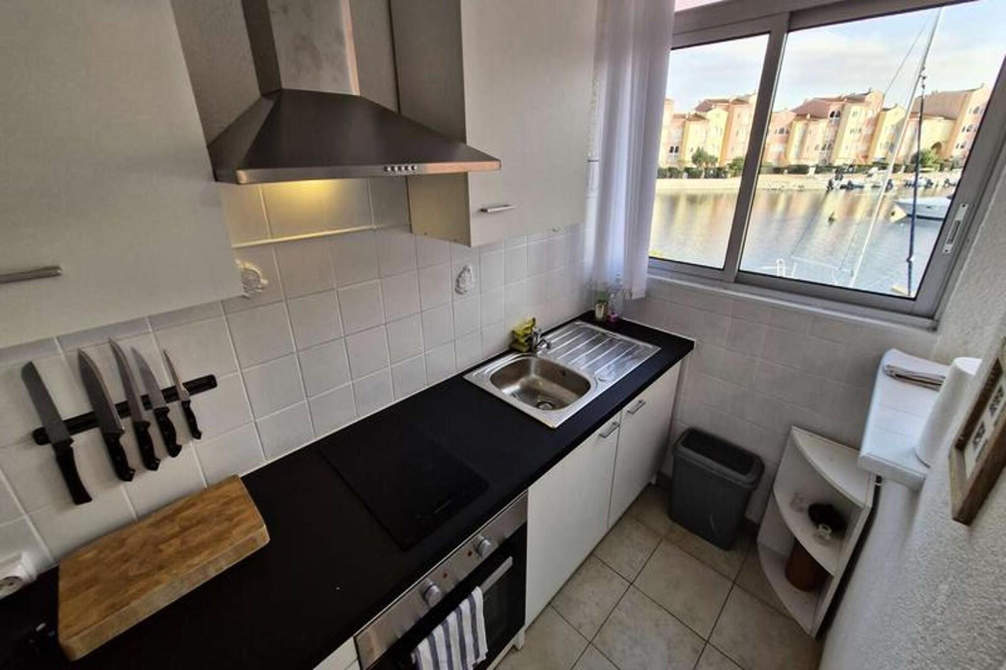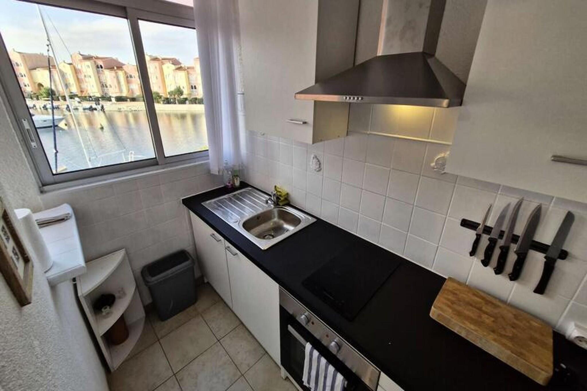 Denna studiolägenhet, designad för att rymma upp till tre personer, erbjuder en bekväm oas med en vacker utsikt över kanalen och den marina sjön. Den har ett vardagsrum med en bäddsoffa för två personer, samt en loggia med en enkelsäng exklusivt för ett barn. Lägenheten är utrustad med nödvändiga bekvämligheter inklusive luftkonditionering, keramikhäll, ugn, kyl-frys och en tvättmaskin. Det ligger på första våningen i ett boende utan hiss, vilket ger en lugn och mysig atmosfär. Beläget bara 2 km från stranden, är fastigheten bekvämt nära lokala butiker, med en marknad bara 300 meter bort. Gästerna kan enkelt utforska närliggande kaféer och restauranger, som erbjuder en rad matställen. Läget ger också tillgång till natursköna utomhusaktiviteter längs kusten, perfekt för dem som söker avkoppling eller äventyr. Lägenheten är utrustad med ett pentry för att laga mat, och loggian erbjuder extra utrymme för att njuta av omgivningen. Badrummet är utrustat med grundläggande bekvämligheter, och den kollektiva parkeringen vid bostaden garanterar bekväm åtkomst. Under de varmare månaderna kan gästerna njuta av poolerna i lägenheterna, men observera att tillgången kan vara begränsad på grund av vattenbesparingsåtgärder.