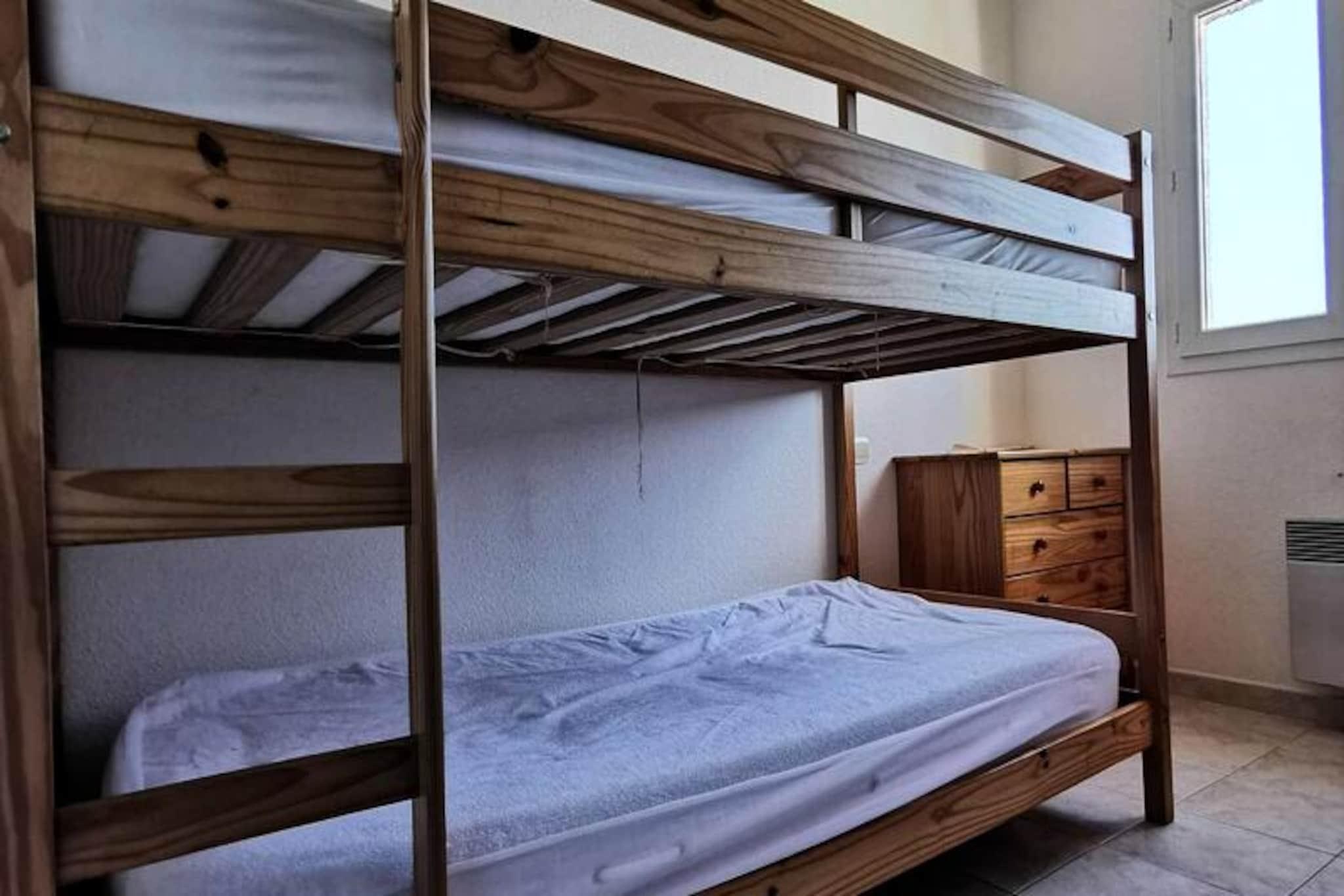 Tänk dig att vakna upp till det mjuka ljudet av vågor från den närliggande sjön, bara 30 meter från din tröskel. Denna fantastiska villa med fyra rum erbjuder en idyllisk tillflyktsort där modern komfort möter naturlig skönhet. Med västläge badar fastigheten i gyllene solnedgångar, vilket skapar den perfekta atmosfären för kvällar på den vidsträckta trädgårdsterrassen på 100 m². Oavsett om du smuttar på ett glas vin eller njuter av en familjemåltid utomhus, lovar den lugna omgivningen oförglömliga stunder. Inuti har villan en noggrant utformad planlösning. Bottenvåningen har en lyxig mastersvit med dubbelsäng och eget badrum, medan du på övervåningen hittar ett mysigt dubbelrum och ett charmigt barnrum med våningssängar. Det fullt utrustade köket har keramikhäll, kombinerad mikrovågsugn, kyl-frys, diskmaskin och tvättmaskin, vilket säkerställer alla bekvämligheter i ett hem. Den 53 m² stora boytan kompletteras av luftkonditionering, Wi-Fi och en TV, vilket gör det till en oas för avkoppling efter en dags utforskande. Denna villa ligger bara 1 km från stranden och är perfekt placerad för dem som älskar havet. Den gemensamma poolen erbjuder en uppfriskande tillflyktsort, men tillgängligheten kan variera på grund av lokala vattenrestriktioner. Privat parkering garanterar bekvämlighet, och omgivningarna är rikt på möjligheter till utomhusaktiviteter och kulturella upptäckter. Oavsett om du söker en lugn tillflyktsort eller en aktiv semester vid vattnet, erbjuder denna villa den perfekta miljön för att skapa bestående minnen. Med sin blandning av komfort, stil och närhet till naturen är det en destination du vill återvända till gång på gång.