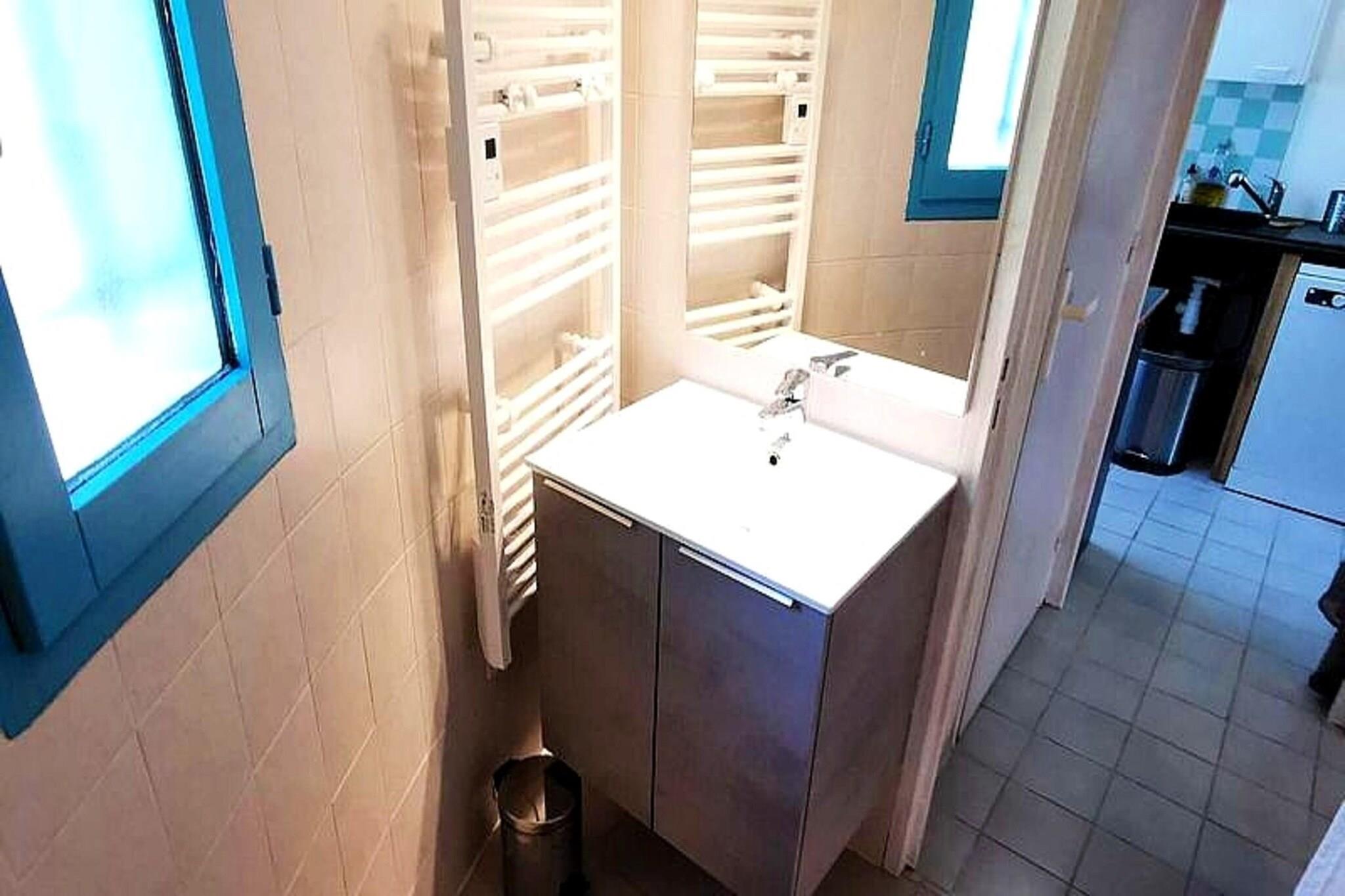 Denna charmiga trerumsvilla rymmer bekvämt upp till sex personer. Den har ett vardagsrum med en bäddsoffa för två personer, ett sovrum med en dubbelsäng och ett sovrum med två enkelsängar. Villan är utrustad med moderna bekvämligheter, inklusive en TV, elektrisk spis, ugn, diskmaskin, kyl-frys, tvättmaskin och en elektrisk grill. Fastigheten är inte husdjursvänlig, vilket säkerställer en lugn och ren miljö för alla gäster. Villan ligger på en 100 m² stor tomt, vilket ger gott om utomhusutrymme för avkoppling. Denna villa ligger bara 1 km från stranden och bara 100 m från den lugna marina sjön, och är perfekt för dig som vill utforska naturen. Ett litet snabbköp i komplexet säkerställer att du har enkel tillgång till det väsentliga, medan närliggande kaféer och butiker erbjuder gott om alternativ för att äta middag och surfa. Det omgivande området är idealiskt för sköna promenader, och gästerna kan också njuta av tillgång till bostadens viktrum och, beroende på lokala bestämmelser, poolen för bostadsrätter. Villan har ett fullt utrustat kök med allt du behöver, inklusive kyl-frys, ugn, elektrisk spis och diskmaskin. En tvättmaskin finns också tillgänglig för längre vistelser. Det rena och funktionella badrummet, tillsammans med de rymliga vardagsrums- och matplatserna, garanterar komfort under hela din vistelse. Det finns också en gemensam parkeringsplats tillgänglig för din bekvämlighet.