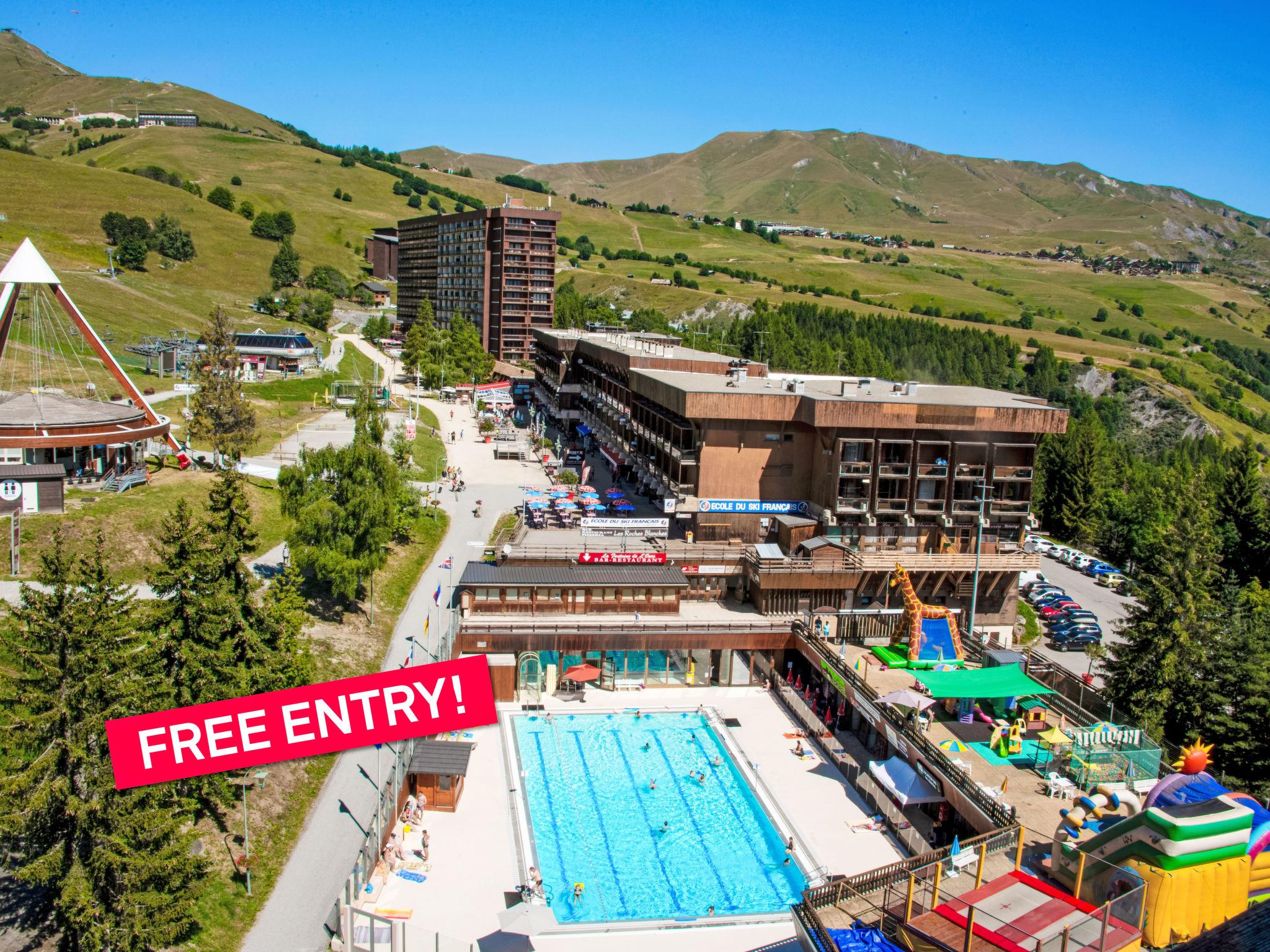 Apartment house "Cosmos", 10 storeys. Above Corbier, 50 m from the centre, in a sunny position, 50 m from the skiing area. For shared use: swimming pool heated (25 x 12 m, depth 90 - 200 cm, seasonal availability: 13.Dec. - 10.Apr. and 27.Jun. - 28.Aug. pool opening hours: 10:00-19:30). In the complex: lift, storage room for skis. Public parking 10 m. Shop, grocery, restaurant, bar 50 m, bus stop "Centre-Bagagerie" 100 m, railway station "St Jean de Maurienne" 17 km, outdoor swimming pool 200 m. Tennis, ski lift, chair lift, skisport facilities 50 m, ski school 300 m, ski-kindergarten 500 m, sled run 300 m, children's playground 350 m. Please note: ski bus (free of charge). The swimming pool facilities are 200 m from the residence at the municipal pool. Entrance for under 3’s is not allowed. Children between 3 and 5 years old are allowed subject to weather conditions (in winter). Entrance tickets to the swimming pool are included in your rental price and will be given to you when you check in.