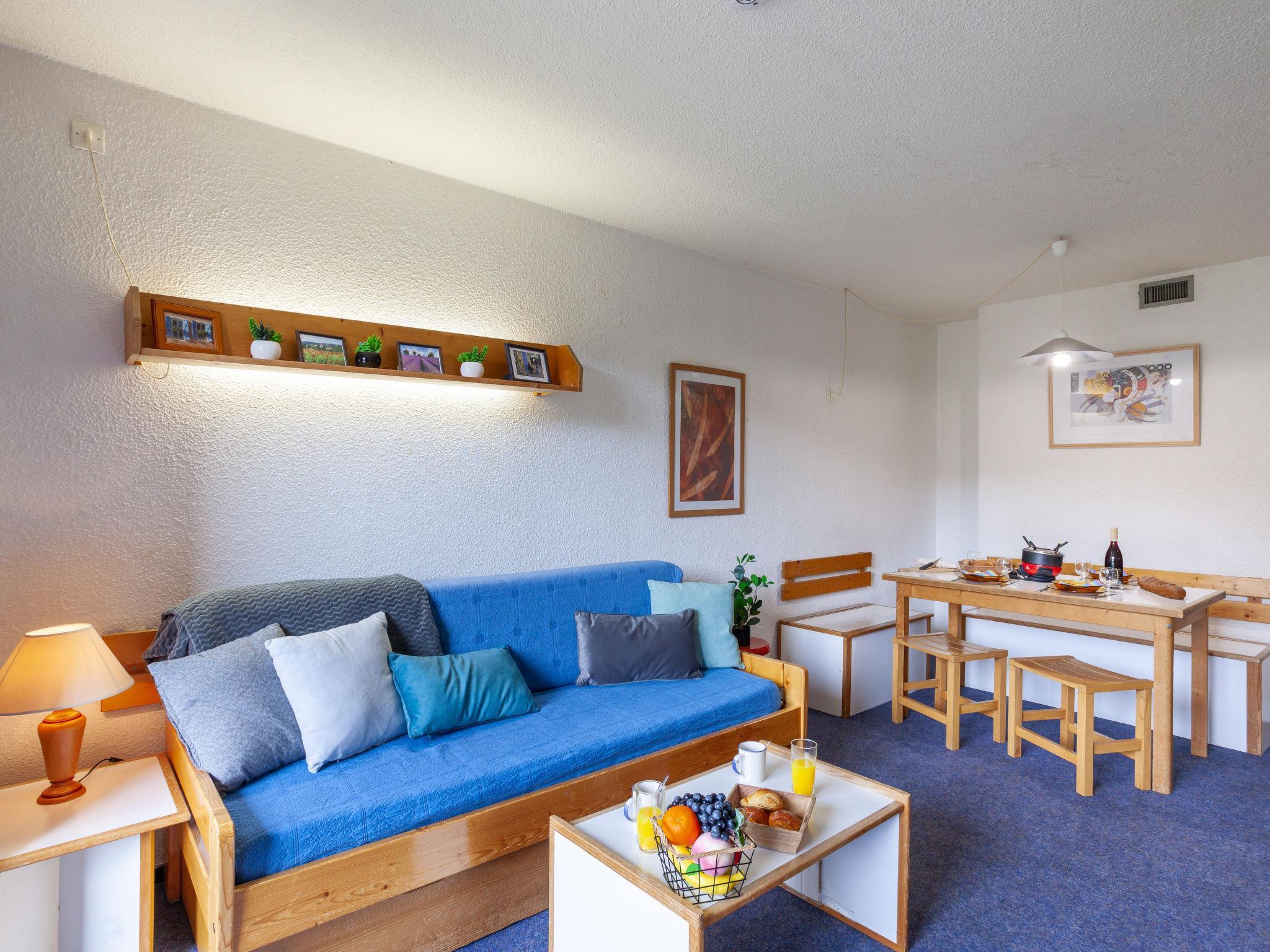 1-room studio 28 m2 on 12nd floor, south facing position. Simple furnishings: living/dining room with 1 bed (80 cm, length 190 cm), 1 sleeping facility (80 cm, length 190 cm), TV (flat screen). Exit to the balcony, south facing position. Alcove with 1 x 2 bunk beds (80 cm, length 190 cm). Kitchenette (2 hot plates, oven, toaster, kettle, microwave, electric coffee machine). Bathroom, sep. WC. Electric heating. Carpet. Balcony 4 m2, south facing position. View of the ski run. Facilities: Internet (WiFi, extra). Please note: maximum 1 pet/ dog allowed. Smoke alarm. Instead of an enclosed bedroom, some sleeping areas are located in an open-plan area (gallery, alcove, etc.). Offer by a private individual according to Art. 155, IV of CGI.