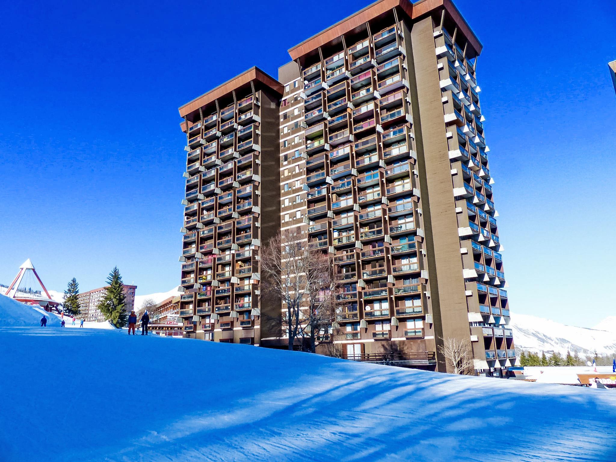 1-room studio 24 m2 on 14th floor, north-east facing position. Comfortable and beautiful furnishings: living/dining room with 1 double sofabed (140 cm, length 190 cm), TV (flat screen). Exit to the balcony. Alcove with curtain with 1 x 2 bunk beds (120 cm, length 190 cm). Small kitchenette (mini-oven, dishwasher, 2 ceramic glass hob hotplates, toaster, kettle, microwave, electric coffee machine, Capsules for coffee machine (TASSIMO), raclette grill, fondue Set (cheese)). Bath/WC. Electric heating. Balcony 5 m2, east facing position. Balcony furniture, deck chairs (2). Very beautiful view of the mountains and the ski run. Facilities: iron, hair dryer. Internet (WiFi, extra). Please note: non-smokers only. Smoke alarm. Instead of an enclosed bedroom, some sleeping areas are located in an open-plan area (gallery, alcove, etc.). Offer by a private individual according to Art. 155, IV of CGI.